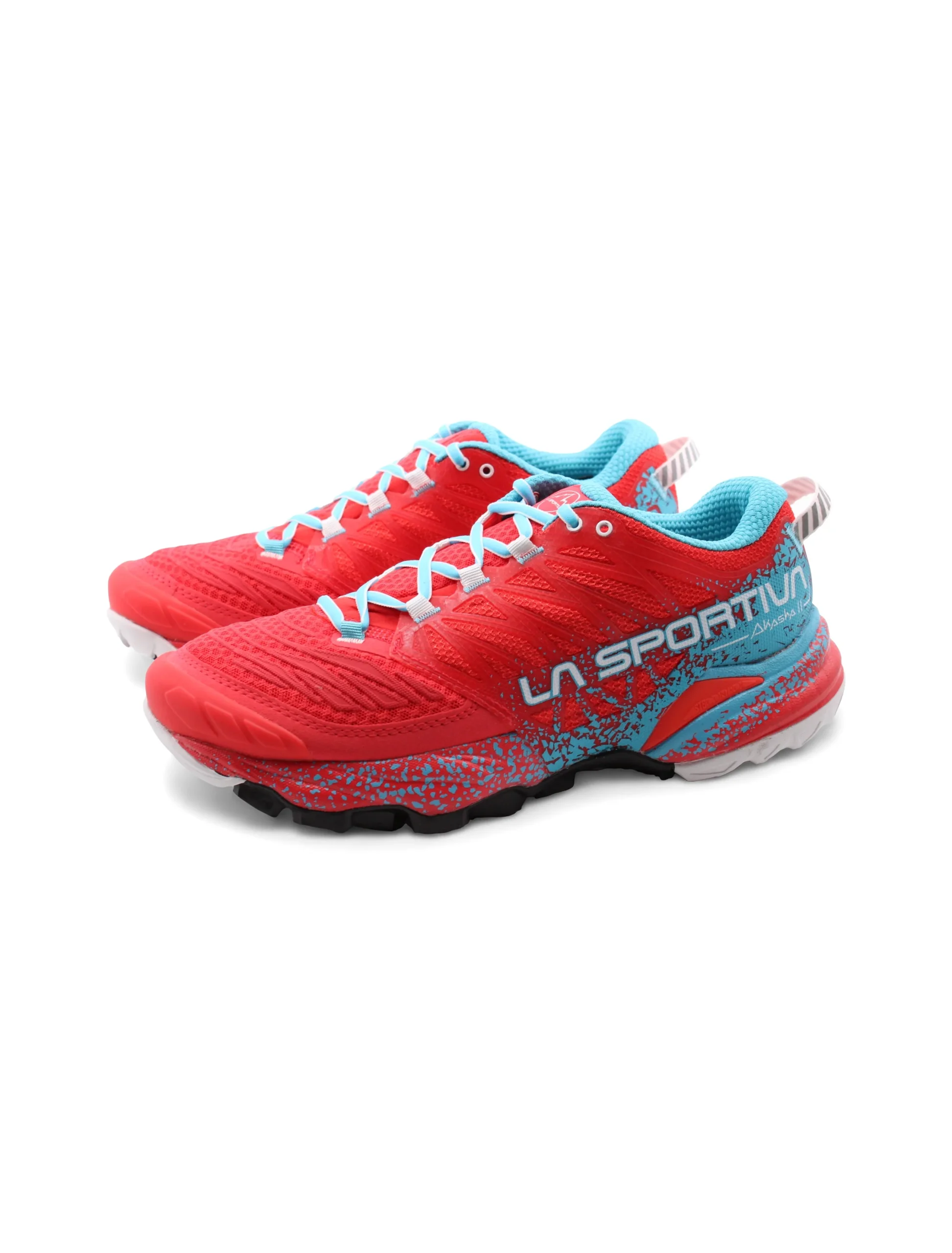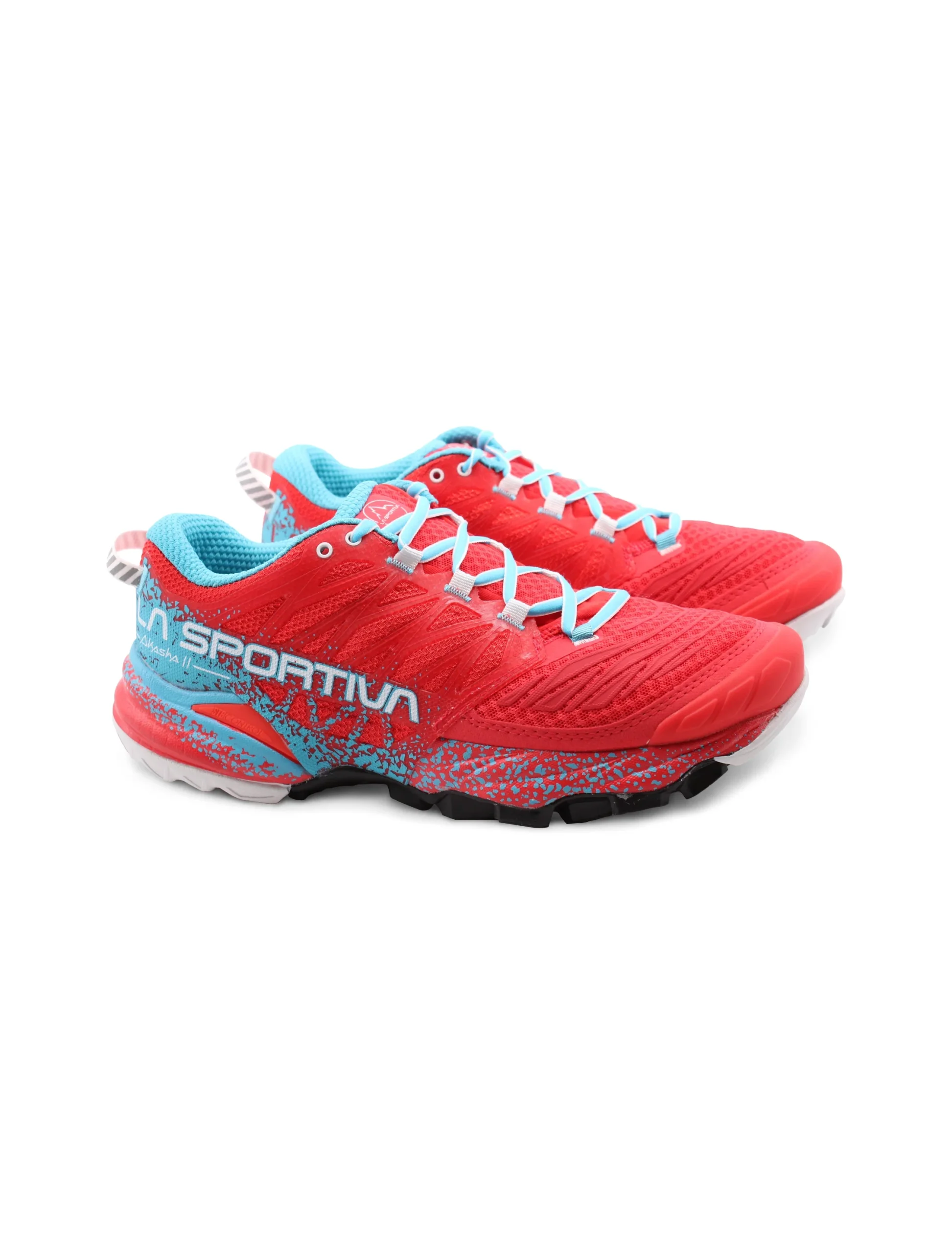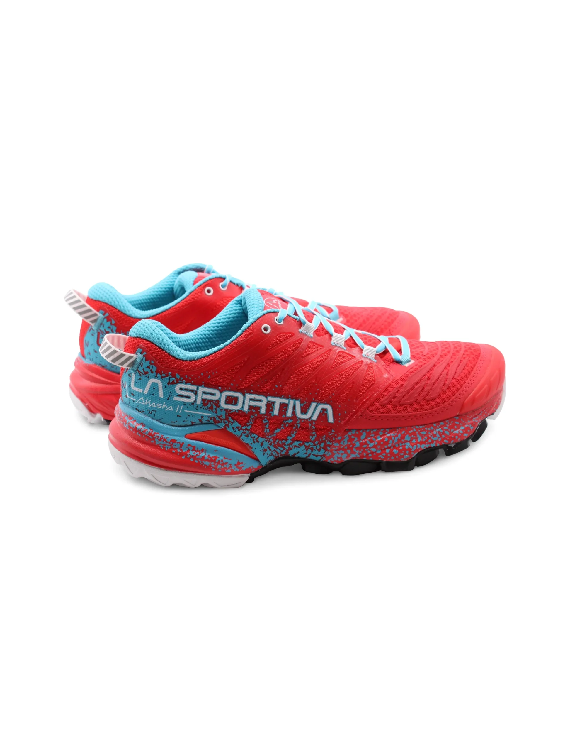 Scarpa da mountain running donna La Sportiva Akasha II in tessuto Air Mesh forato e PU con morbido sottopiede Ortholite, intersuola in EVA e suola FriXionยฎ Red, dotata dellโesclusiva soluzione Trail Rocker in grado di favorire il movimento naturale del piede durante la corsa. Comoda, leggera e traspirante: รจ perfetta per percorsi di lunga distanza e per utilizzi prolungati in allenamento.