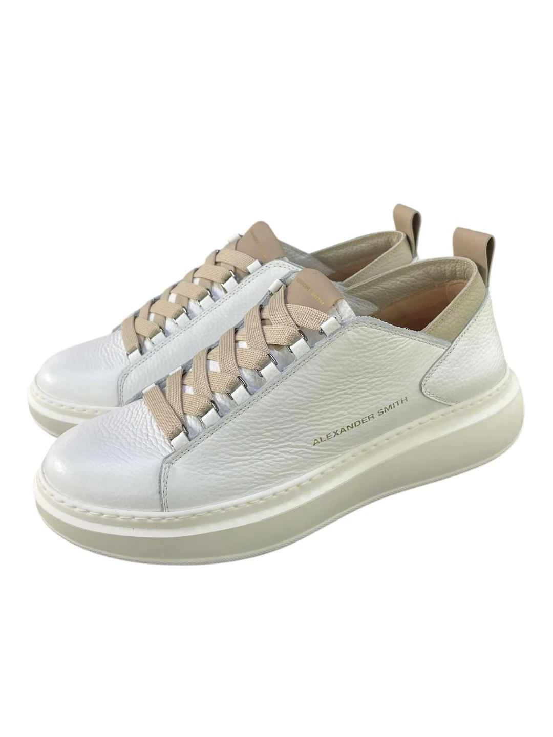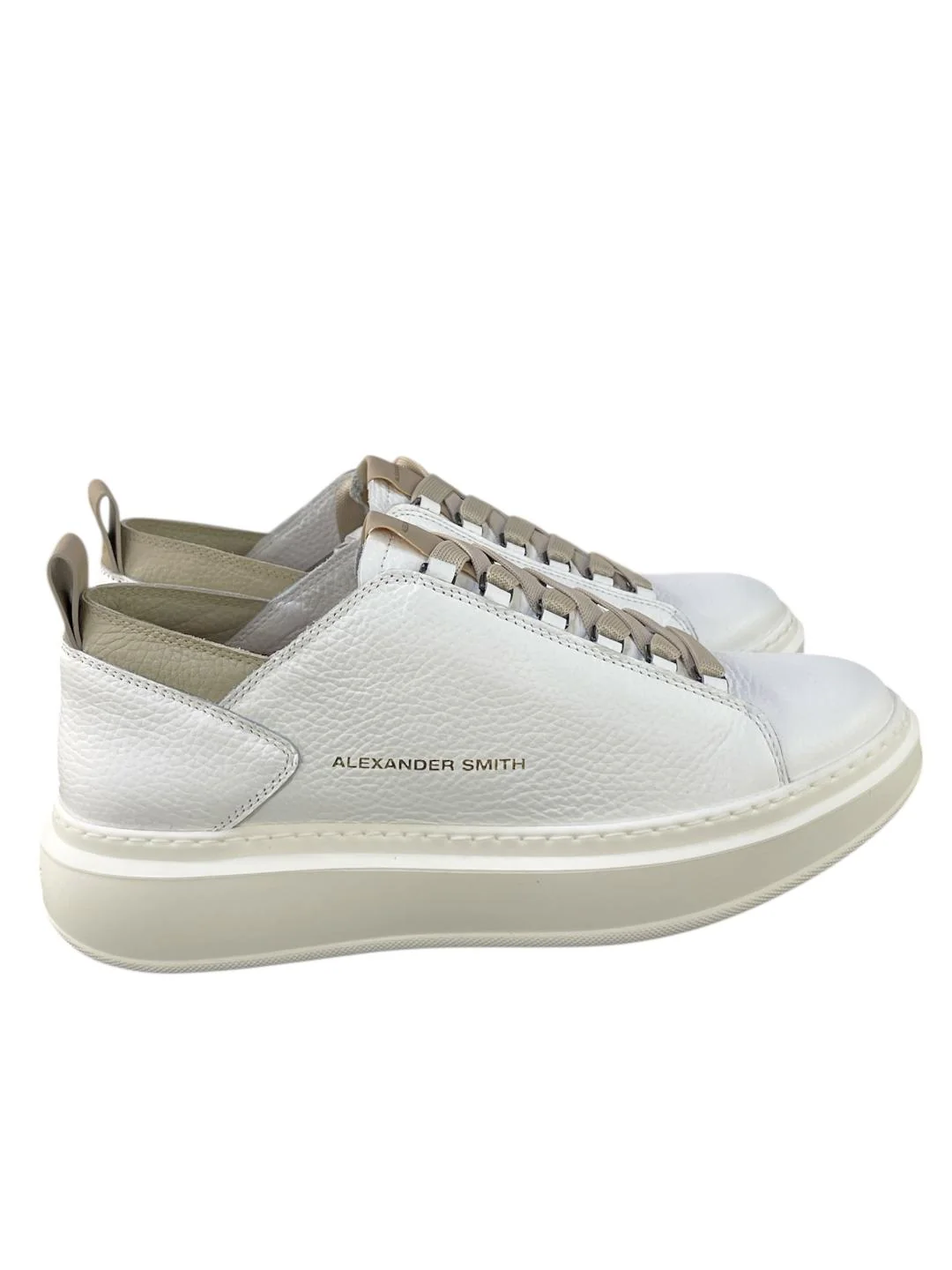Alexander Smith sneakers uomo Wembley deconstructed in pelle bianca martellata inserti beige