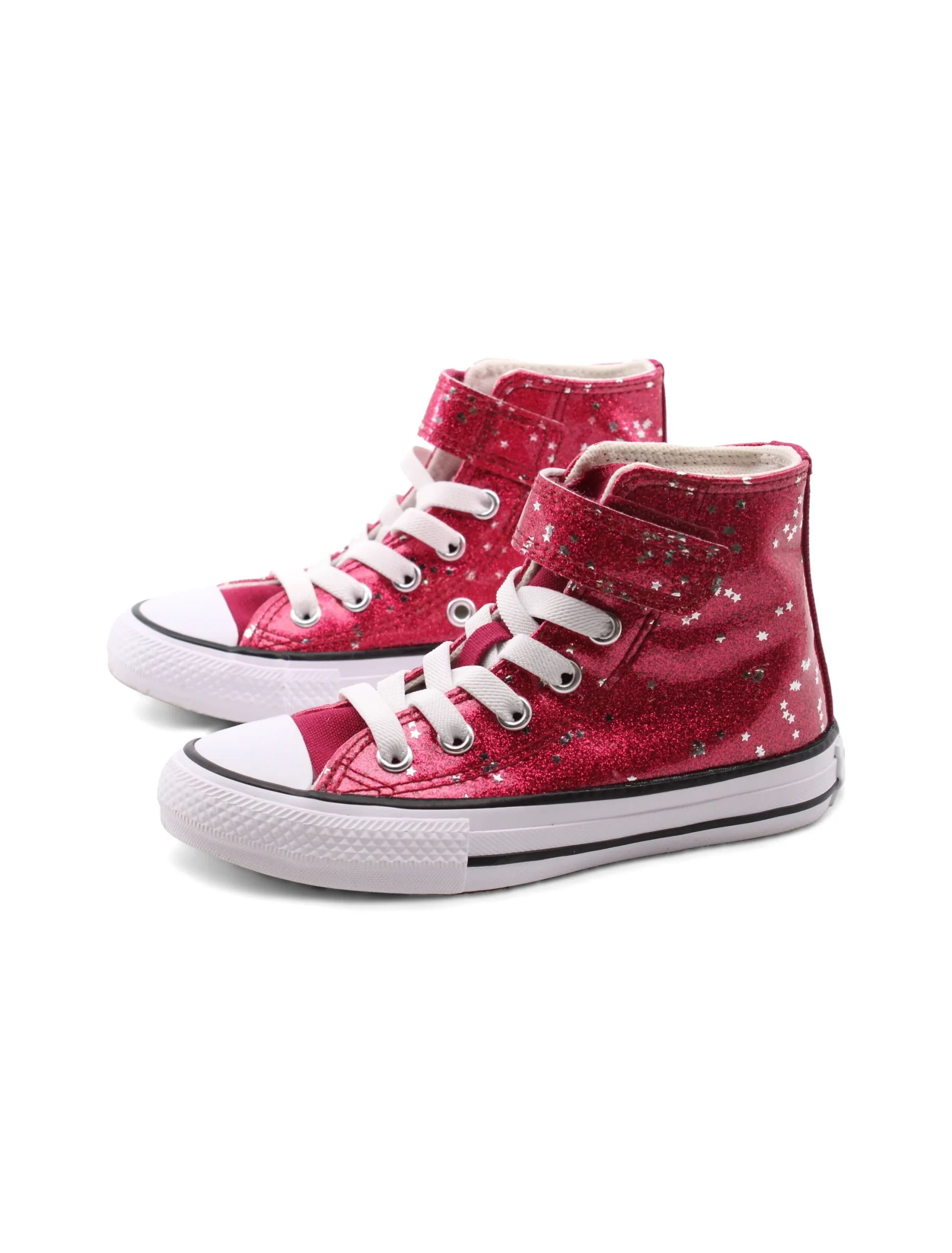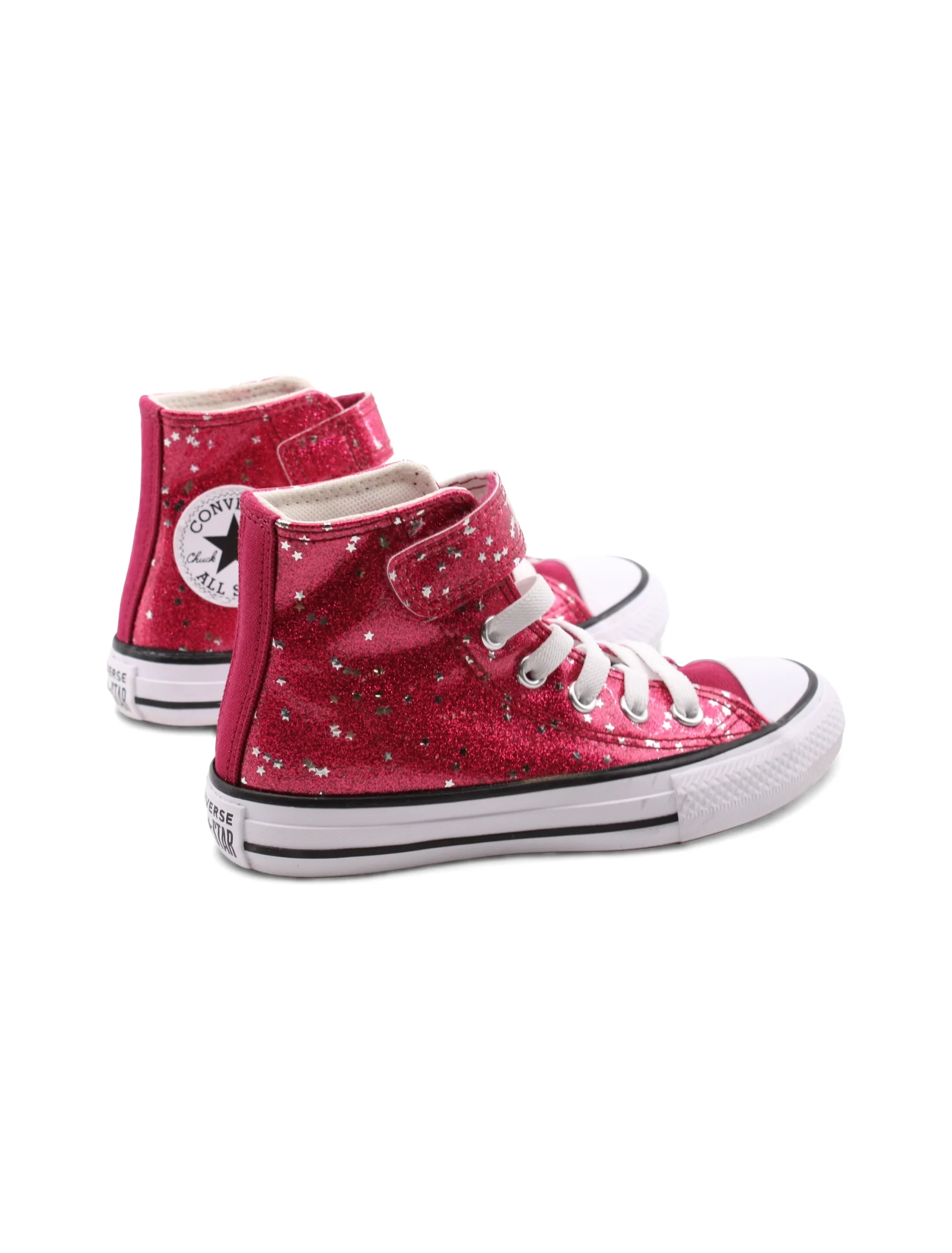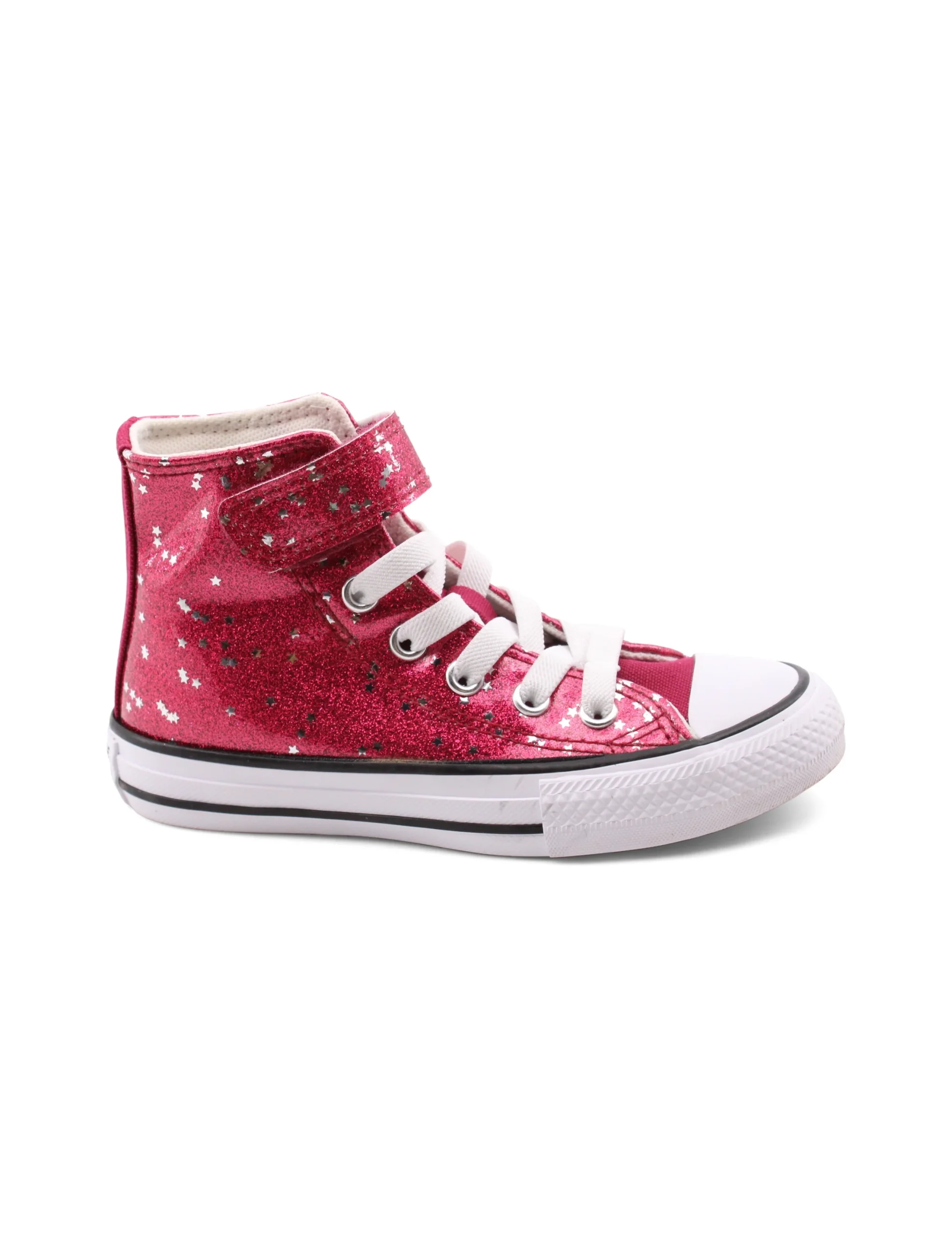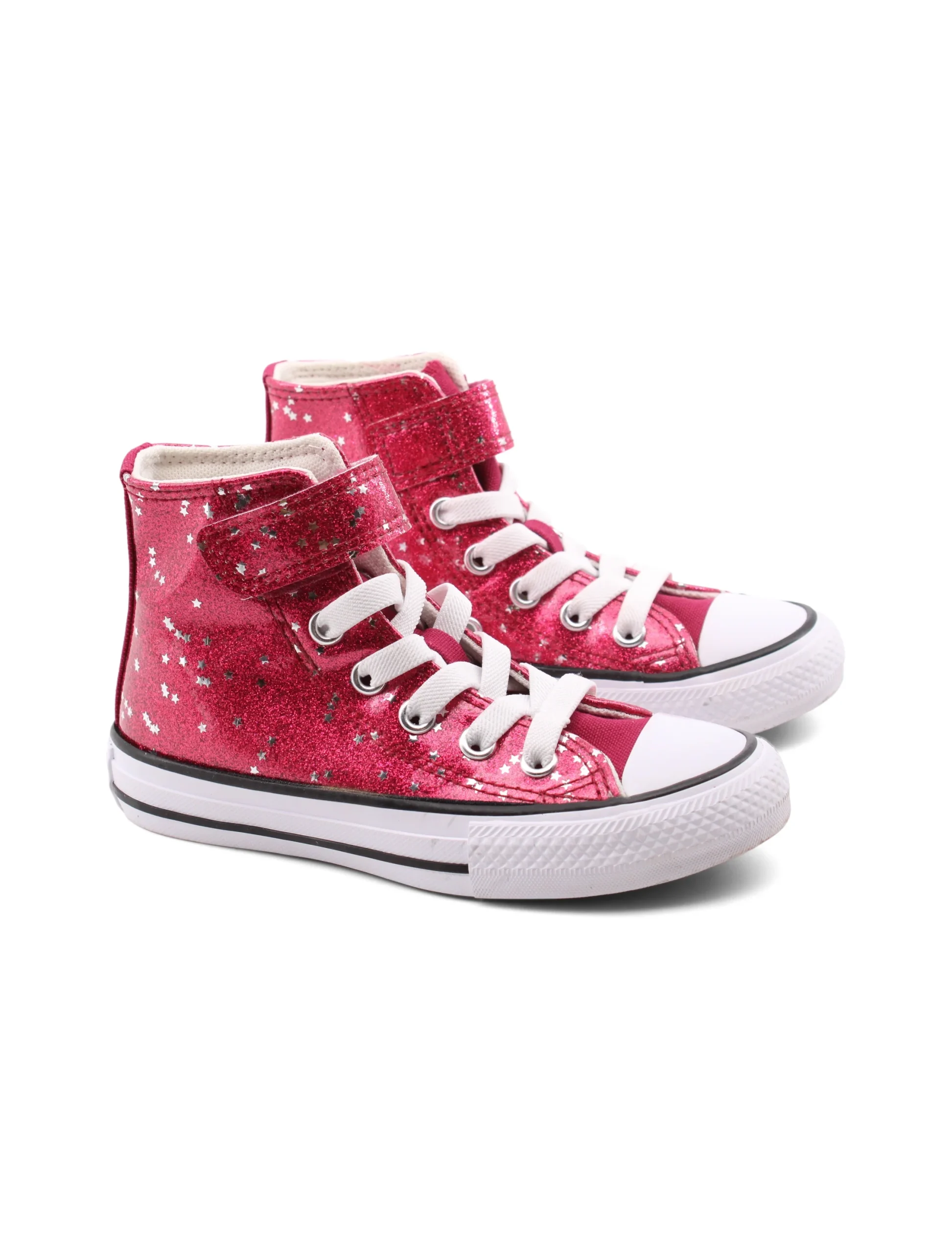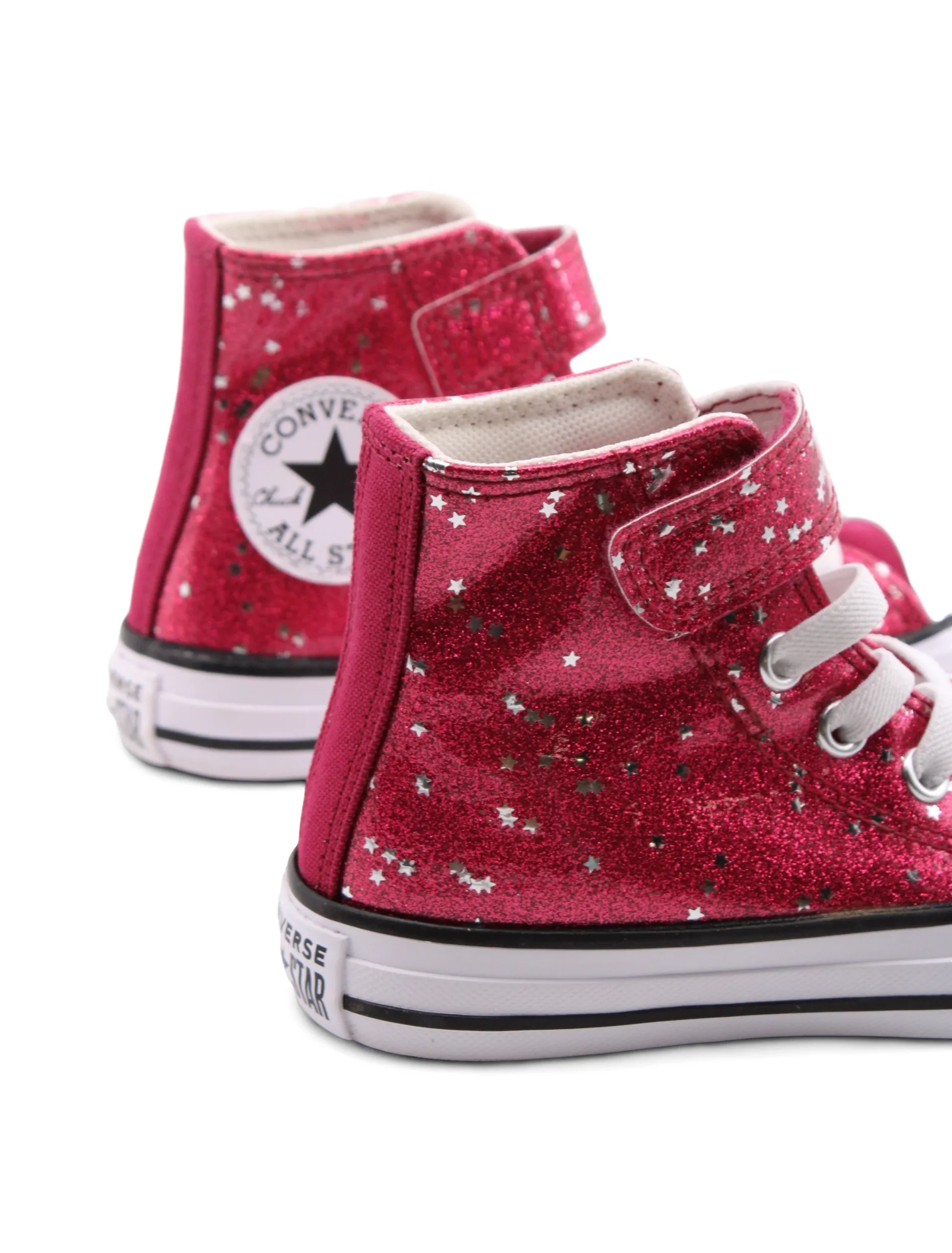 Scopri l’eleganza e la praticitร delle All Star glitter sneaker alte da bimba di Converse. Con una chiusura che combina il velcro e i lacci elastici, queste scarpe non solo si indossano in un attimo, ma offrono anche una tenuta sicura per le avventure quotidiane.