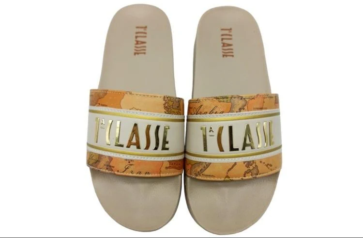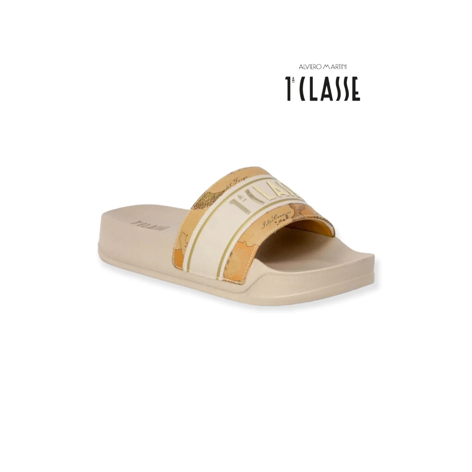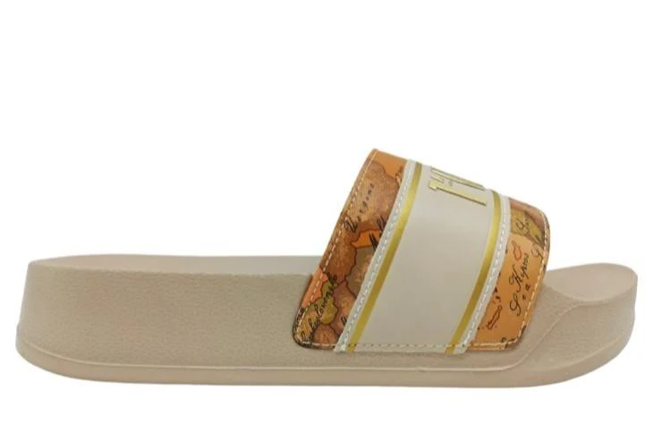 ALVIERO MARTINI CIABATTA MARE 1889 BEIGE Ciabatta con fascia imbottita con stampa e maxi logo a contrasto, suola in gomma alta 4 cm