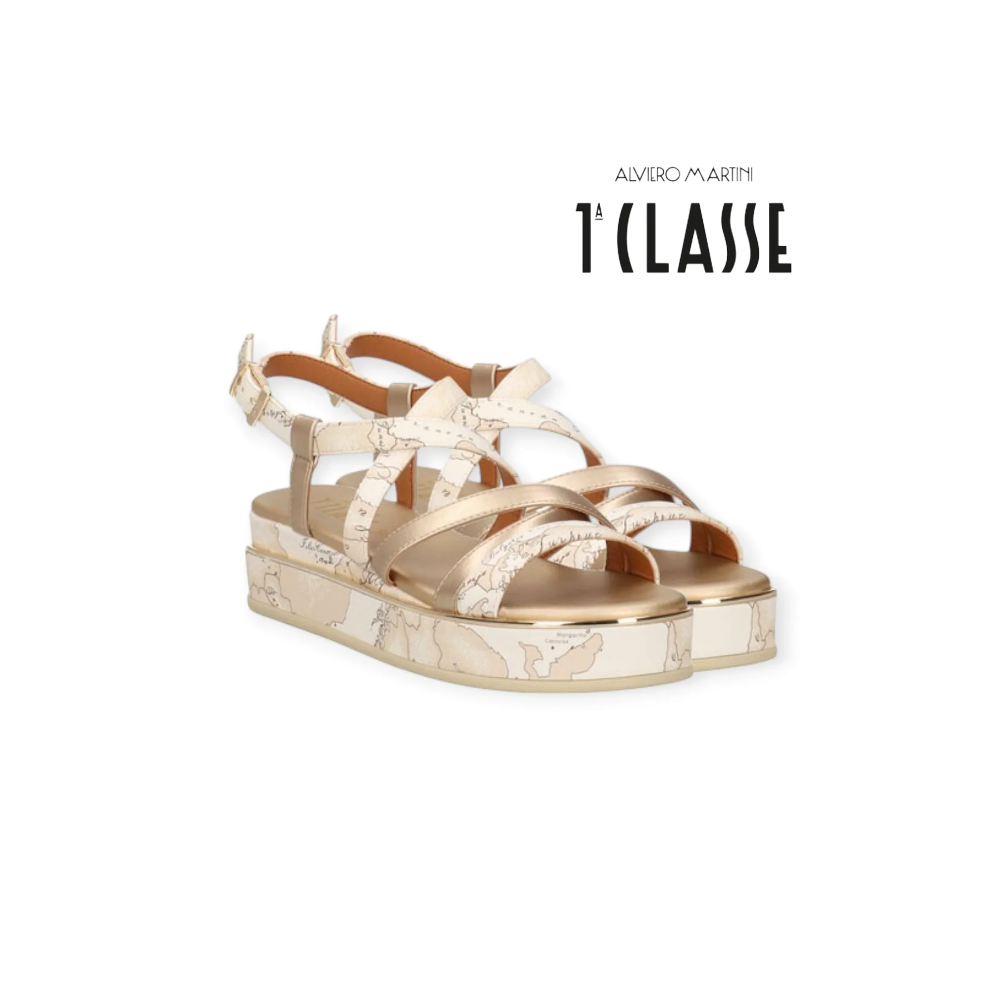 ALVIERO MARTINI SANDALO ZEPPA DONNA 2181 LATTE Sandalo logato con zeppa alta 5 cm, cinturino regolabile