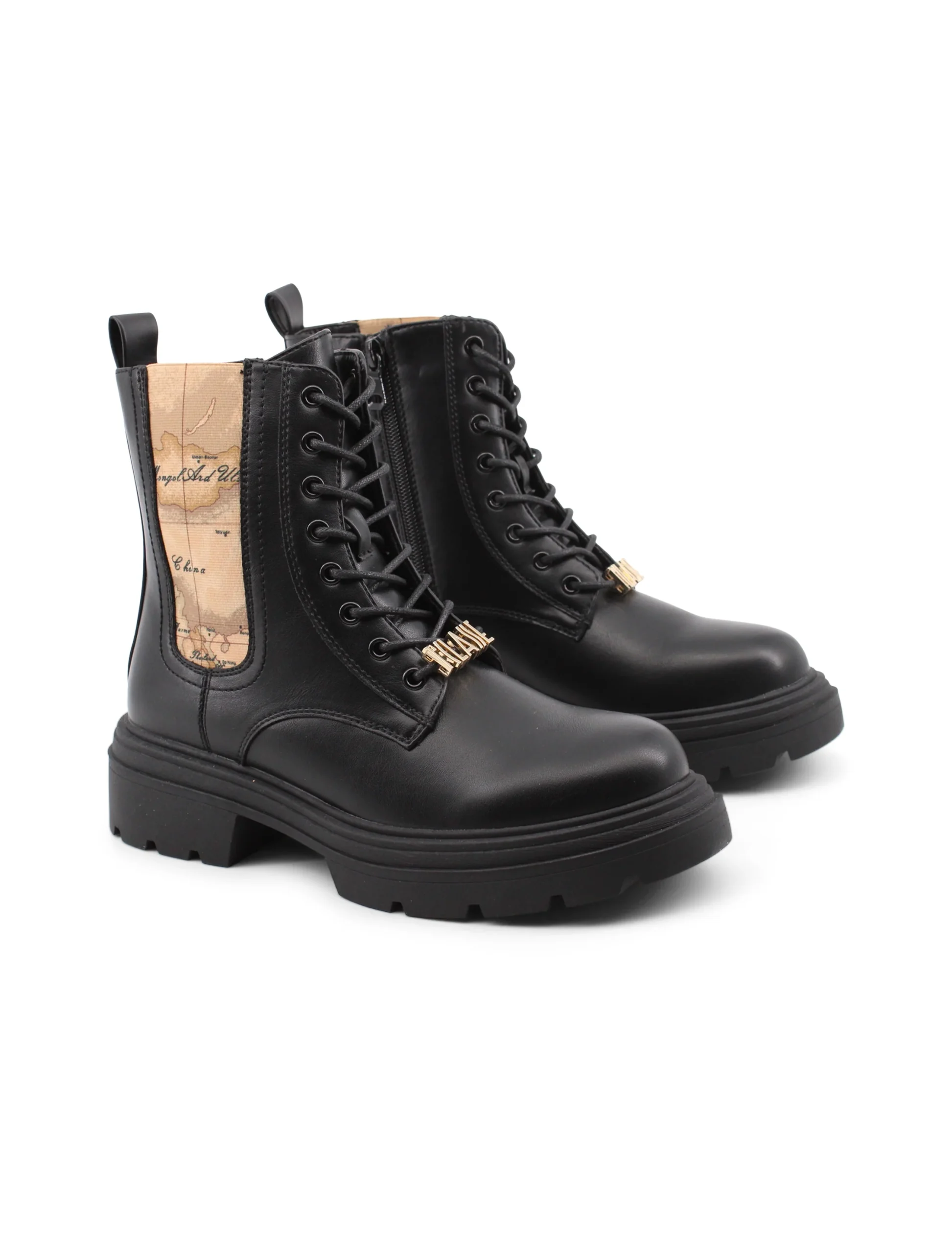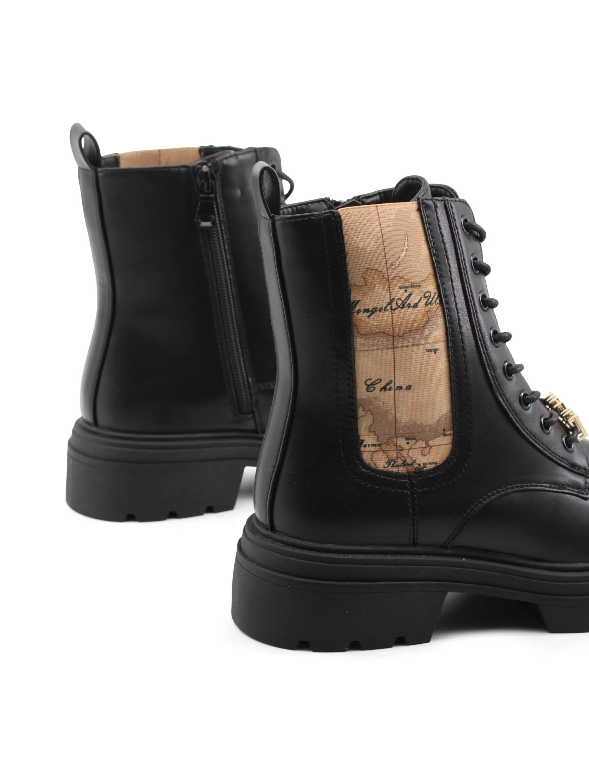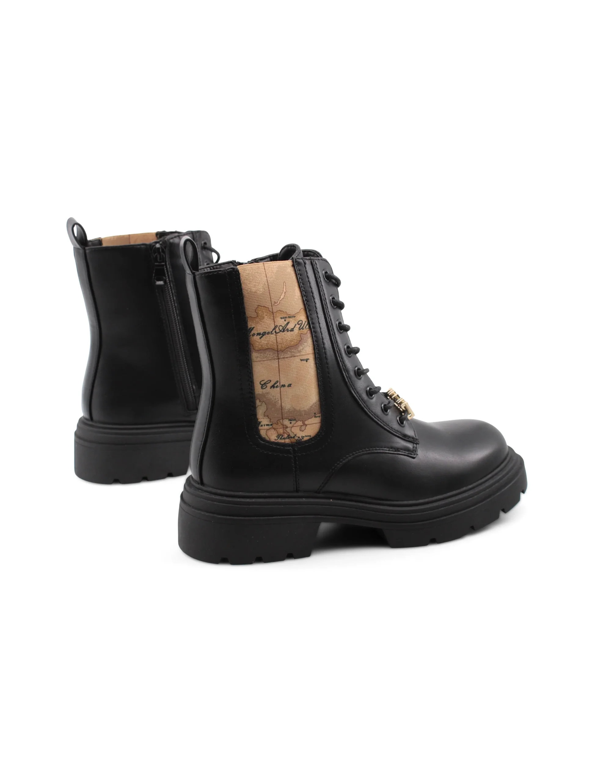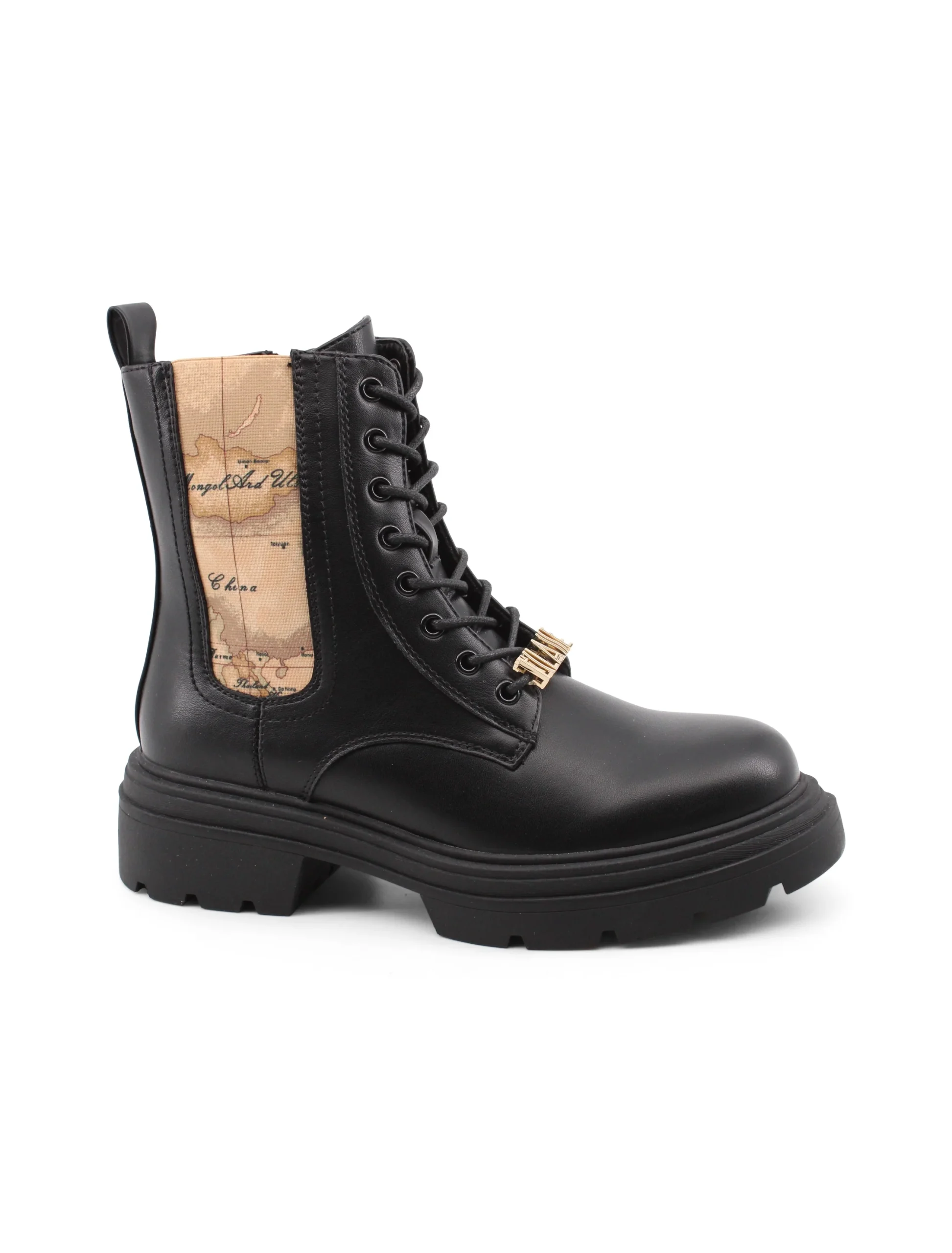 L’anfibio con stampa Geo Classic di Alviero Martini 1a Classe รจ il compagno ideale per chi desidera unire stile e praticitร . La chiusura ibrida con lacci e zip non solo garantisce una calzata sicura e confortevole, ma aggiunge anche un tocco distintivo, caratterizzando ogni passo con eleganza.