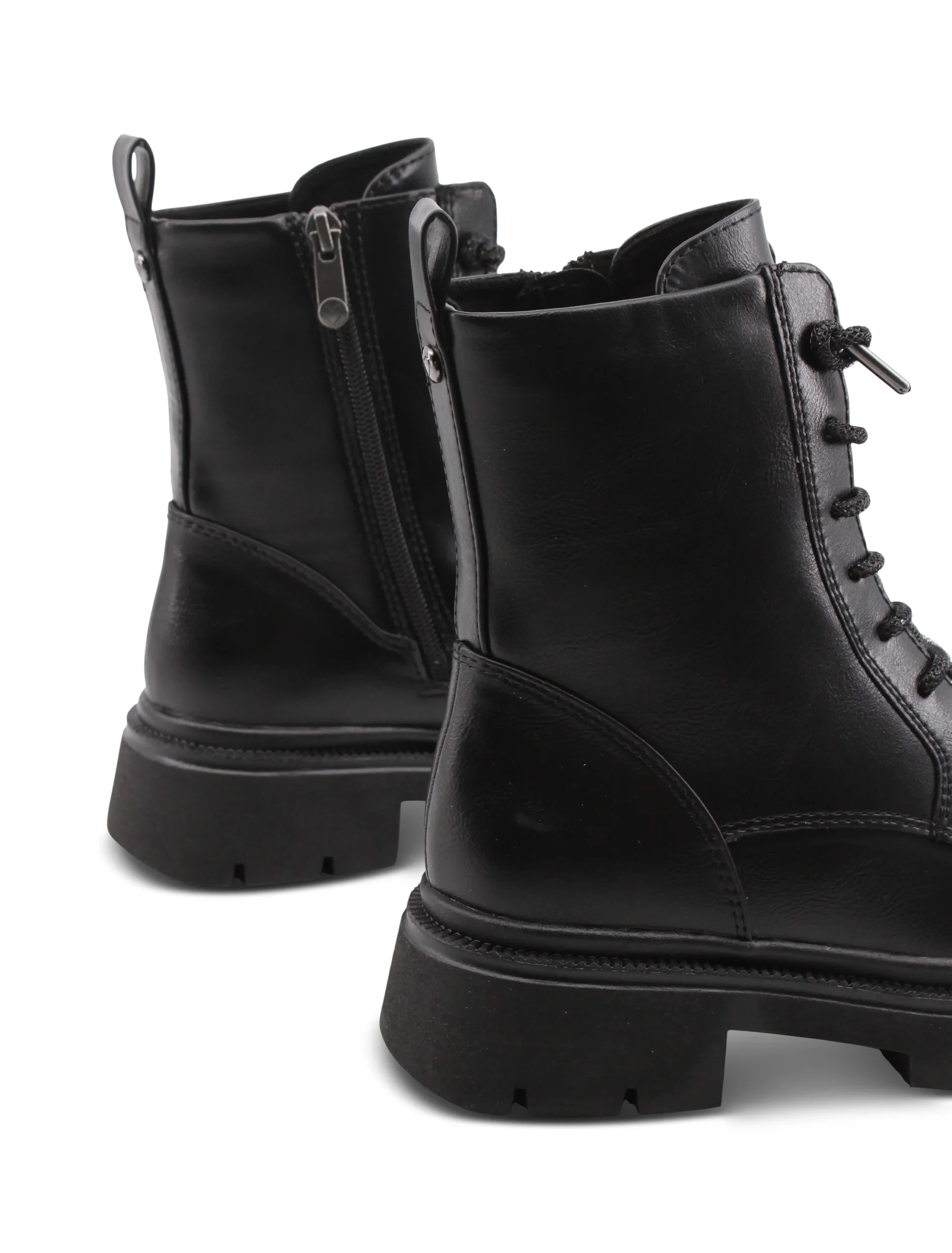La chiusura con lacci e zip rende facile indossarli, mentre la fodera in tessuto assicura una piacevole sensazione al tatto, perfetta anche per le giornate piรน lunghe. Il plantare fisso offre un supporto solido, cosรฌ puoi camminare con sicurezza e stile.