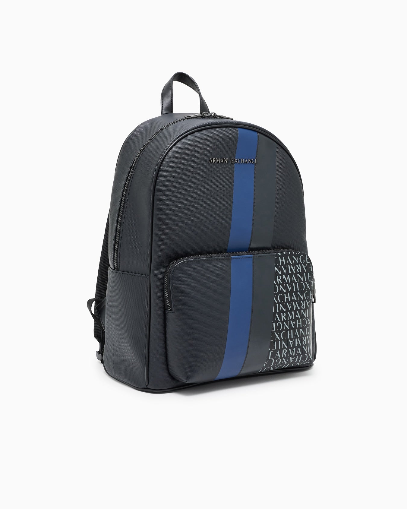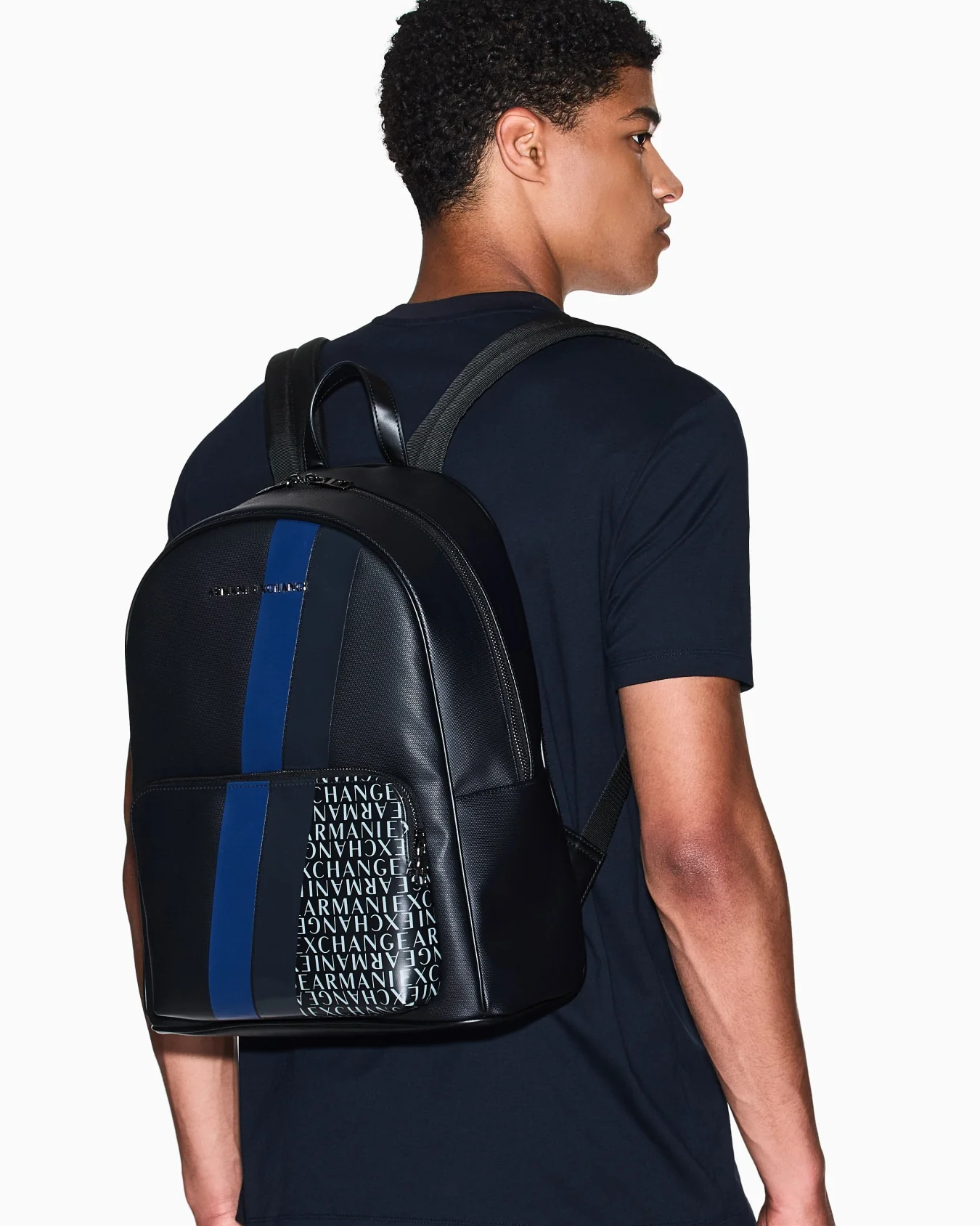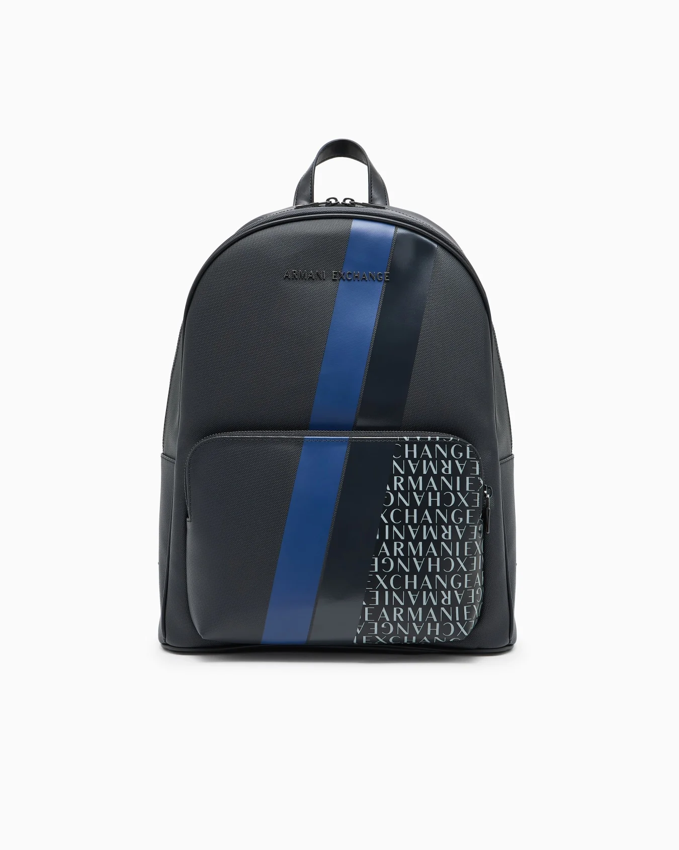 Armani Exchange zaino uomo nero e blu con monogramma e strisce
