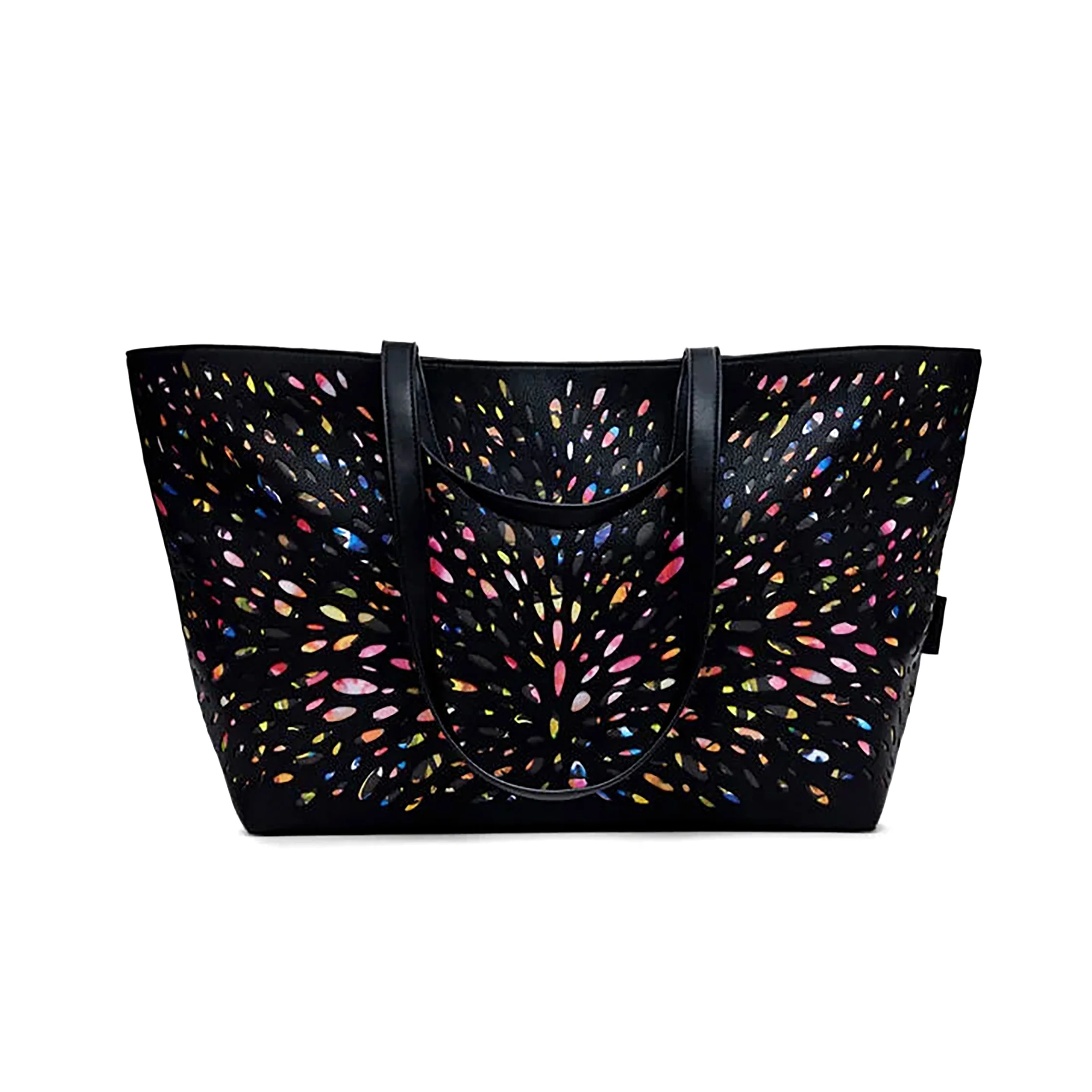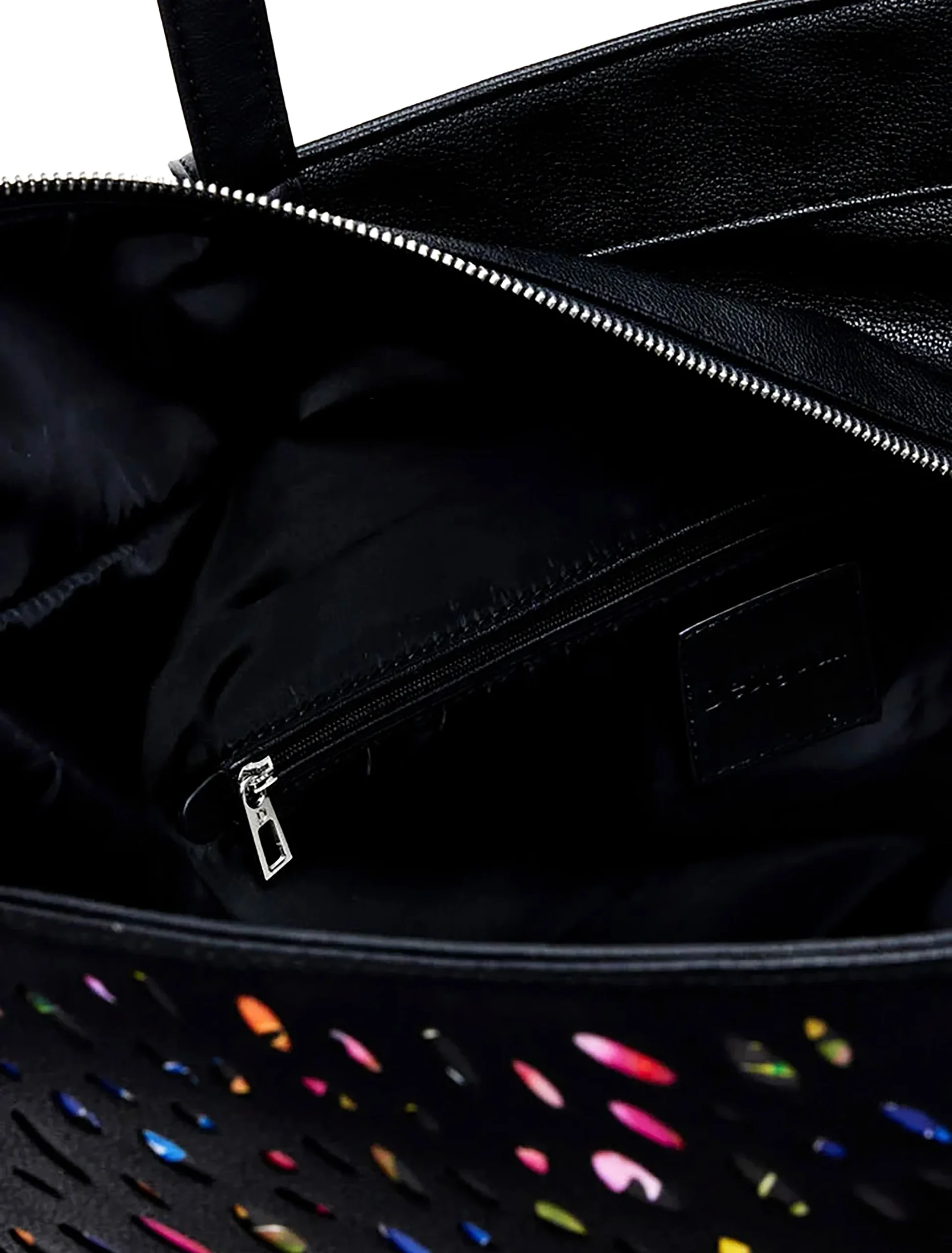L’interno spazioso offre tutto lo spazio necessario per tenere in ordine i tuoi oggetti essenziali, dal portafoglio agli accessori. Le tasche interne ben organizzate ti permettono di trovare rapidamente ciรฒ che ti serve, mentre il manico robusto garantisce una presa sicura. Non da meno, il suo nero classico si abbina con tutto, rendendola un must-have del tuo guardaroba.