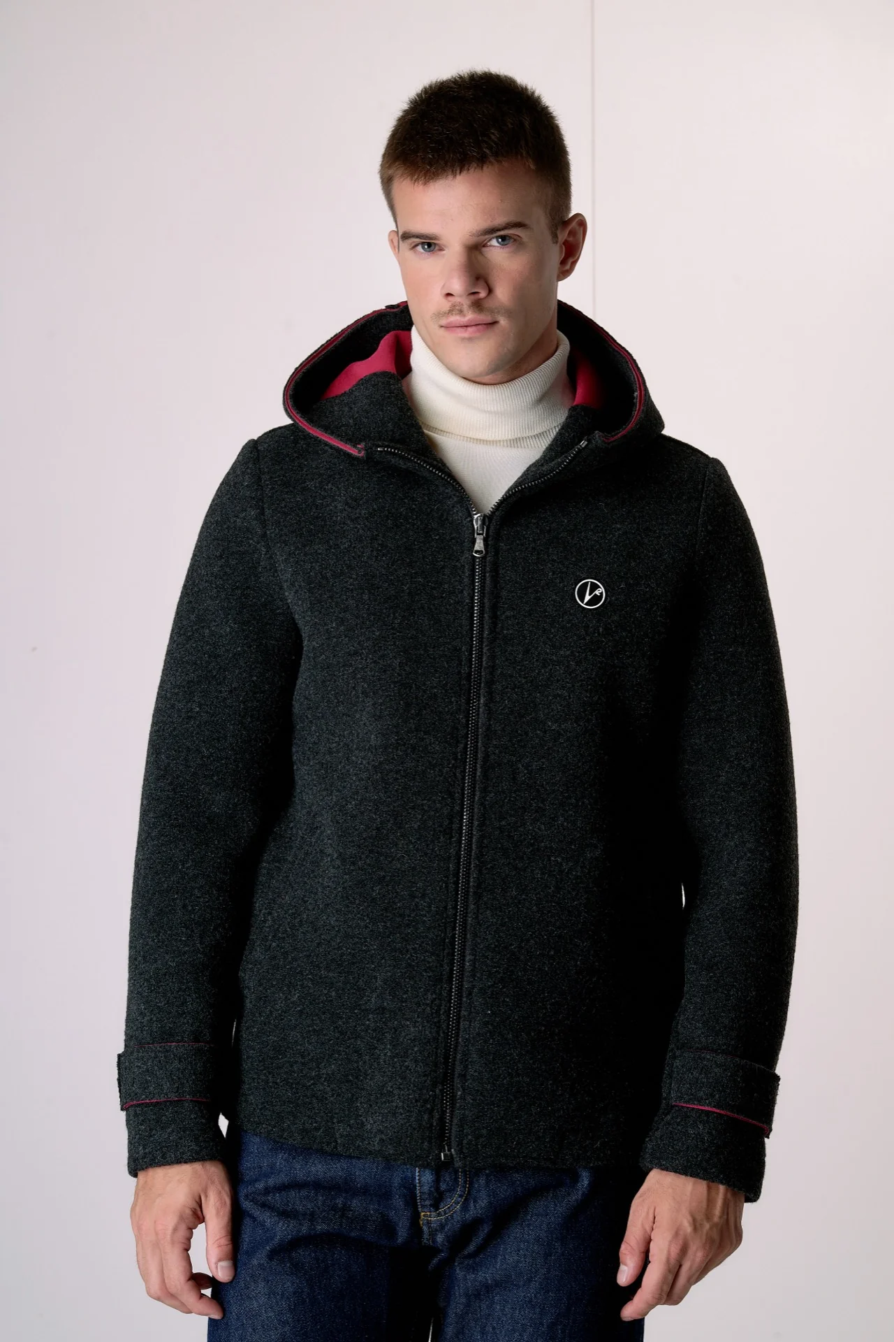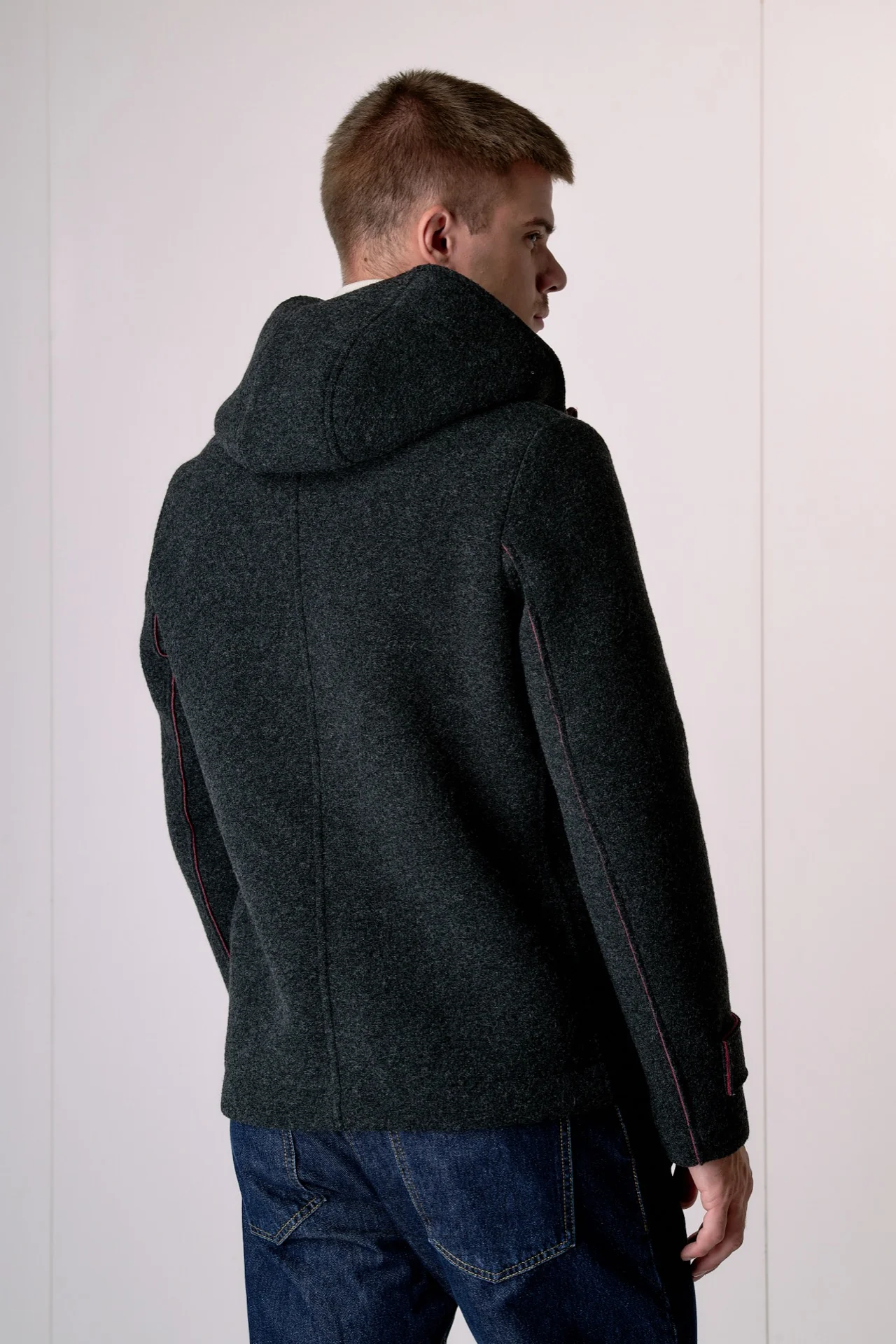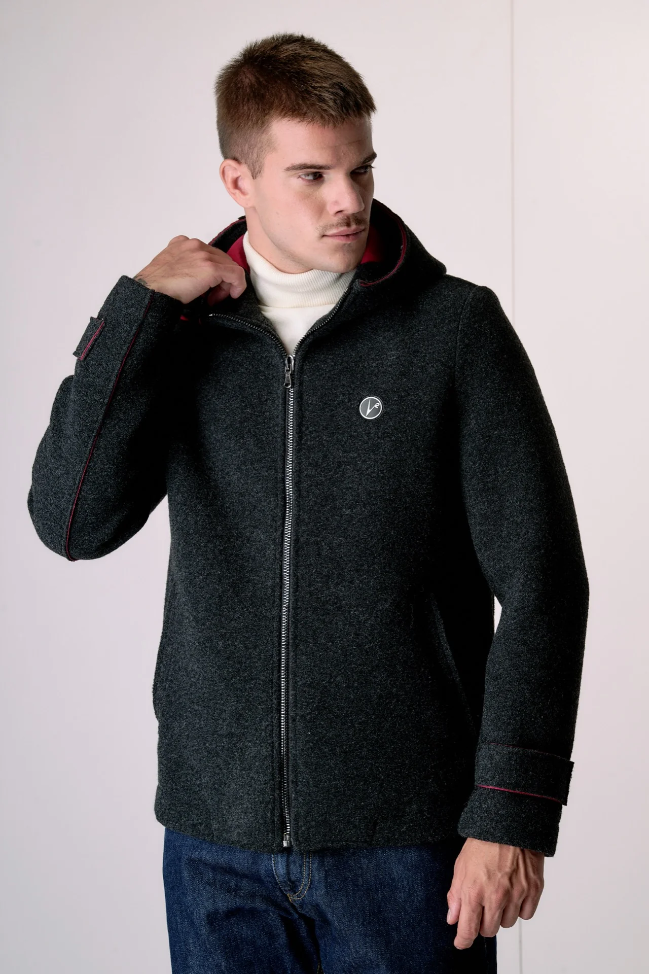 Bomber in lana cotta accoppiata Antracite con cappuccio