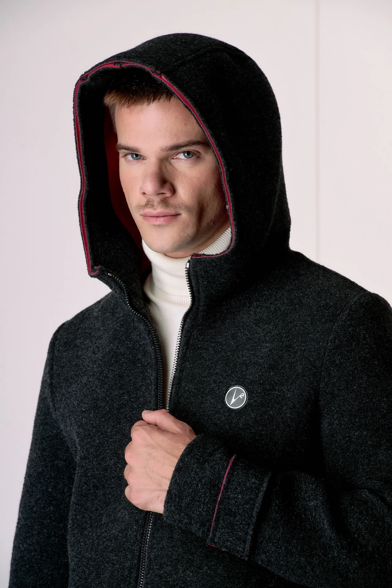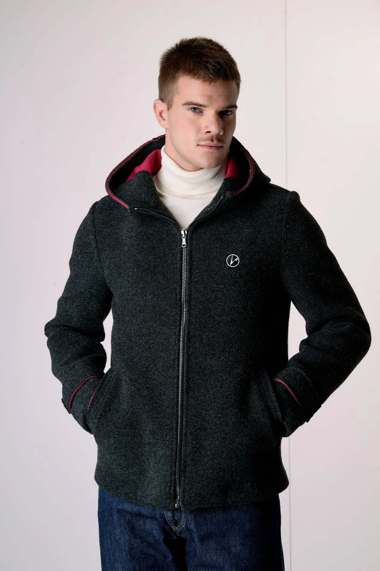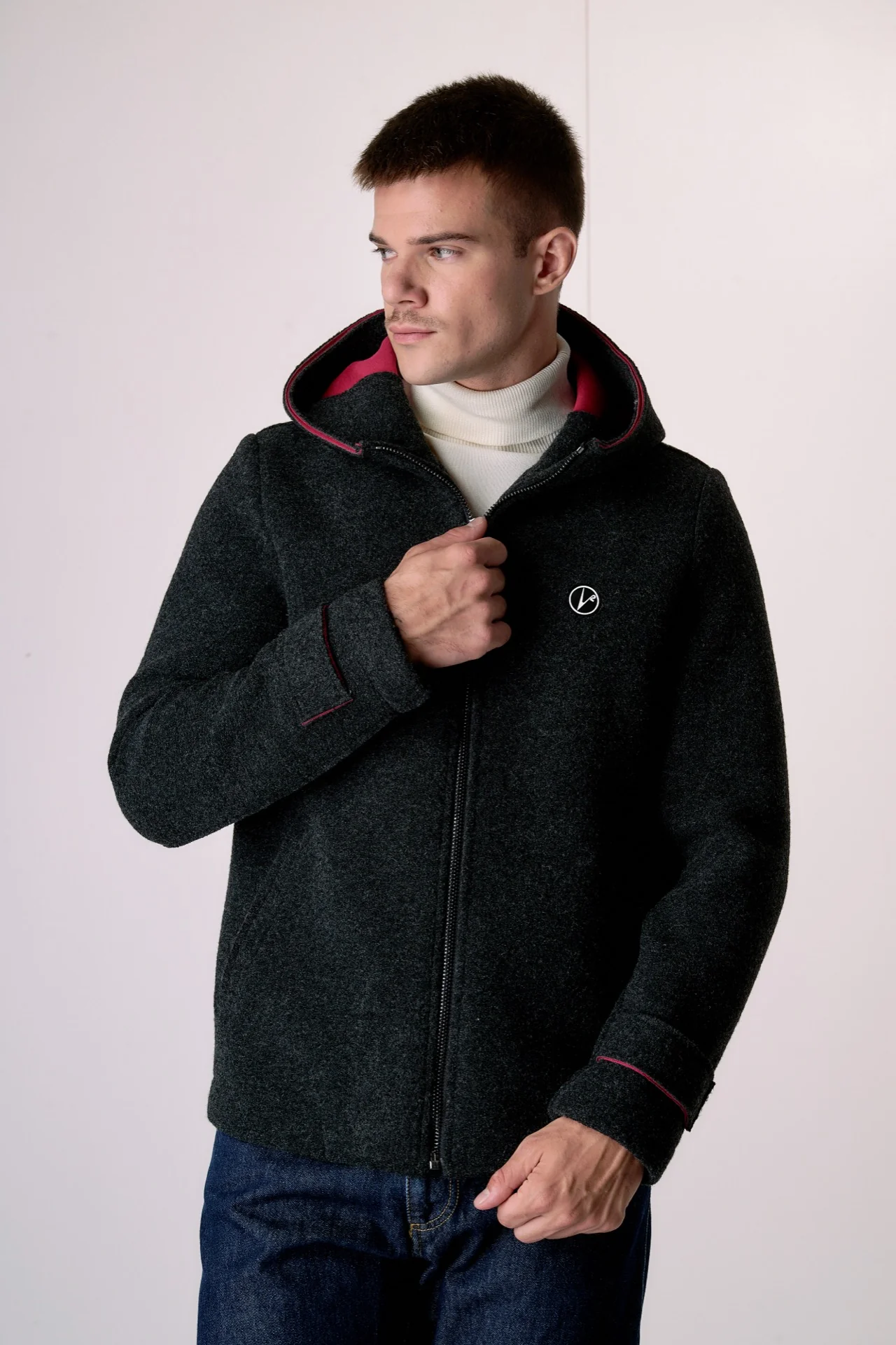 Bomber in lana cotta accoppiata Antracite con cappuccio