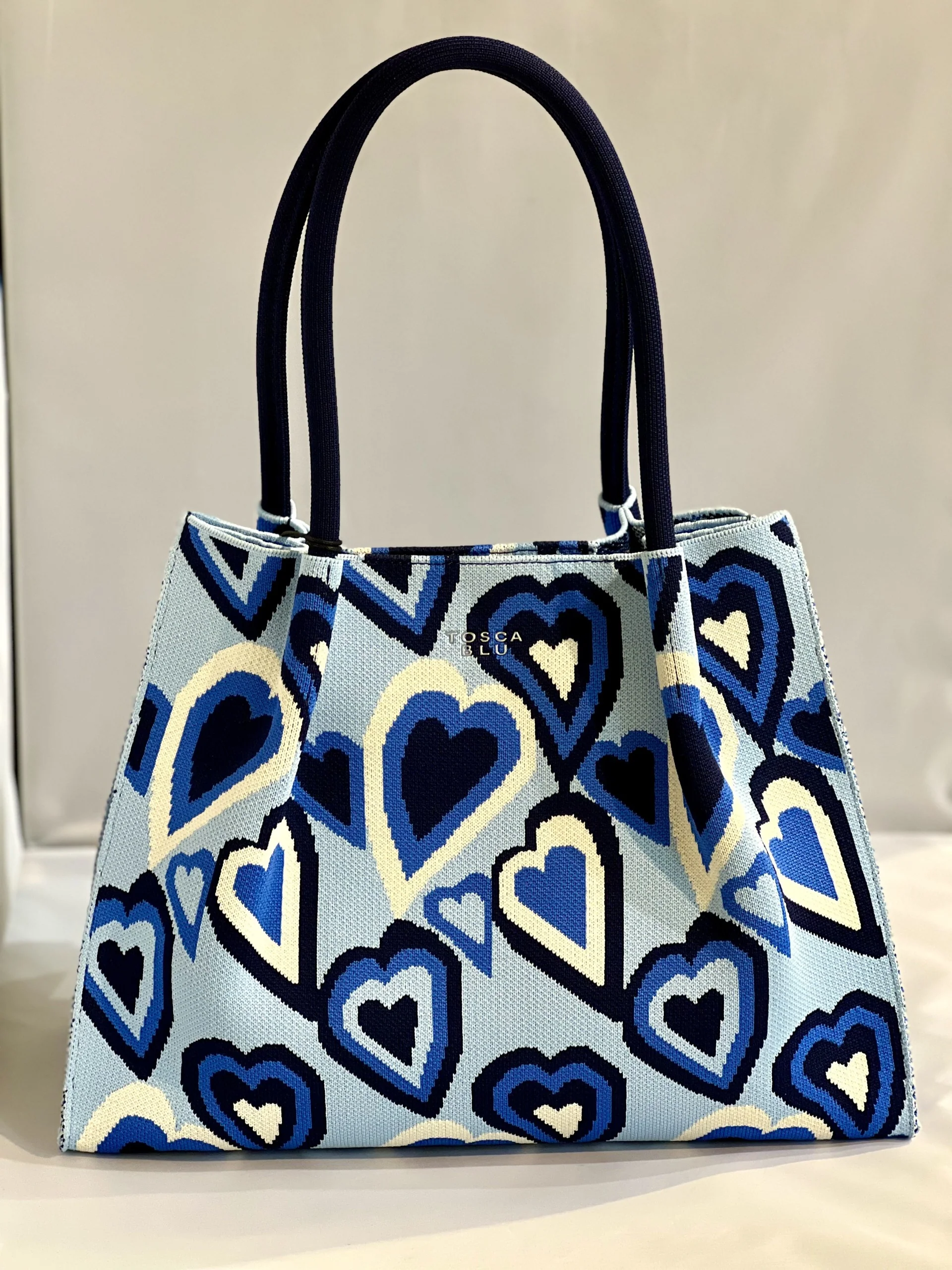 Questa capiente shopping bag saprà accompagnarti con stile nei vari impegni della giornata. Tosca Blu la realizza con un manico perfetto per portare la borsa sia a mano che a spalla e un unico scomparto interno sfoderato. Realizzata in rosso e rosa, presenta una romantica fantasia a cuori. Un bottone magnetico si occupa della chiusura mentre sulla parte frontale di questa shopping bag è applicato il piccolo logo metallico Tosca Blu.
