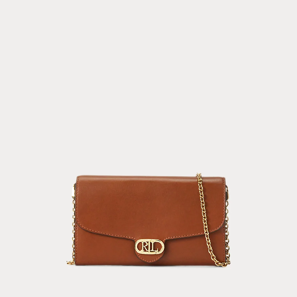 Realizzata con morbida pelle pieno fiore dalla finitura naturalmente liscia e impreziosita da una moderna tracolla a catena, la borsa Adair media presenta una silhouette compatta con numerose tasche che coniuga la praticitร di un modello a tracolla allo spazio essenziale di un portafoglio. ร impreziosito da accessori metallici “LRL” lucidi per un esclusivo tocco Lauren Ralph Lauren.
