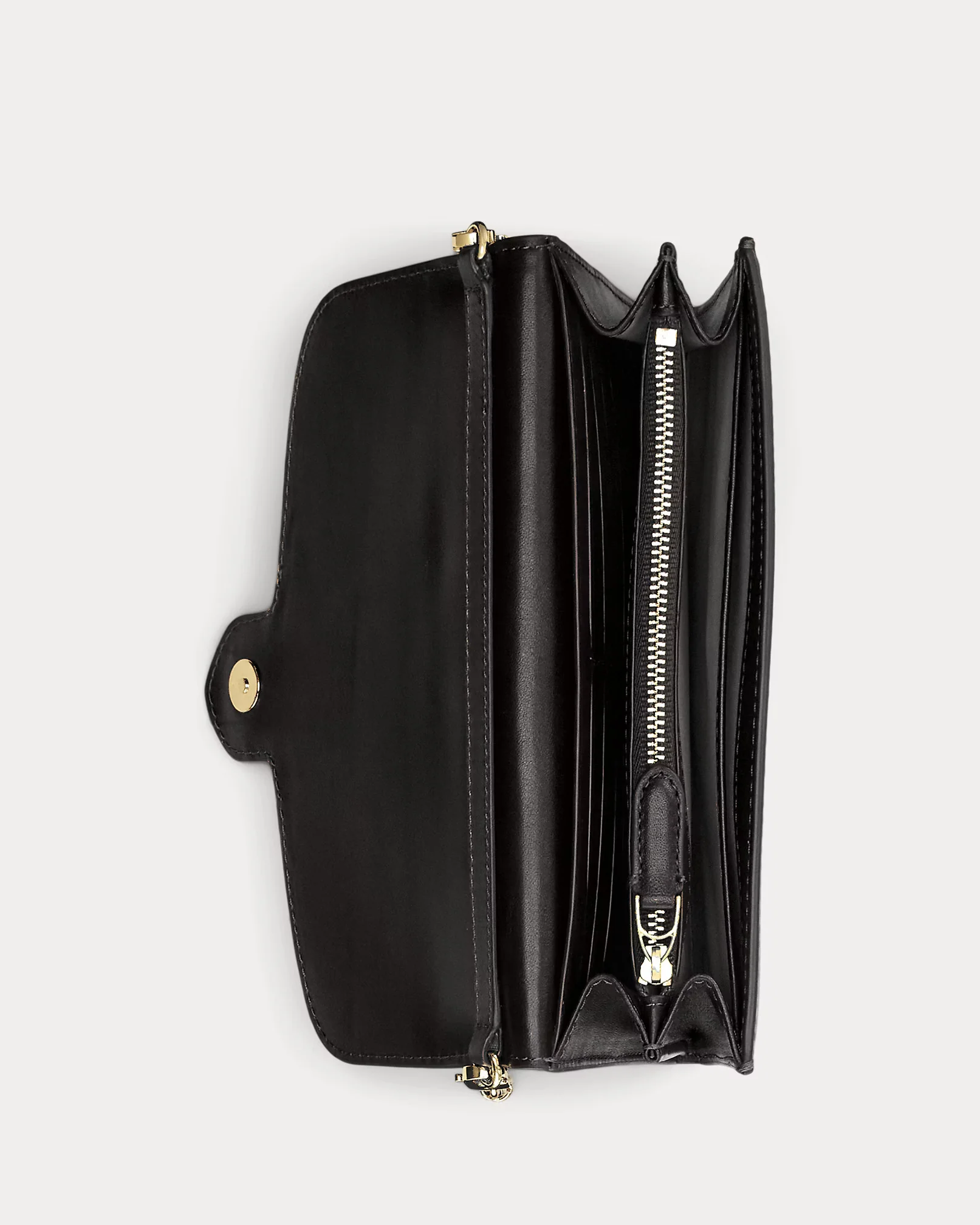 Caratterizzata da una moderna tracolla a catena e una struttura in morbida pelle pieno fiore dalla finitura naturalmente liscia, questa versione del modello Adair presenta una silhouette compatta con numerose tasche che coniuga la praticitร di un modello a tracolla allo spazio essenziale di un portafoglio. Completa l’articolo un logo “LRL” di forma ovale sul davanti.