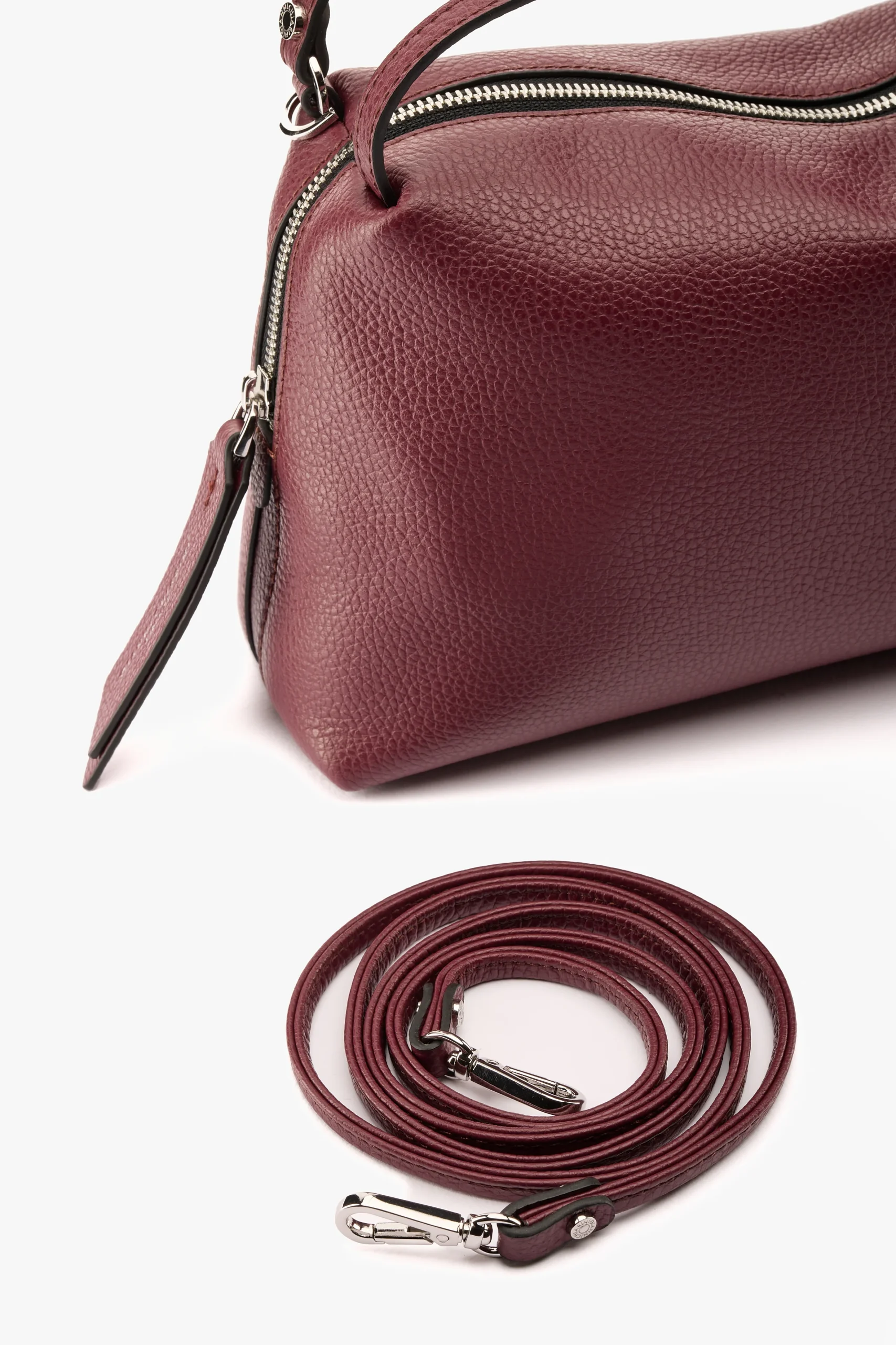 Borsa a mano in pelle martellata wine berry Tracolla in pelle rimovibile 26x16x12 cm