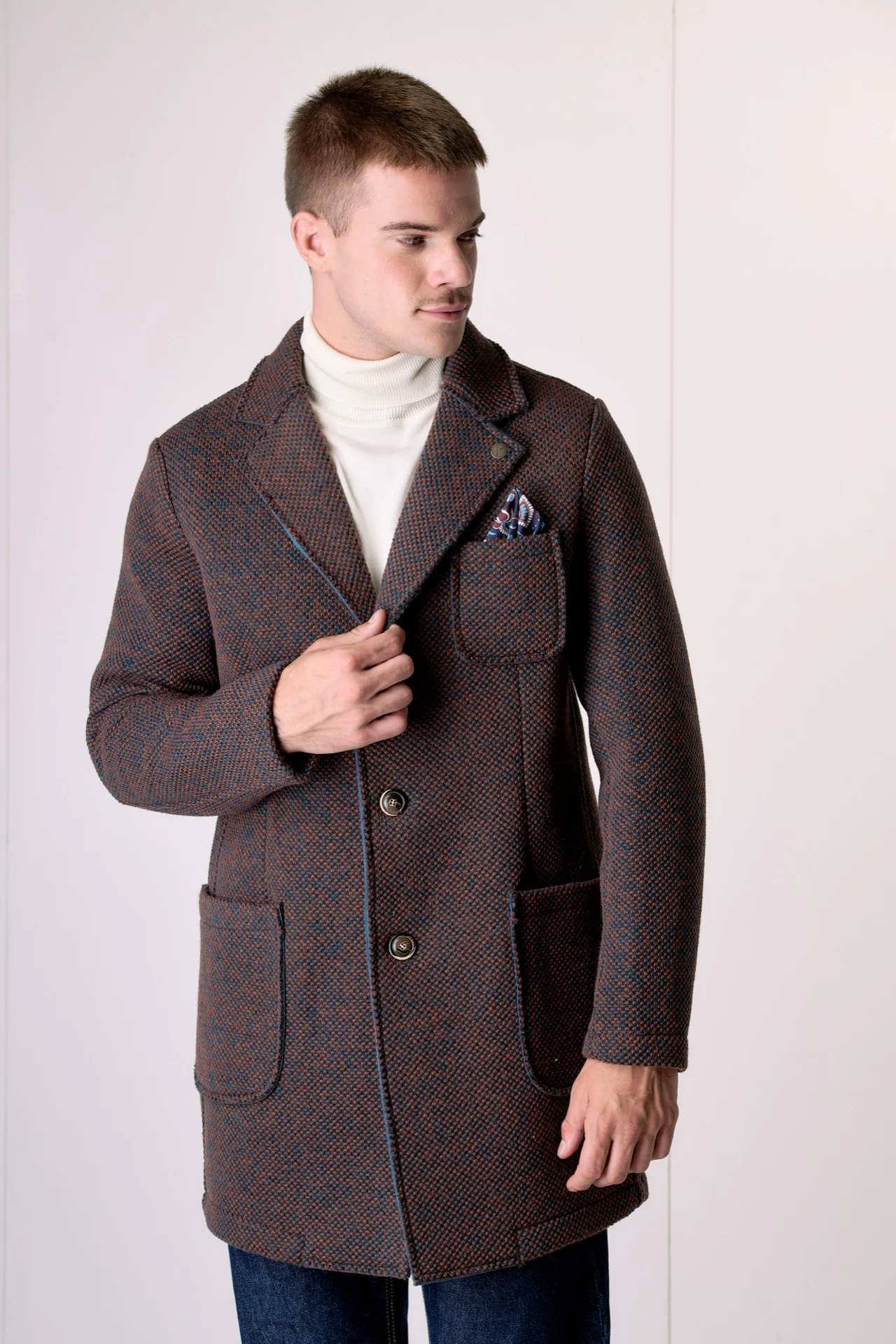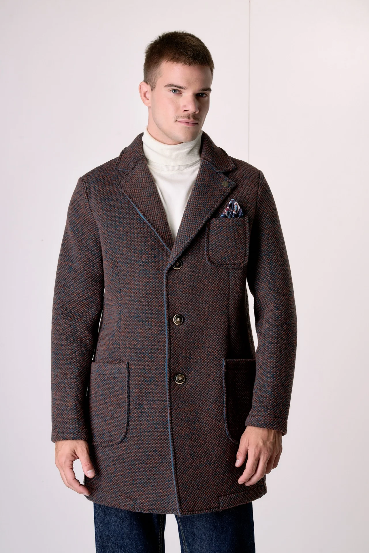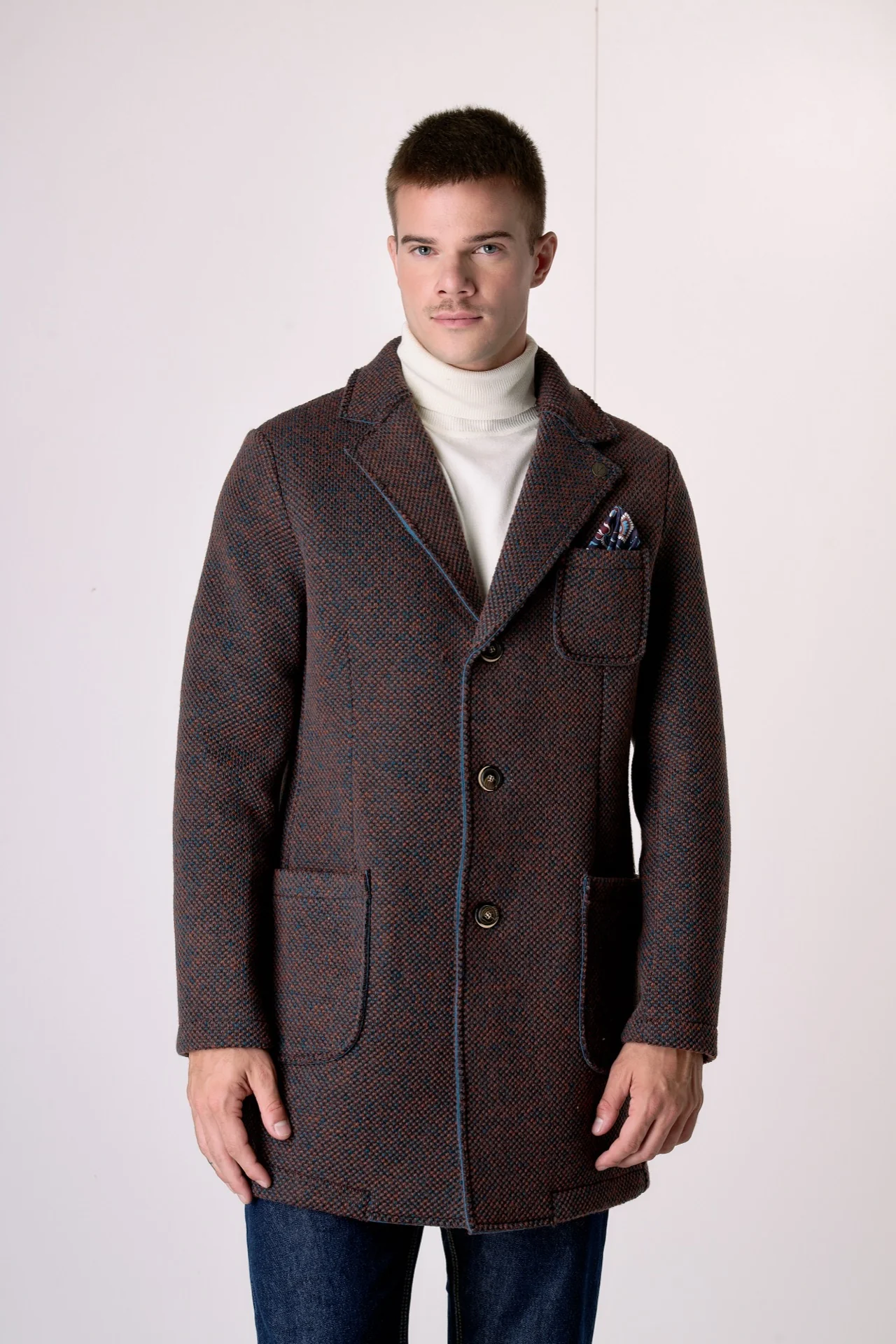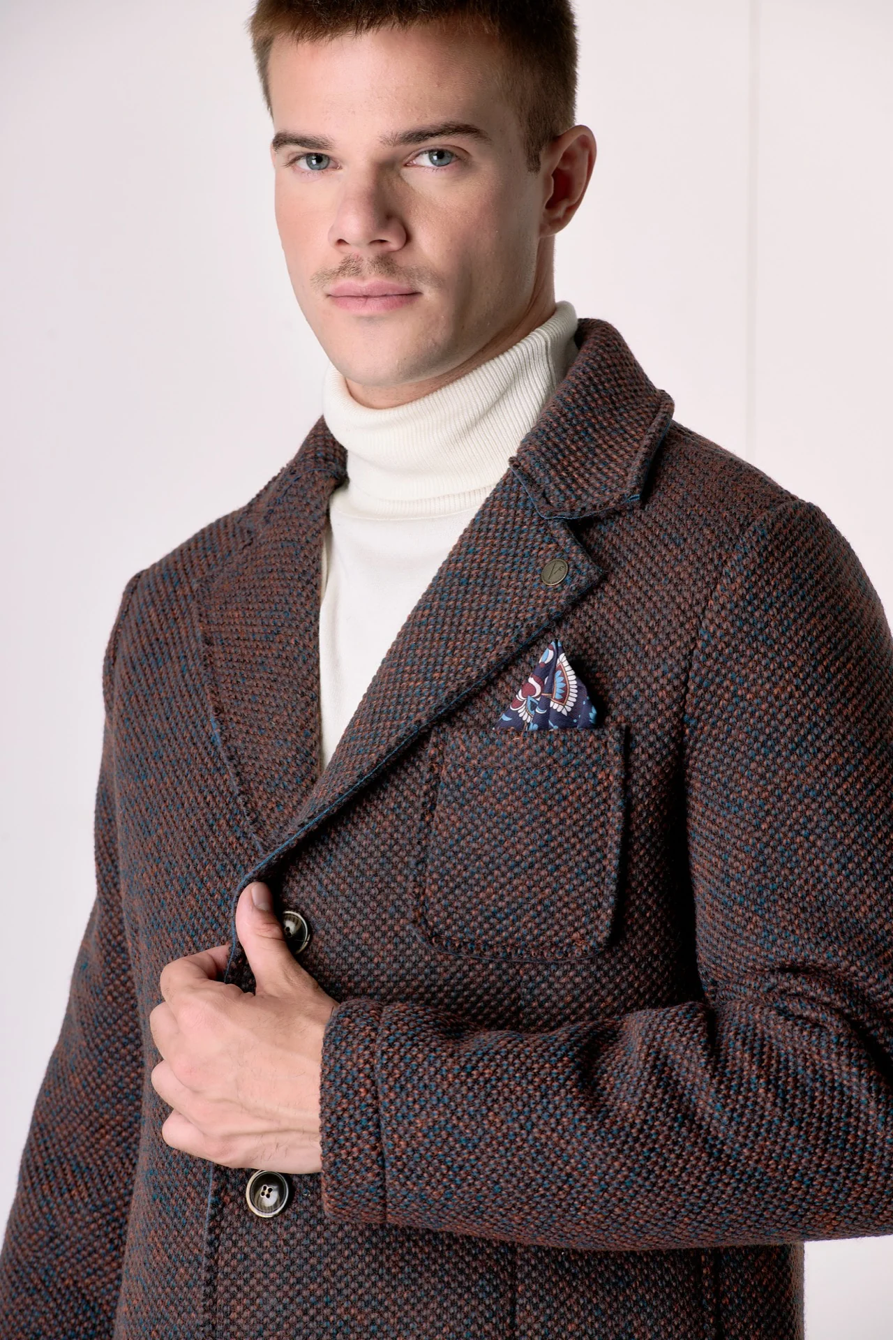 Cappotto Monopetto punto riso Multicolor Moro accoppiato con pochette in Tessuto V2