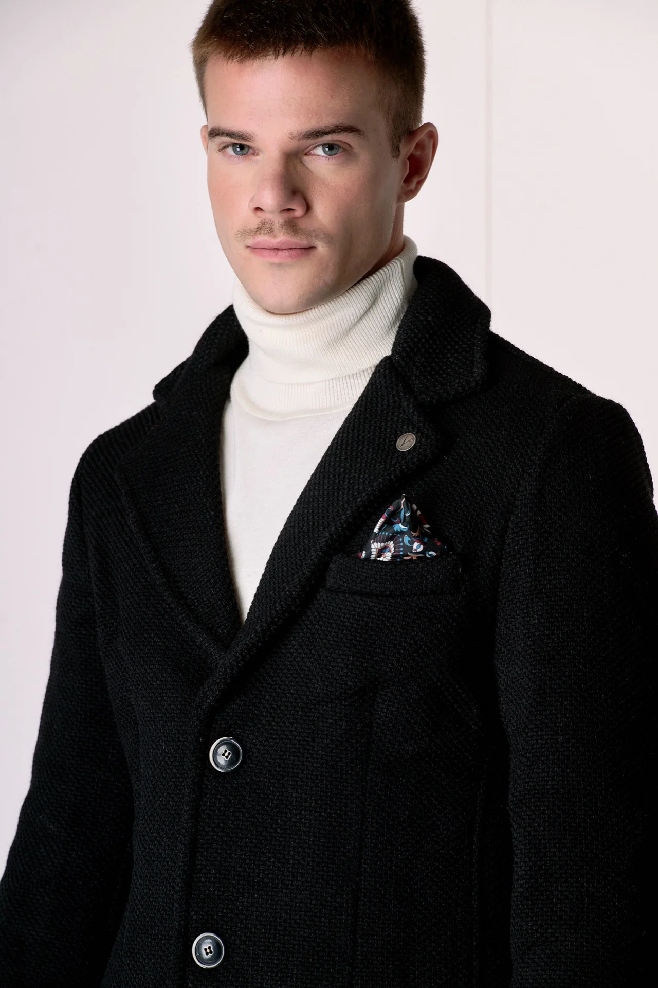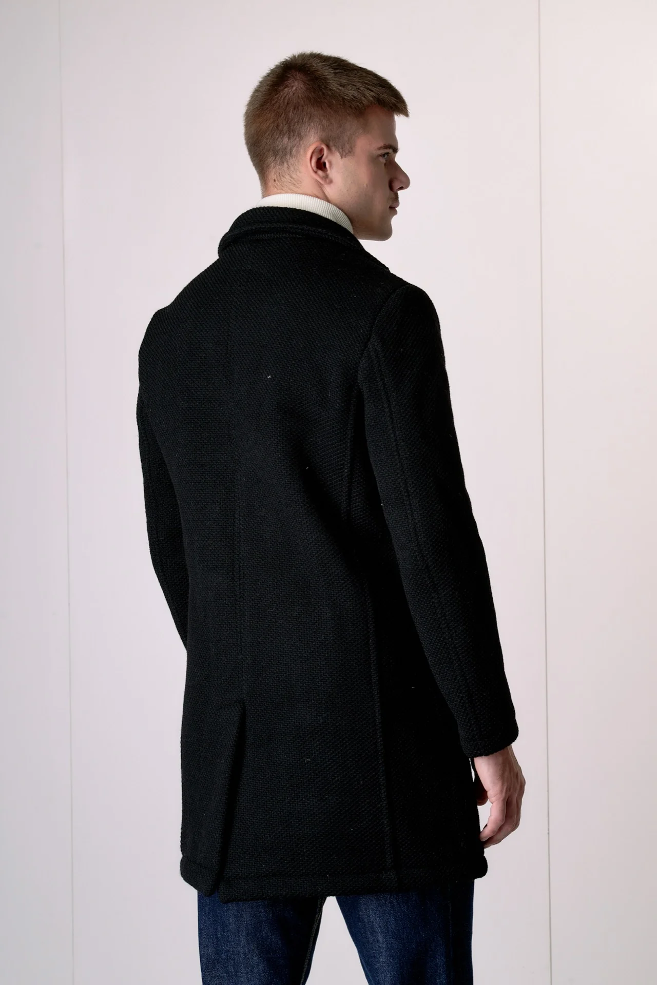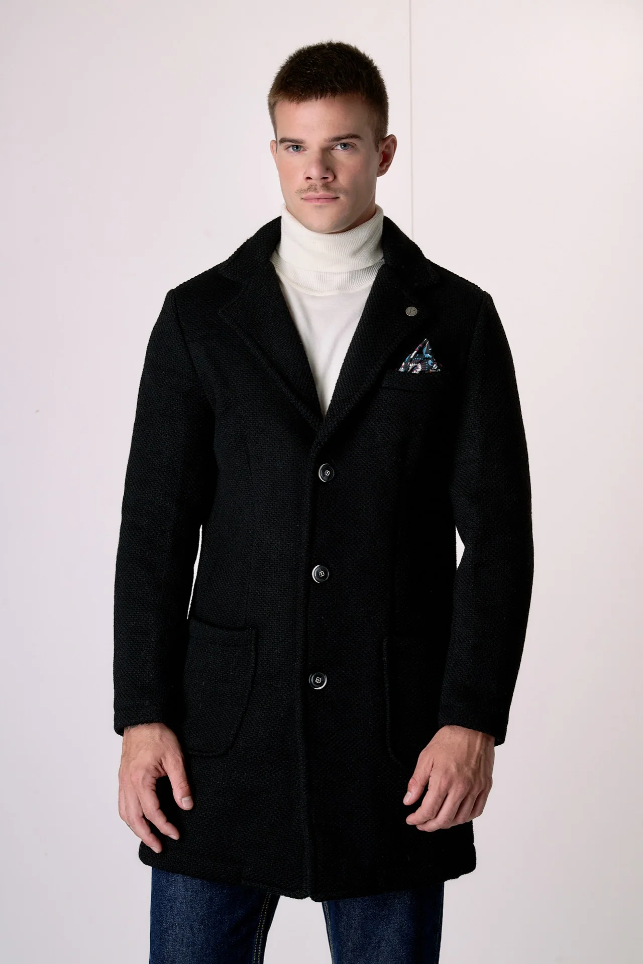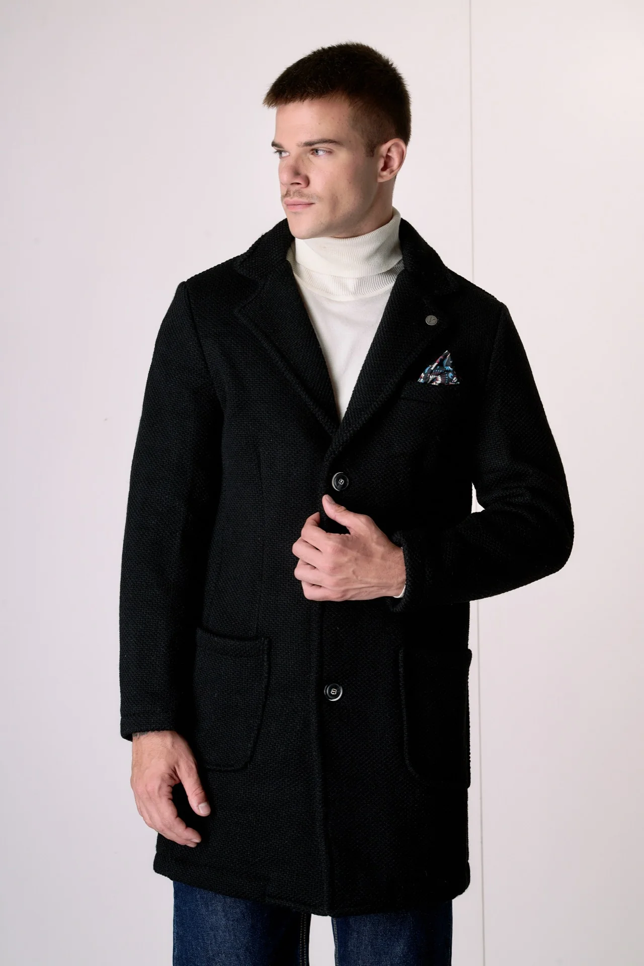 Cappotto Monopetto punto riso Nero con fodera interna e pochette in Tessuto V2