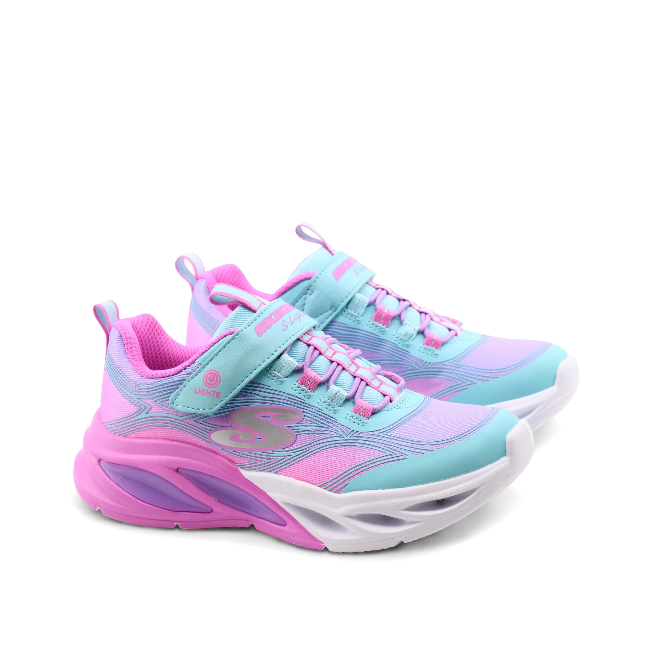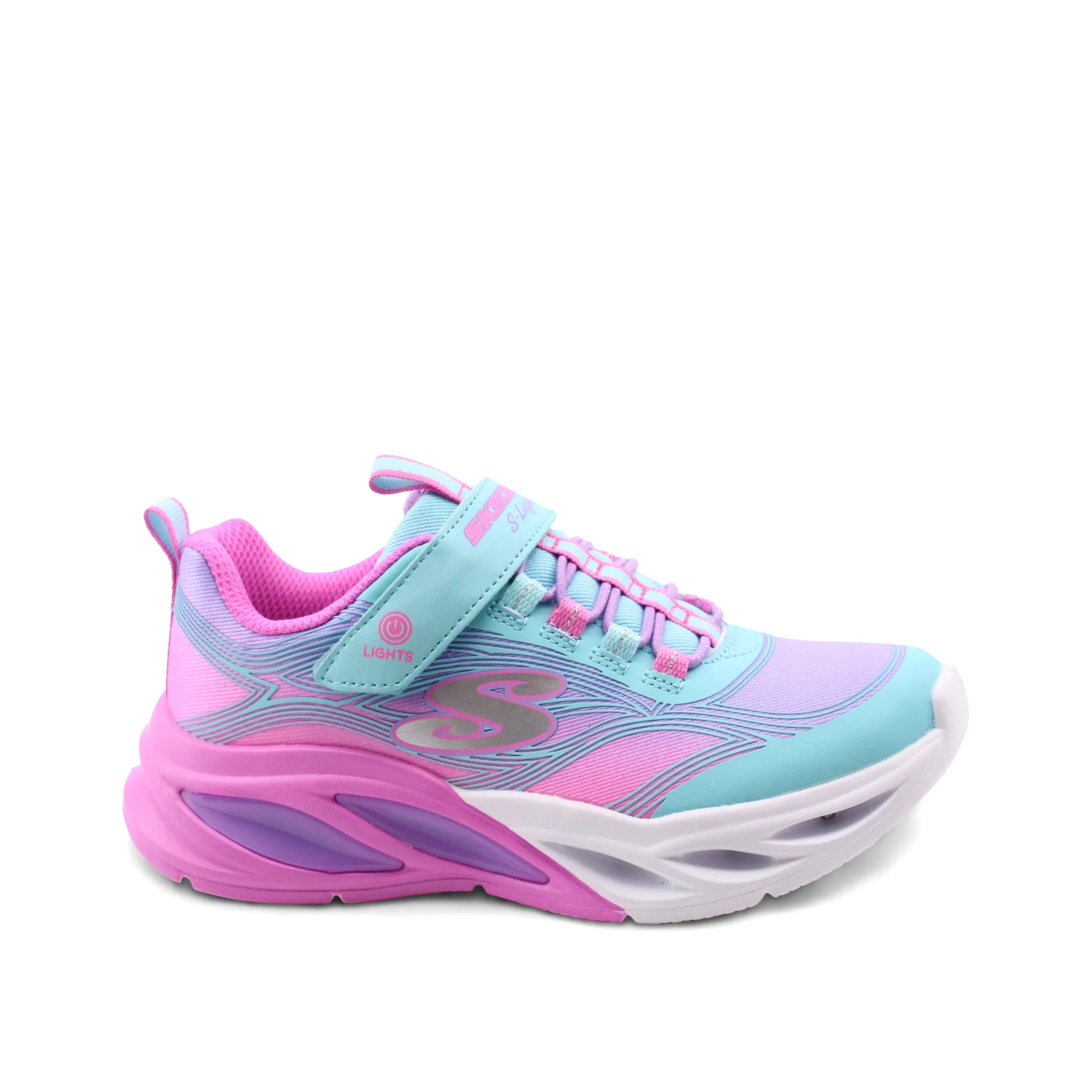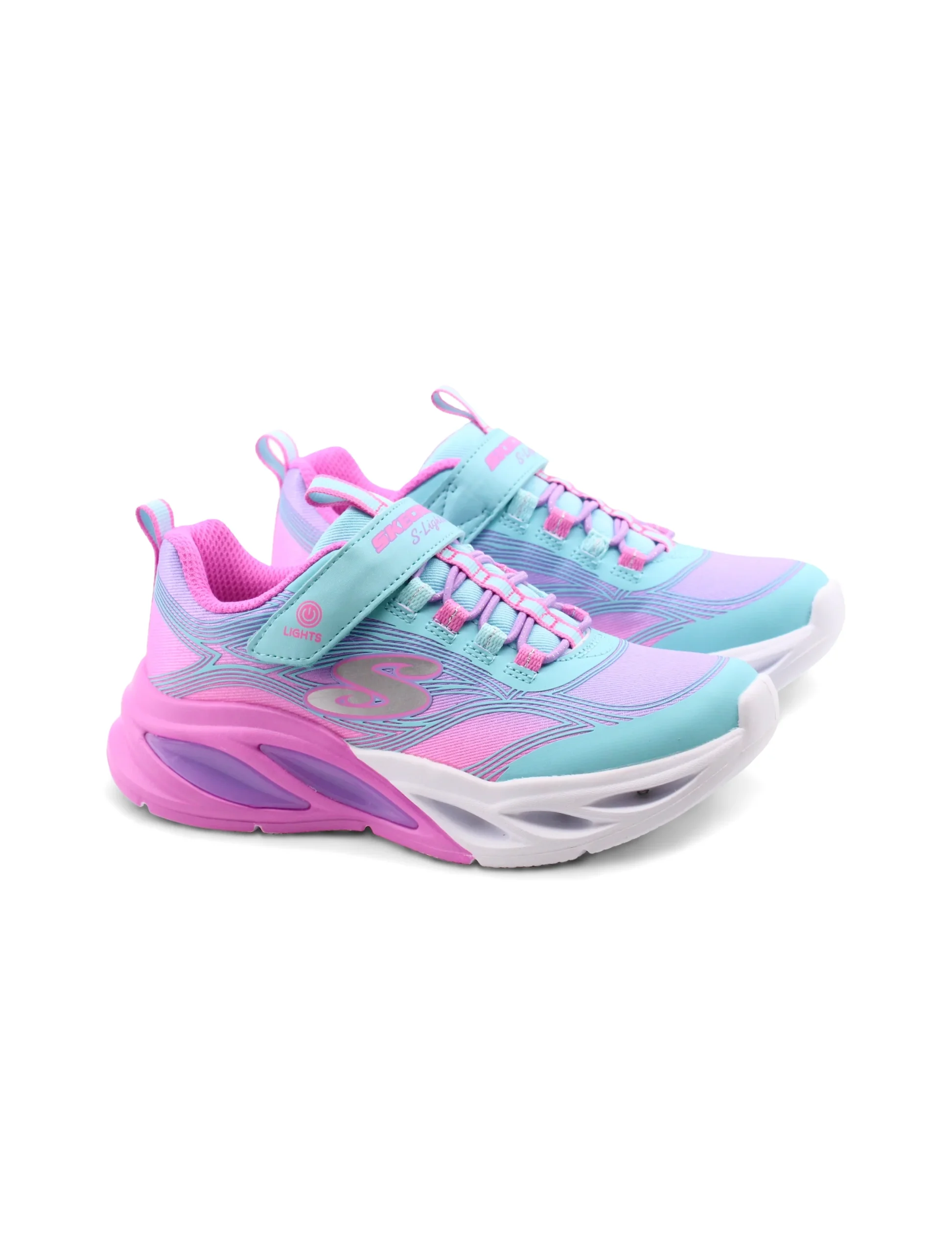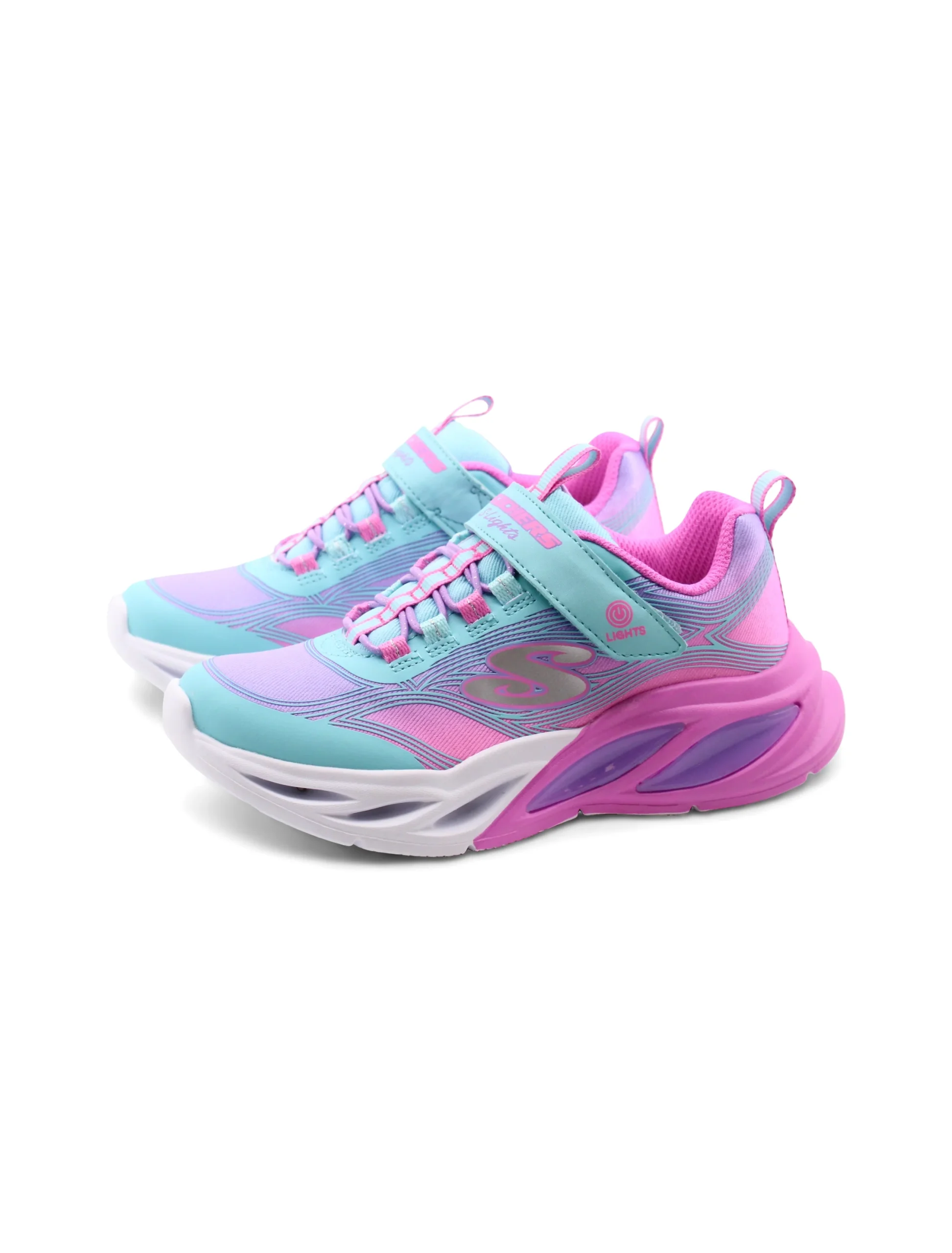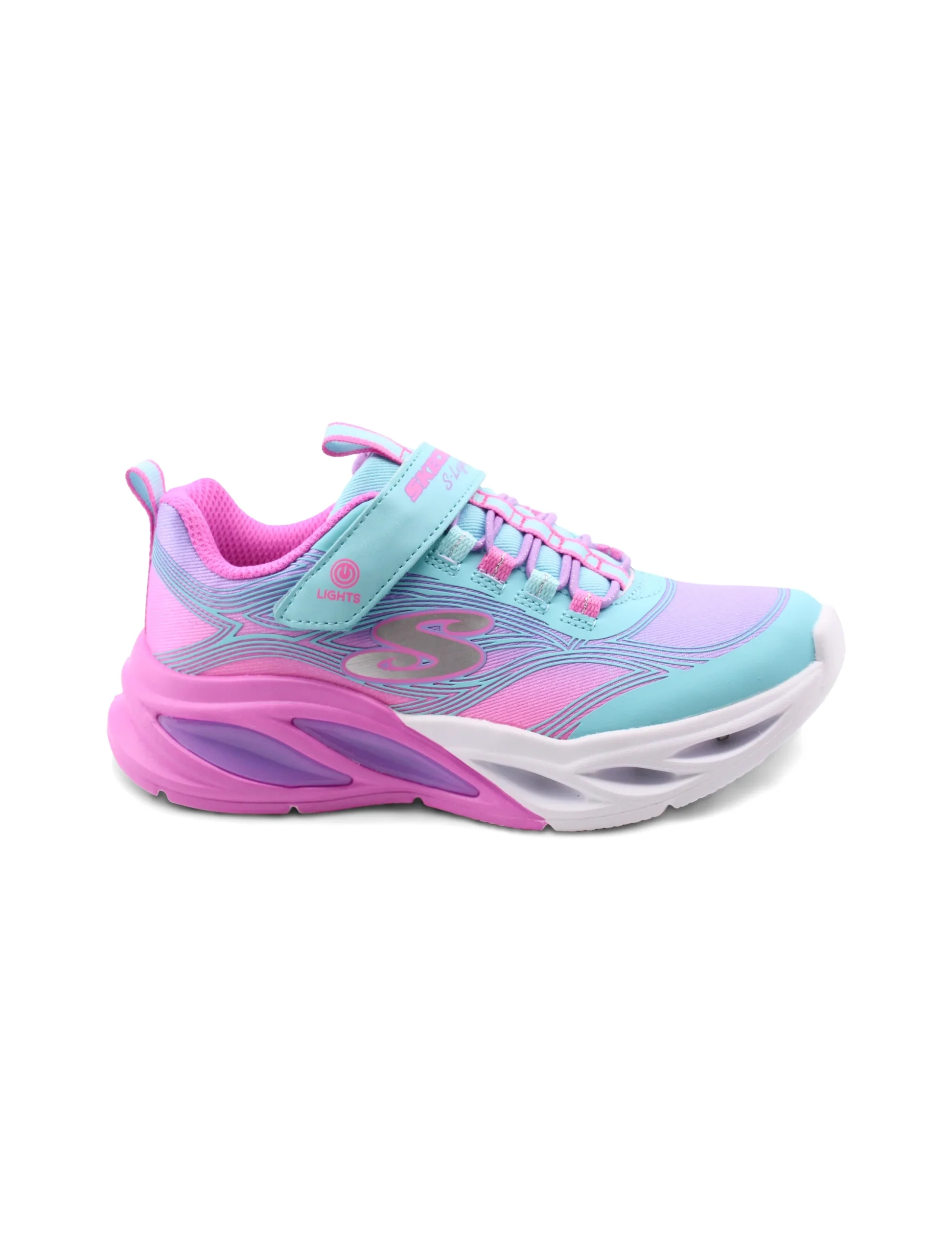 Le Cosmic Glow sneaker da bimba di Skechers sono lโabbinamento perfetto di stile e comfort per le piccole. La chiusura con velcro e lacci elastici permette una regolazione facile e sicura, cosรฌ ogni passaggio sarร un gioco da ragazzi.