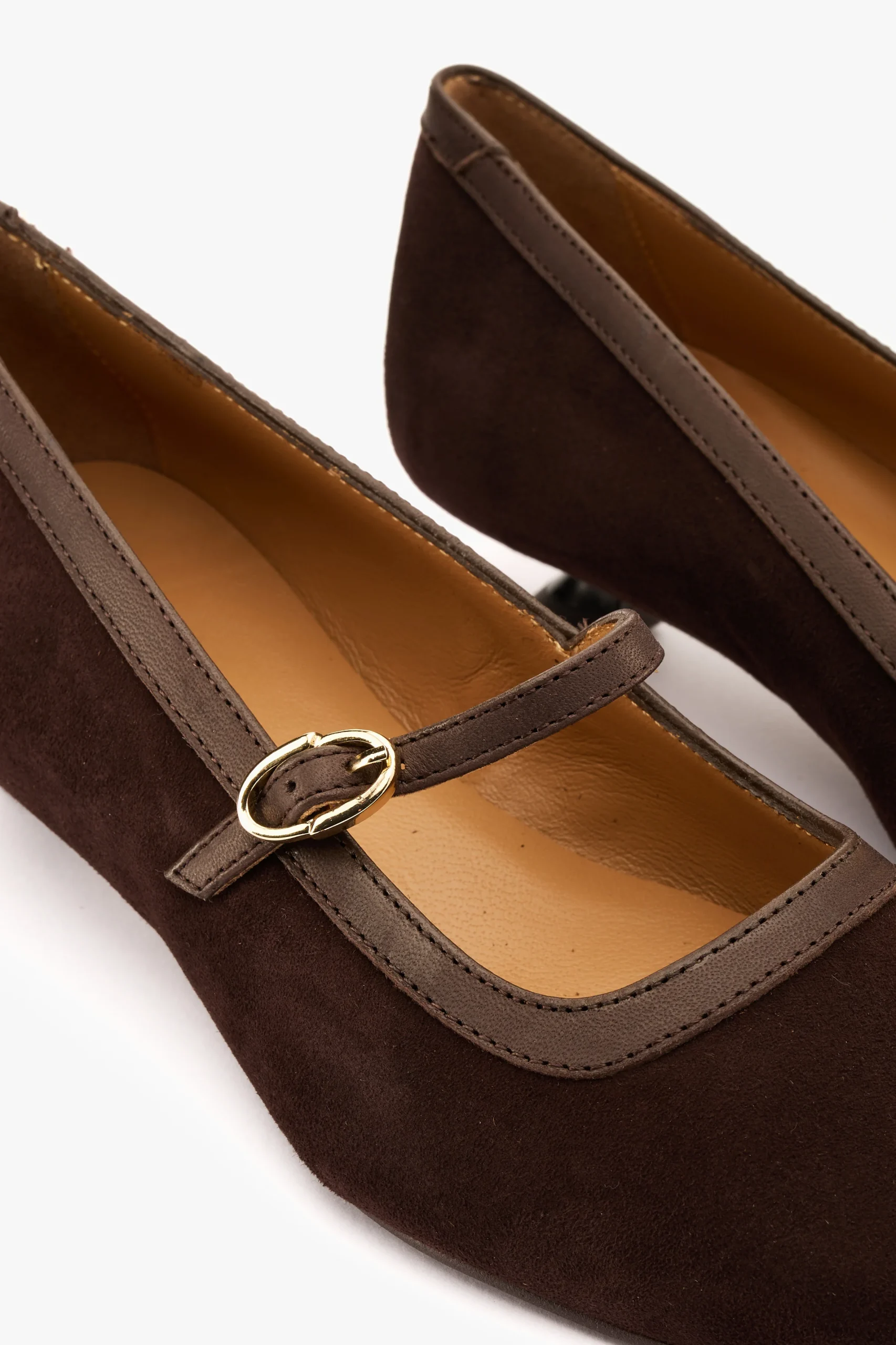 Décolleté in camoscio testa moro con dettagli in pelle e cinturino