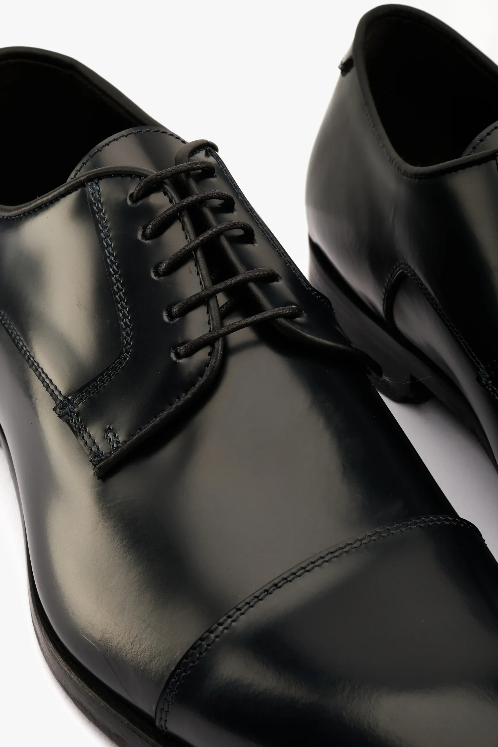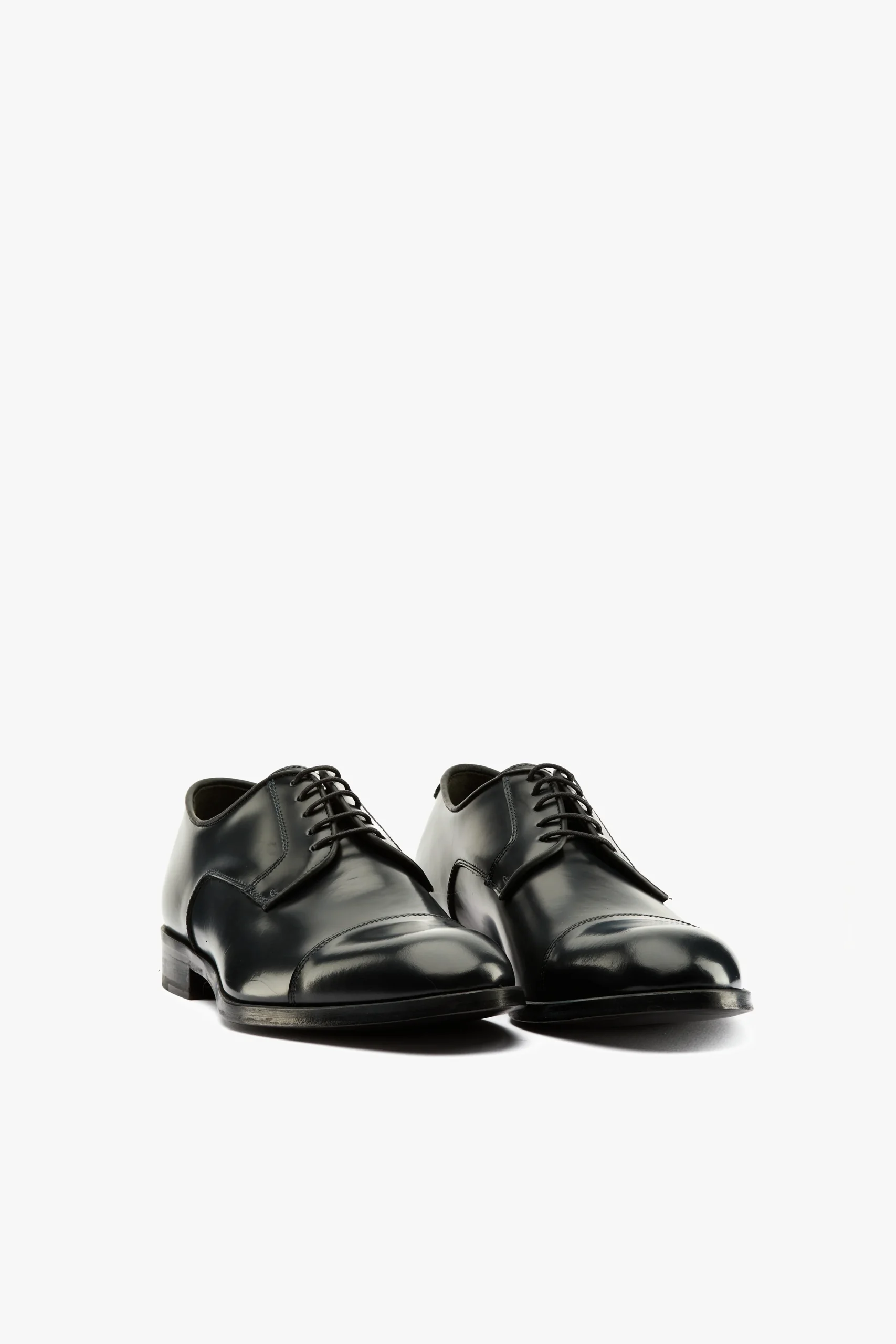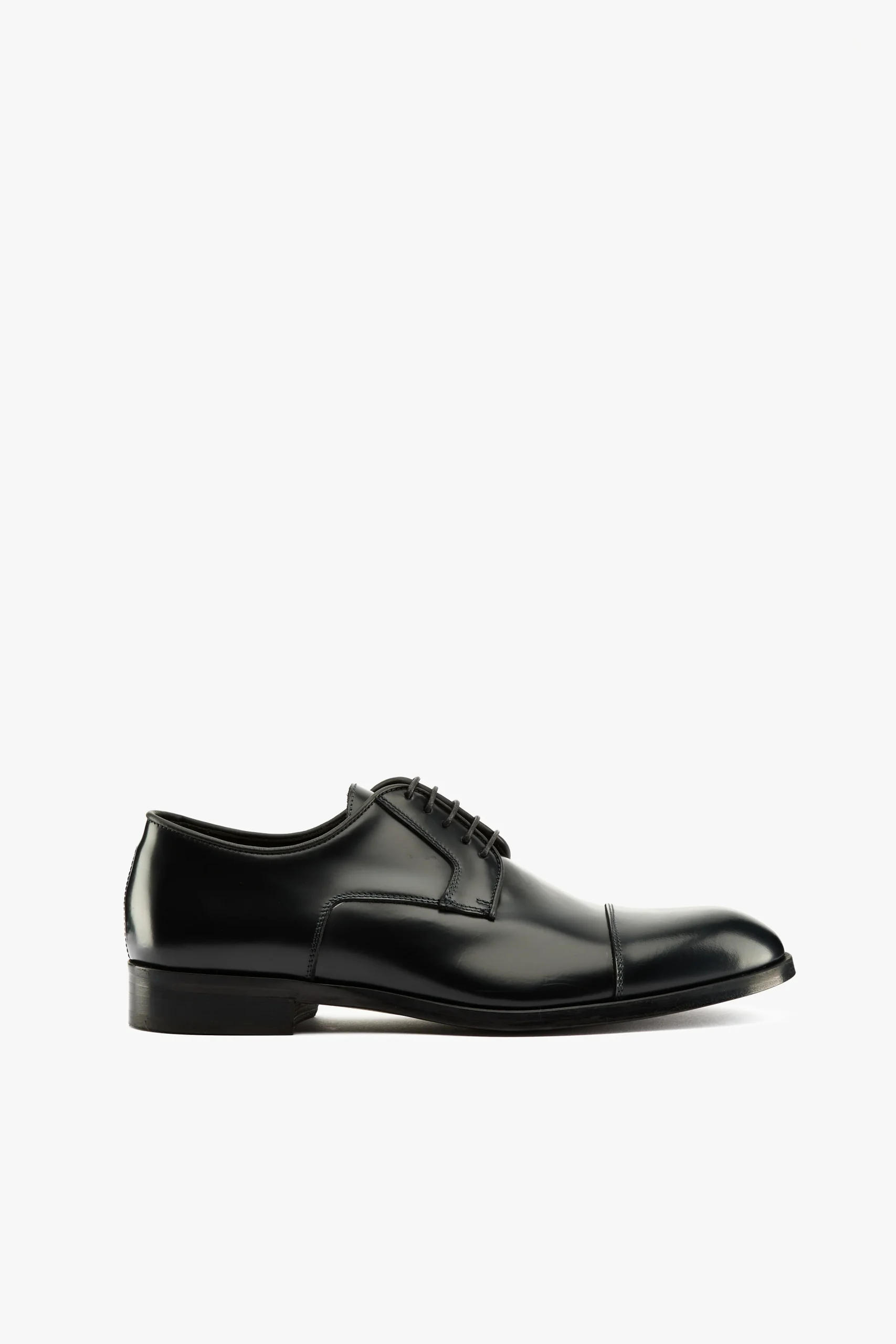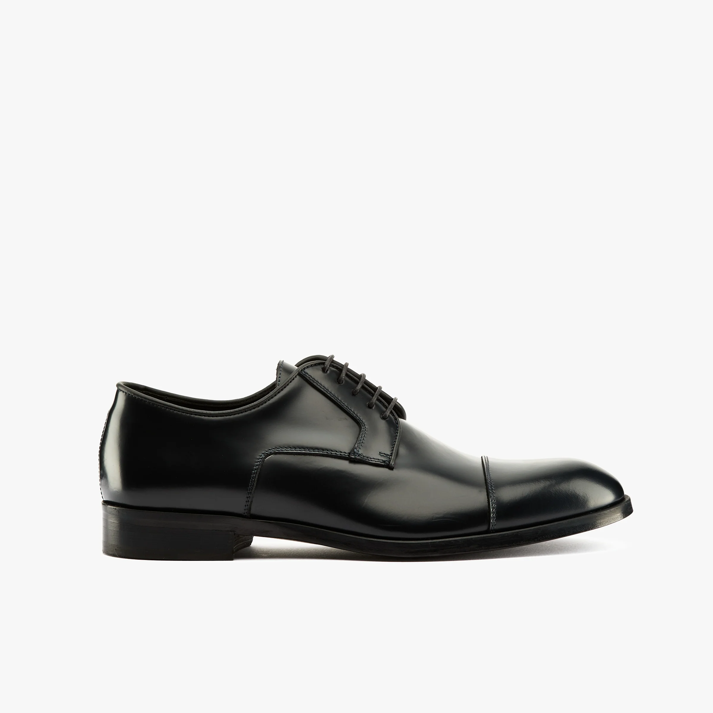 Stringata derby in pelle spazzolata nero con puntale Sottopiede e fodera in pelle, suola in cuoio Made in Italy Calzata regolare