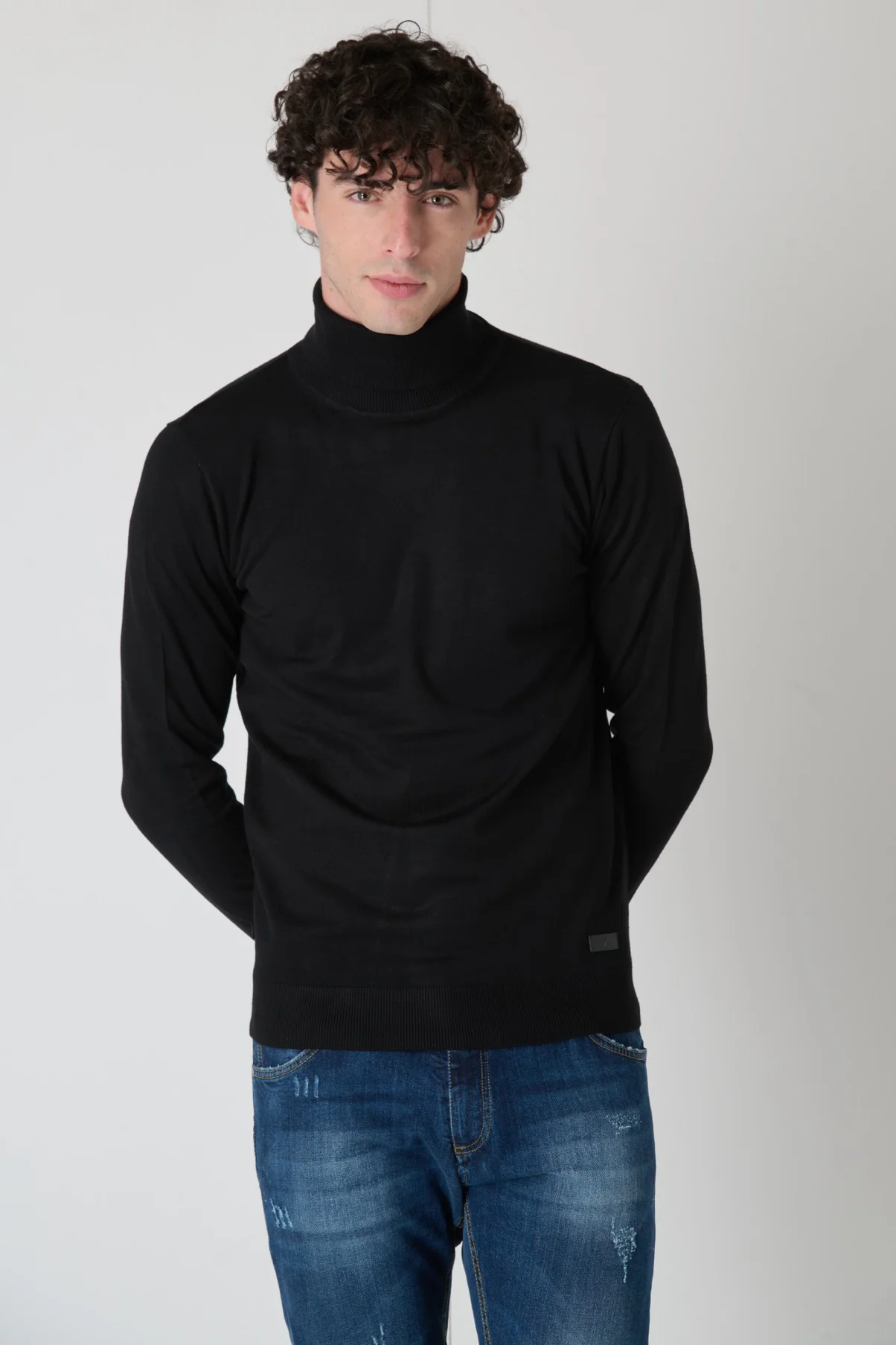 Aggiungi un tocco di magia ai tuoi outfit di tutti i giorni con il Dolcevita Girocollo in viscosa Nero, arricchito dal dettaglio unico della salpa logata V2.