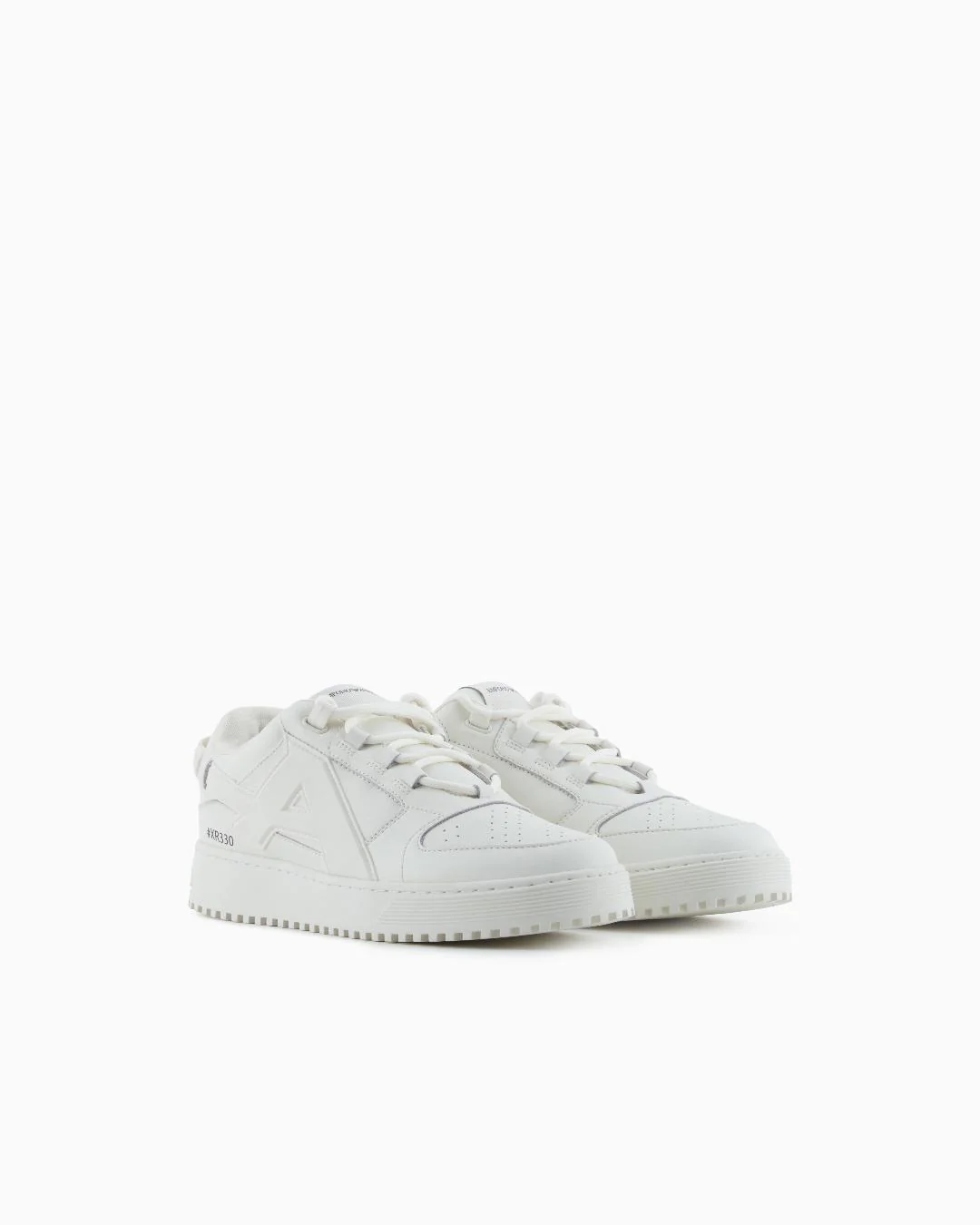 Emporio Armani Sneakers in pelle bianche con maxi patch EA