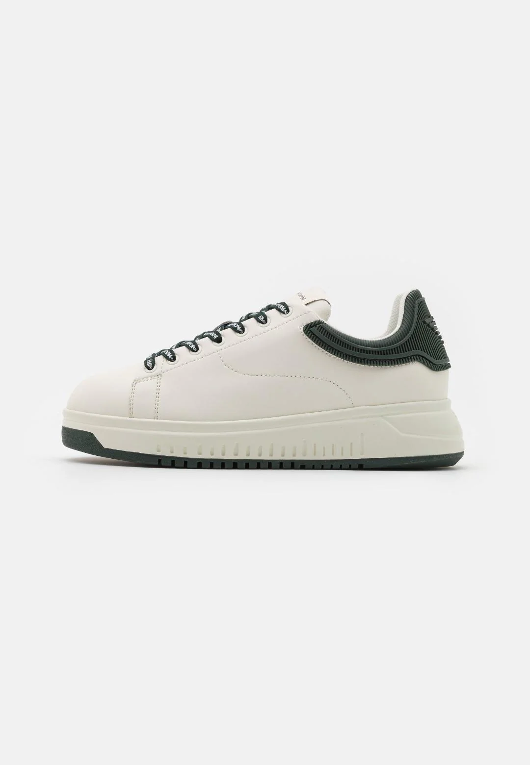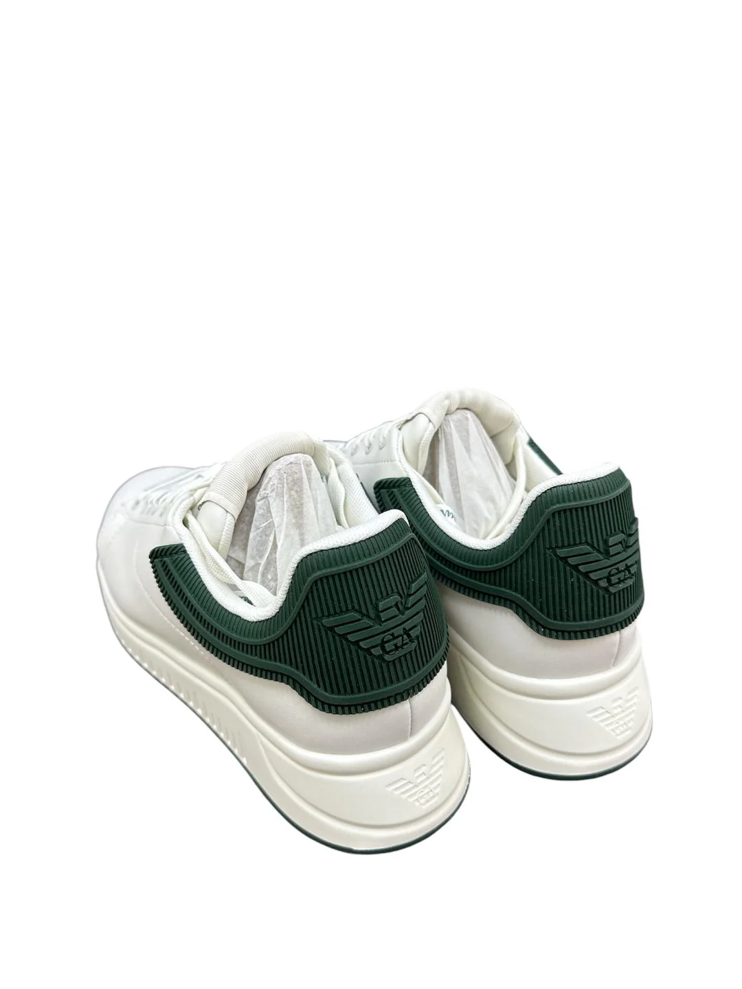 Emporio Armani Sneakers in pelle bianche con retro in gomma verde