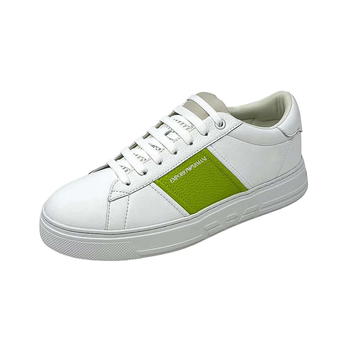 Un design essenziale che riprende lo stile delle calzature basket anni Novanta. Sneaker in pelle di vitello con finitura martellata, dalle linee pulite e dalla vestibilitร confortevole. Sulla parte anteriore della linguetta e sul back tab รจ sempre serigrafato il logo Emporio Armani e il motivo Aquila.