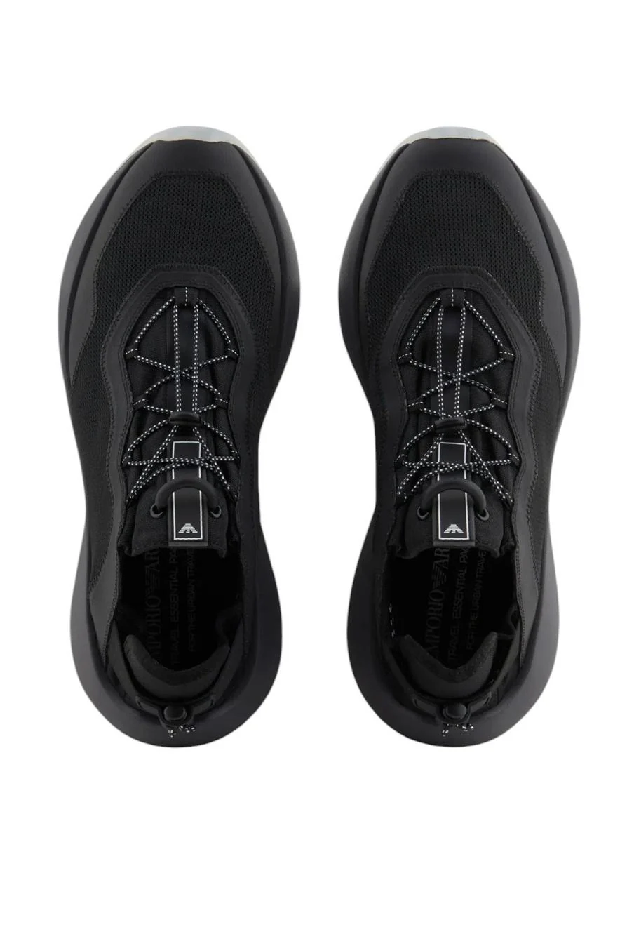 Sneakers della linea Travel Essential realizzate in maglia tecnica con dettagli in TPU. Chiusura con coulisse elastica. Fodera in tessuto. Soletta removibile in Soft Foam. Suola in gomma con logo impresso sul retro. Dotate di custodia da viaggio.