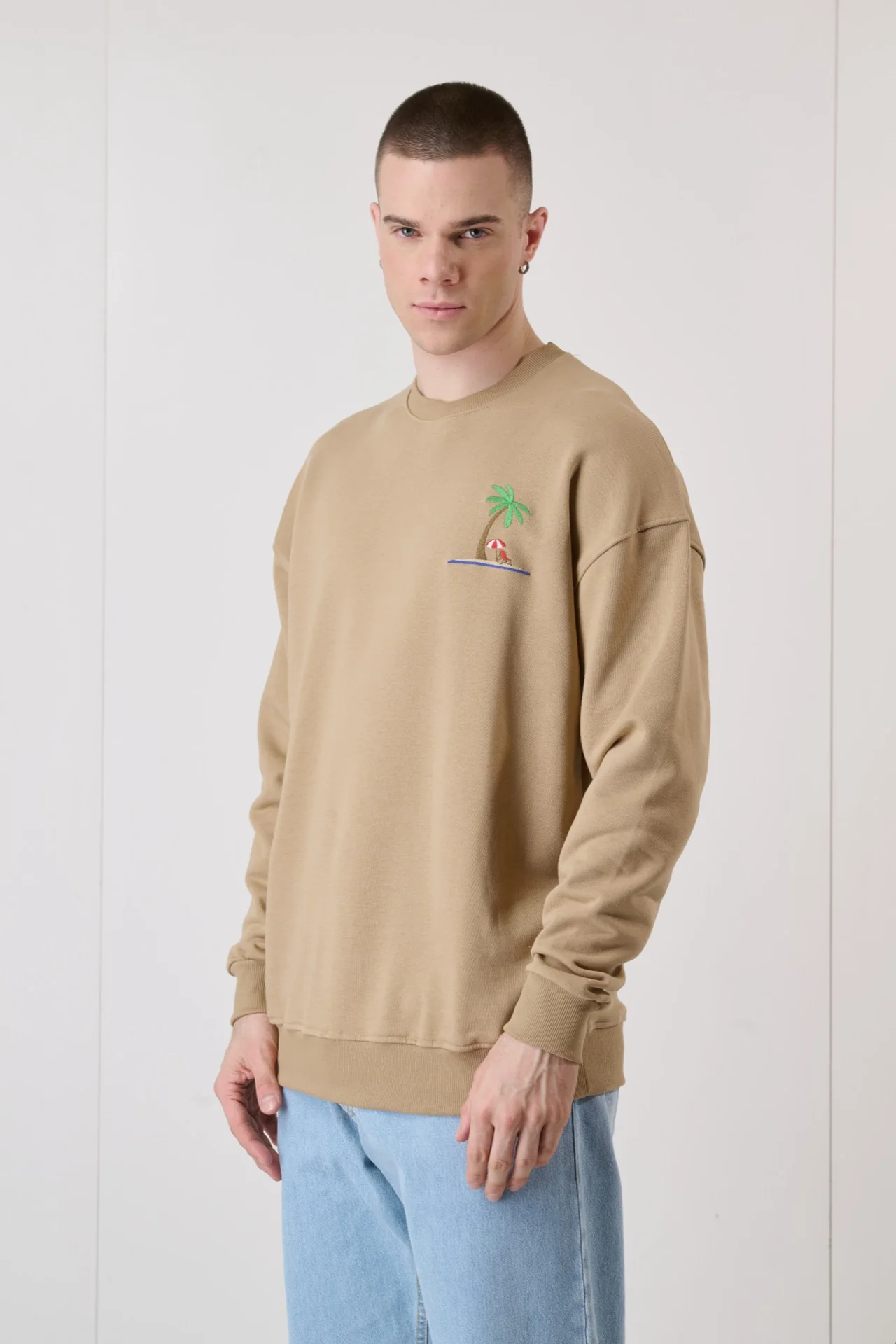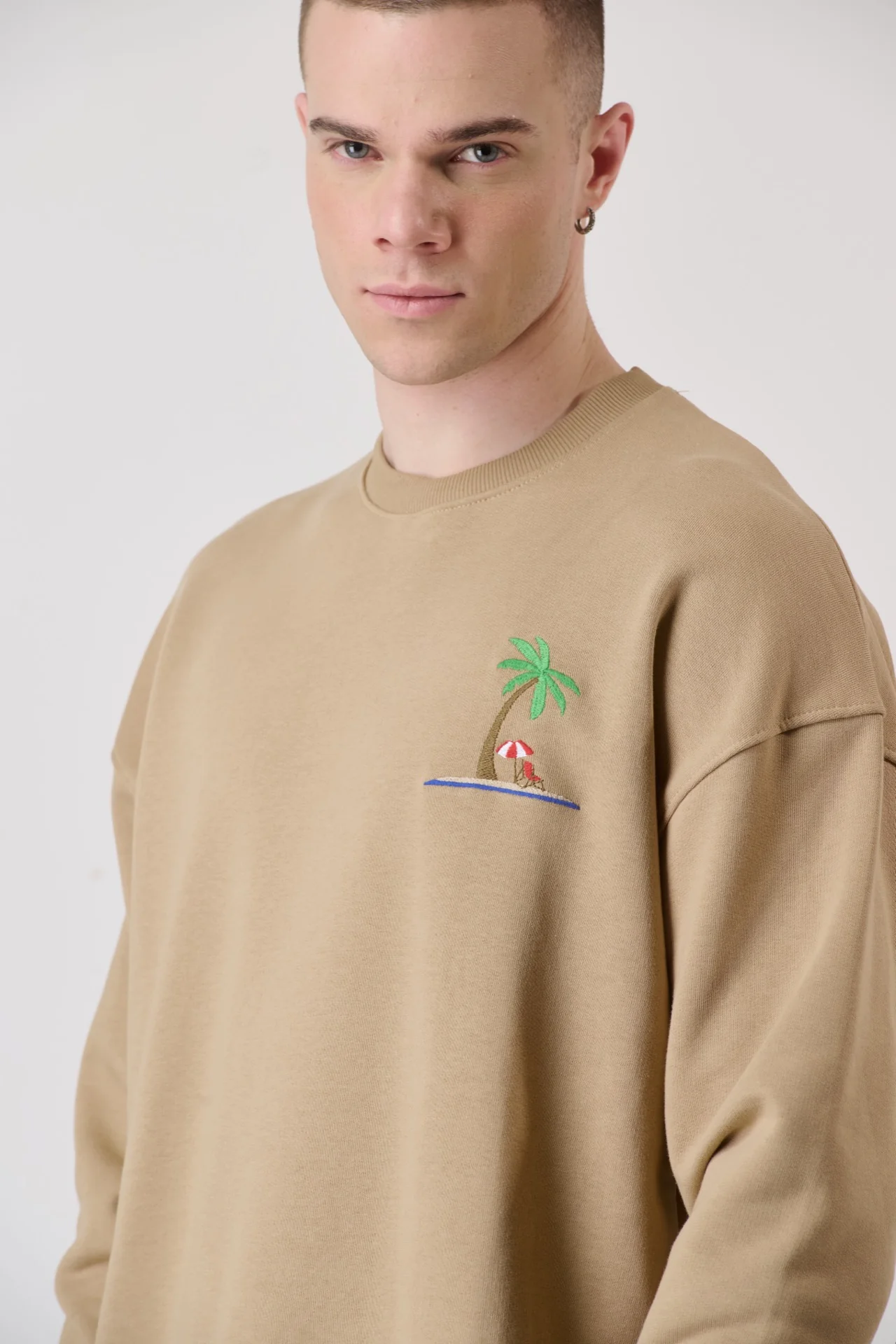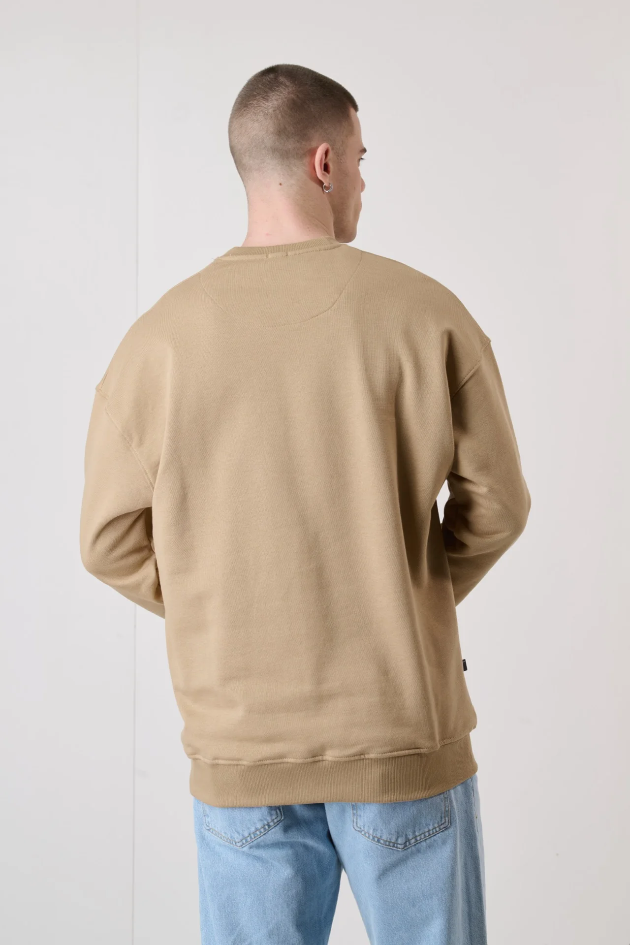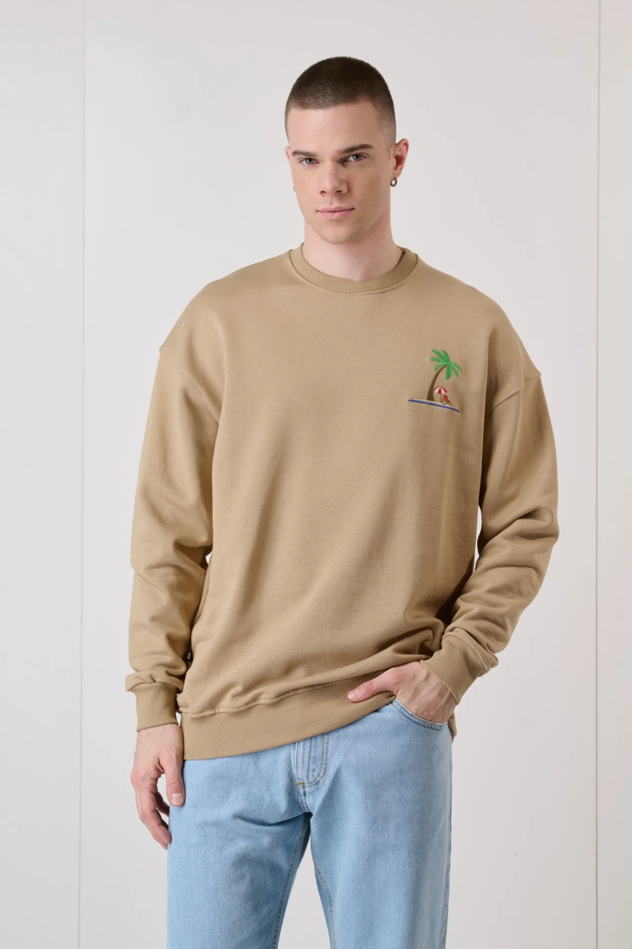 Felpa Girocollo Sabbia con Ricamo e interno collo in tessuto V2