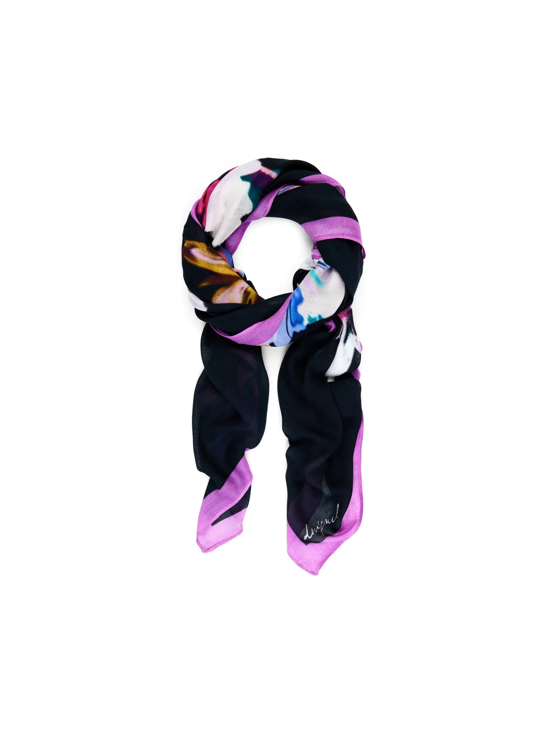 Floral Garden, il foulard da donna firmato Desigual, porta una stampa floreale vivace senza risultare troppo appariscente. Realizzato in viscosa, รจ leggero e morbido: piacevole sulla pelle e facile da modellare in base al tuo stile.