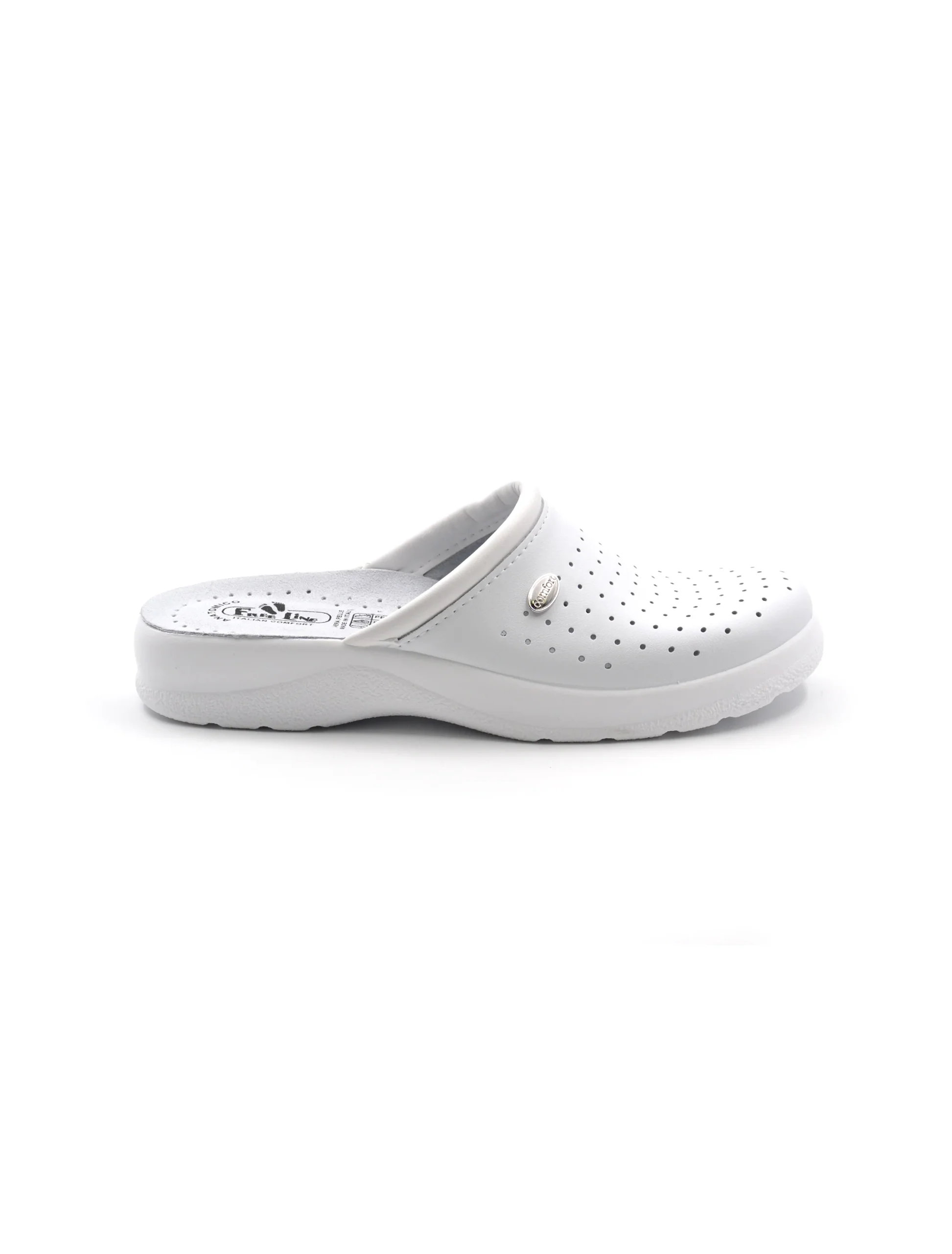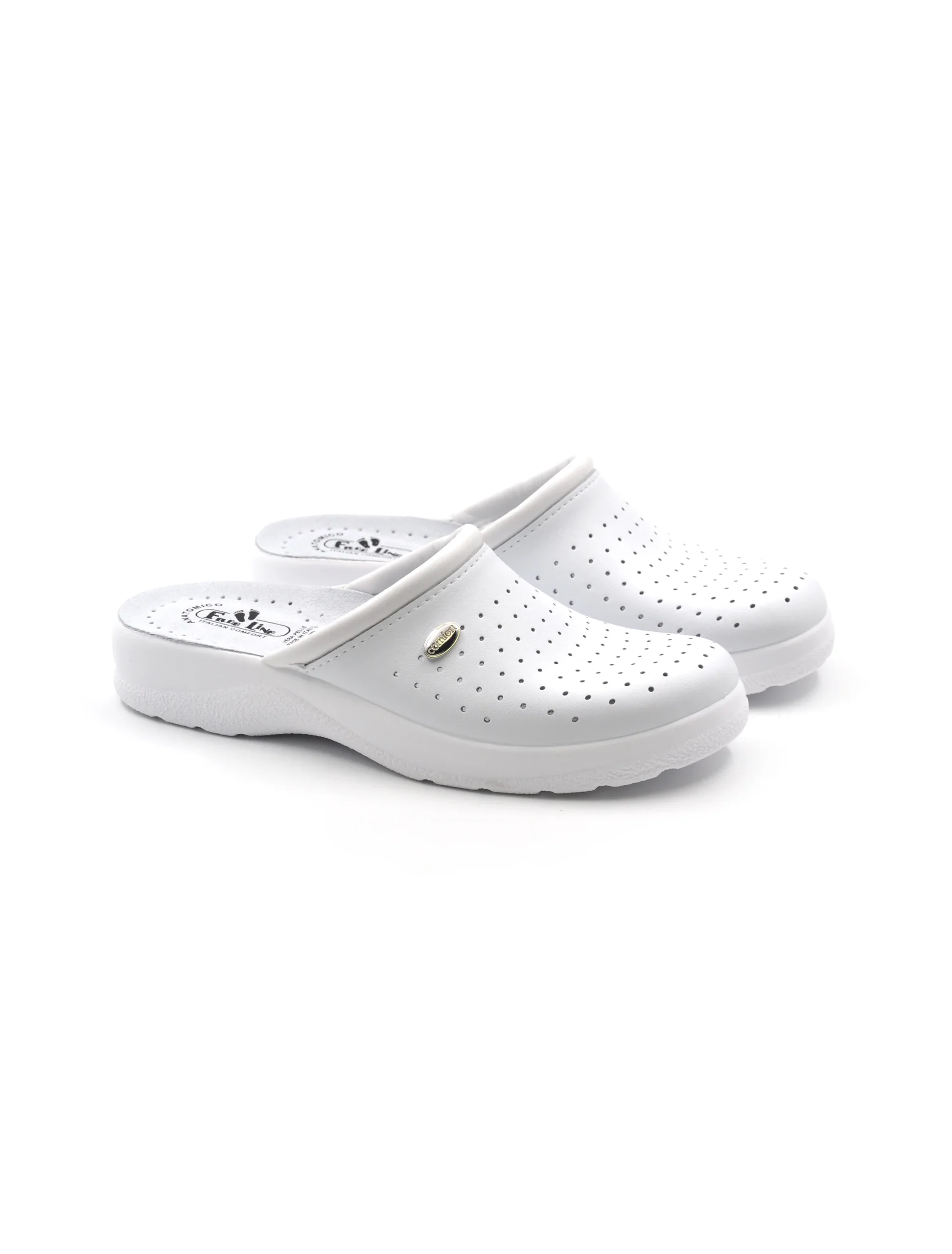 Ciabatta sanitaria da uomo FreeLine made in Italy in vera pelle traforata con morbido sottopiede anatomico in vera pelle e fondo in gomma antiscivolo.