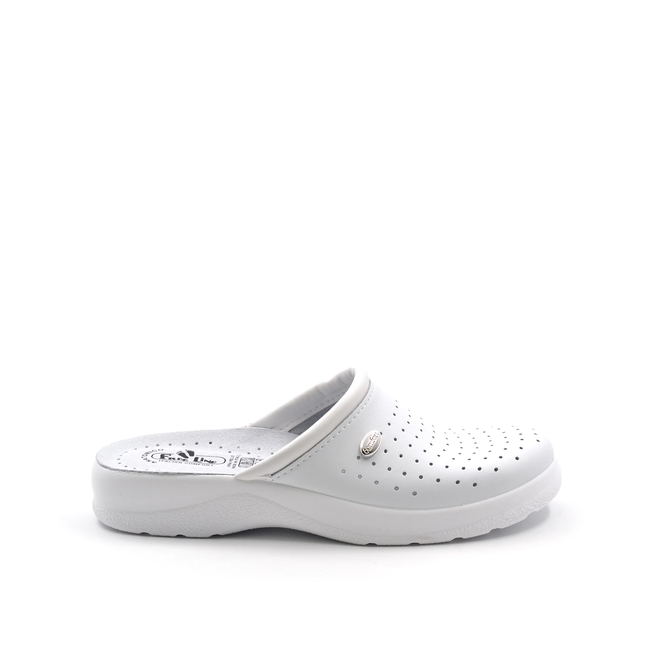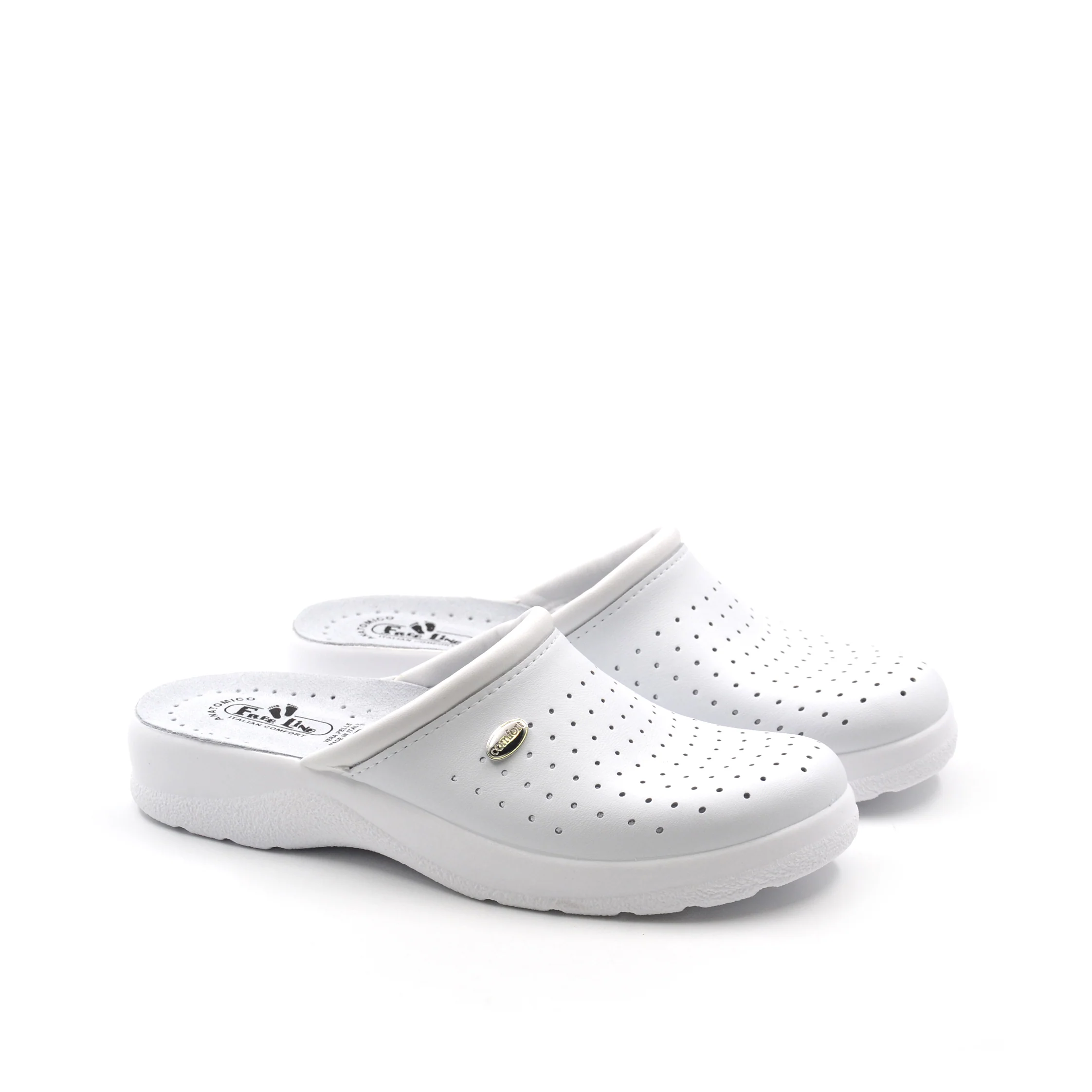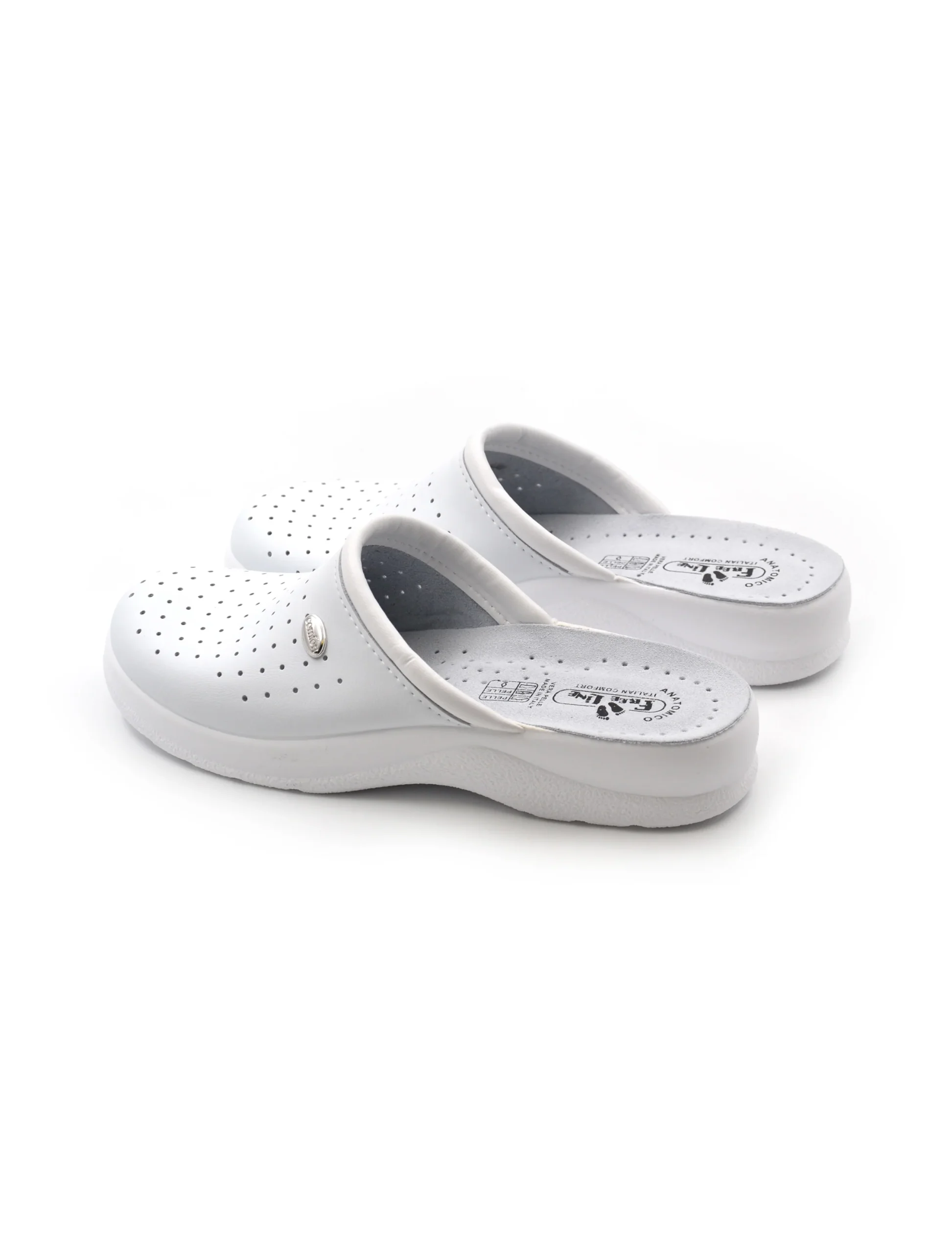 Ciabatta sanitaria da uomo FreeLine made in Italy in vera pelle traforata con morbido sottopiede anatomico in vera pelle e fondo in gomma antiscivolo. Codice Modello: 8005B 0023