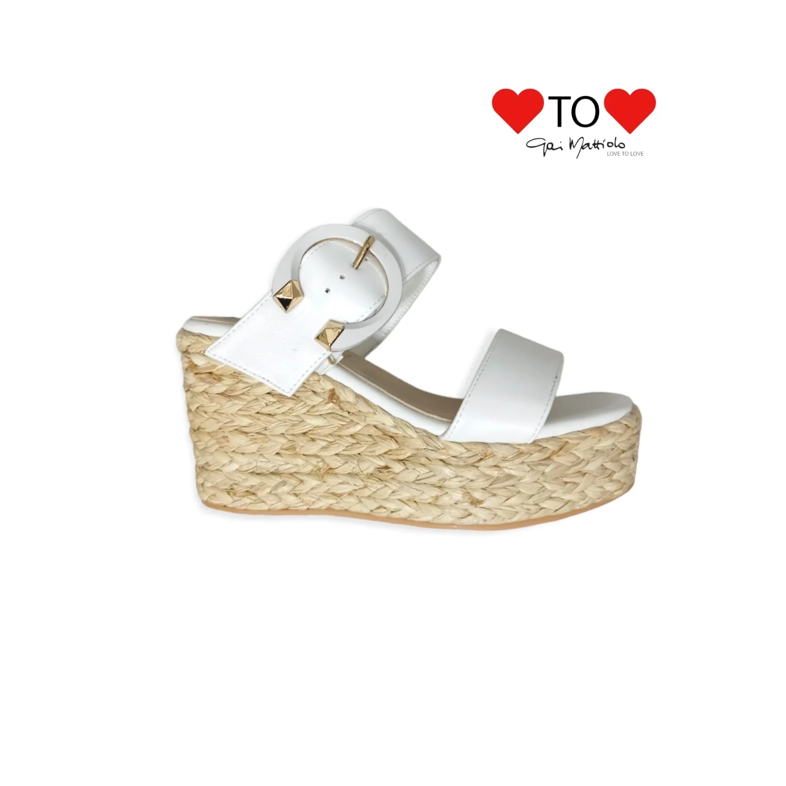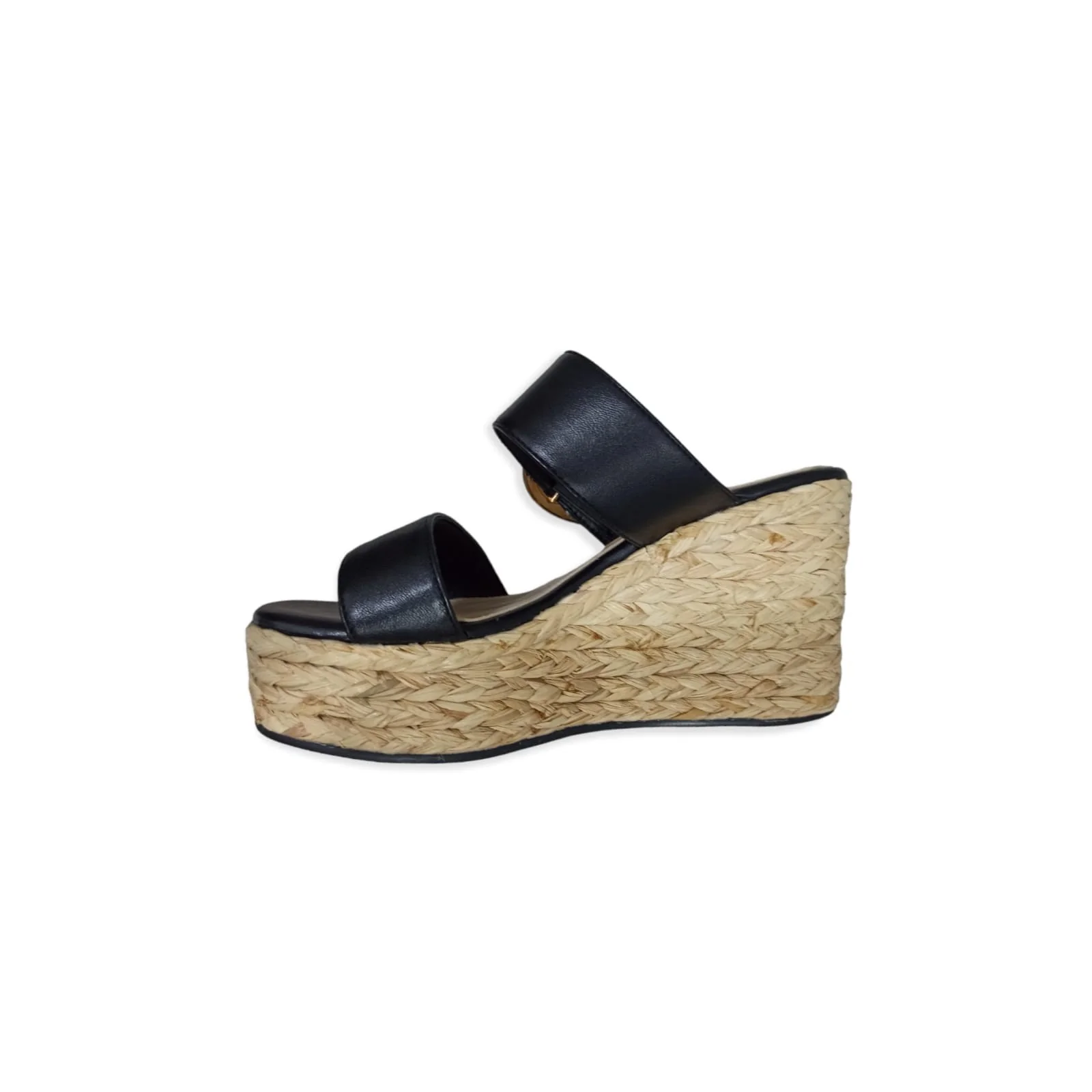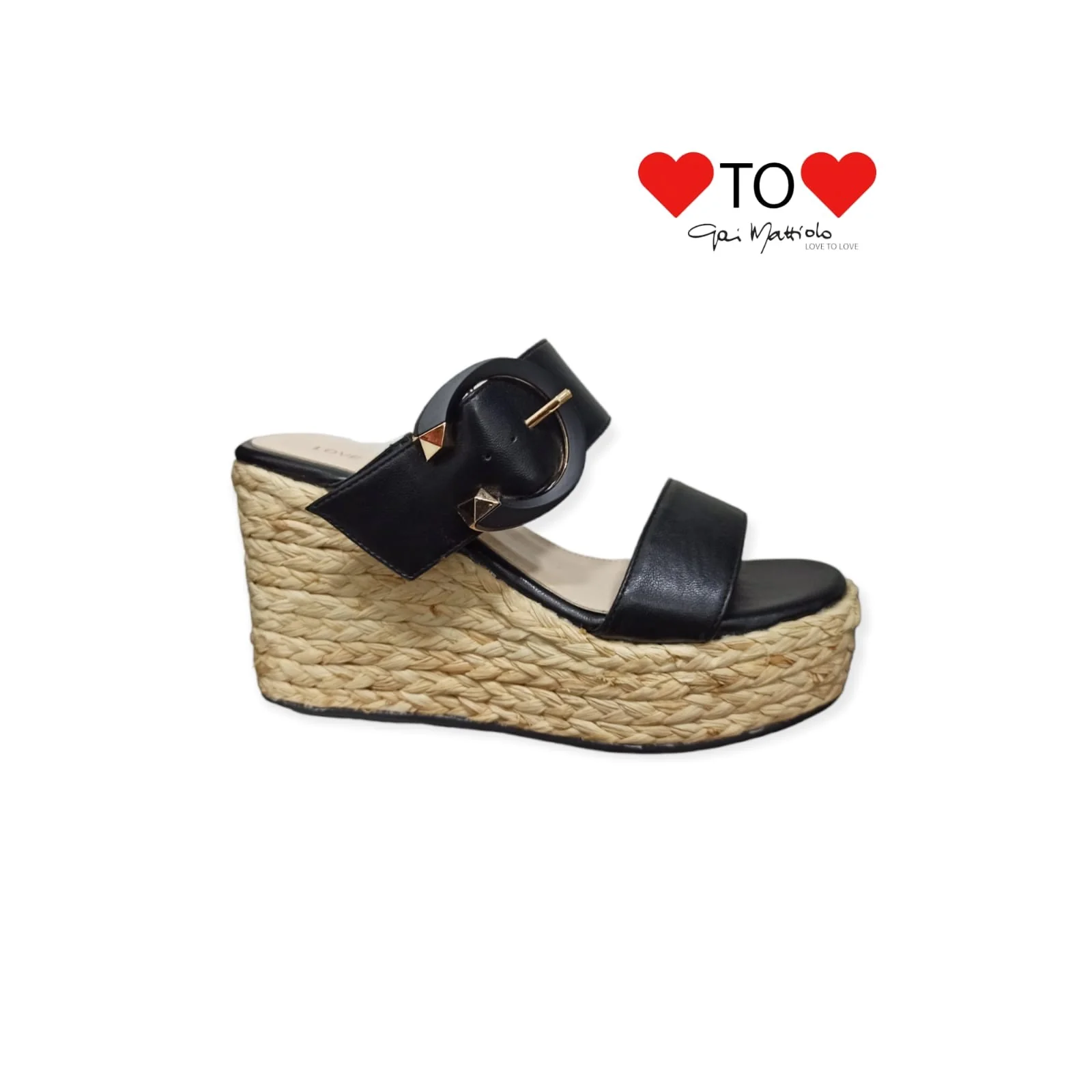 GAI MATTIOLO ZEPPA ROSA-4 BLACK WHITE Zeppa senza chiusura, altezza zeppa 9,5 cm, fascia regolabile