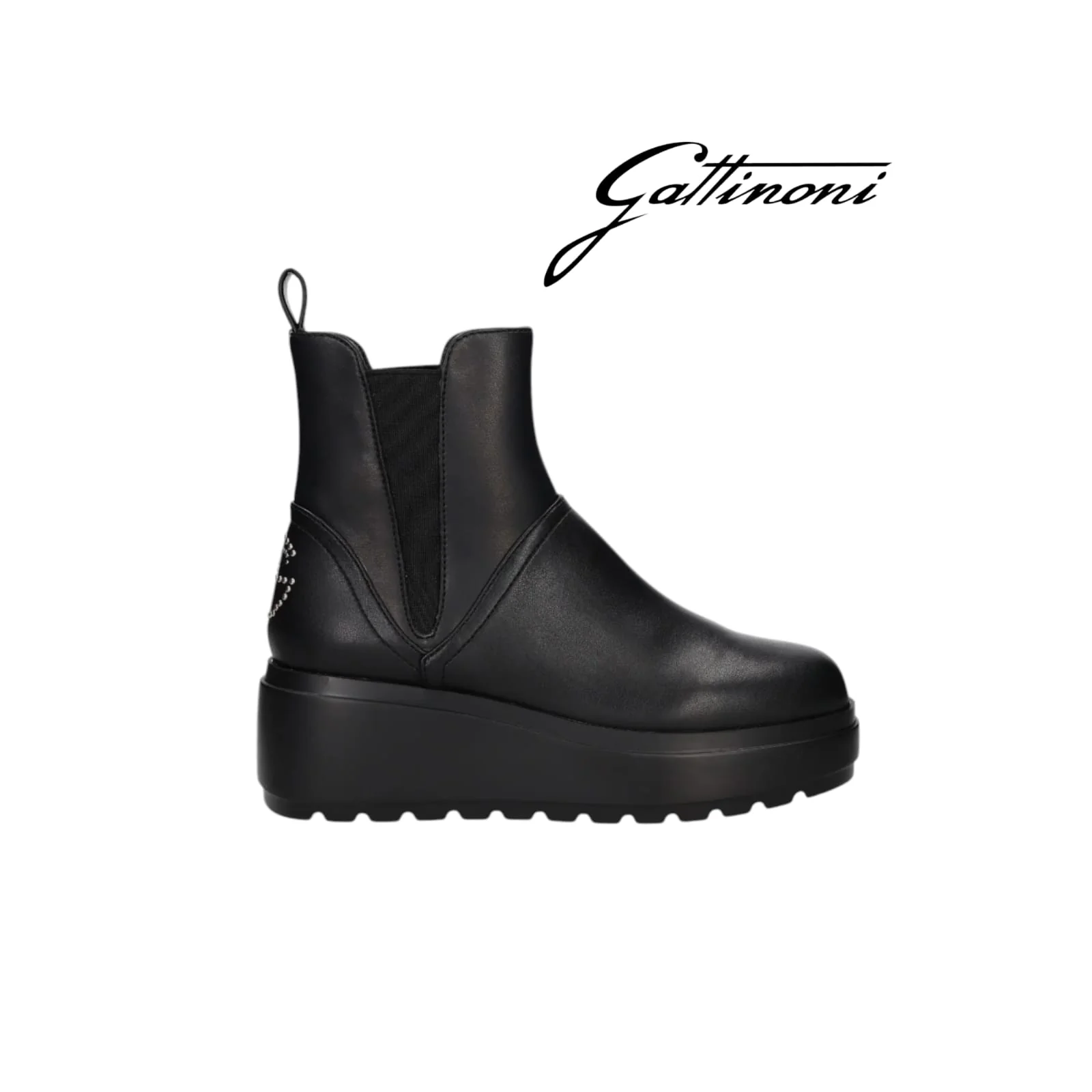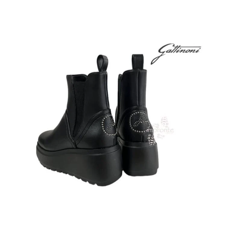 Tronchetto in pelle, altezza plateau 6 cm, linguetta sul tallone, chiusura ad incastro. Logo G dietro ARTICOLO 1405WC