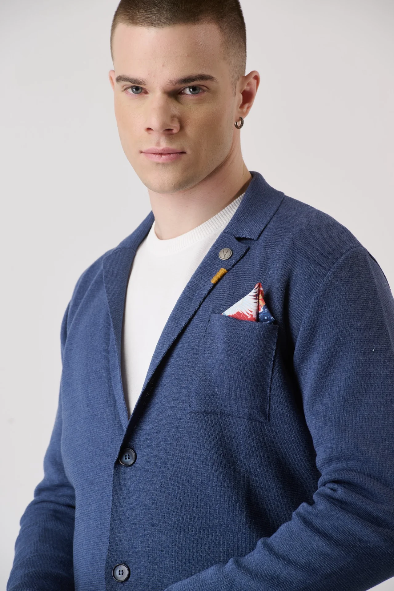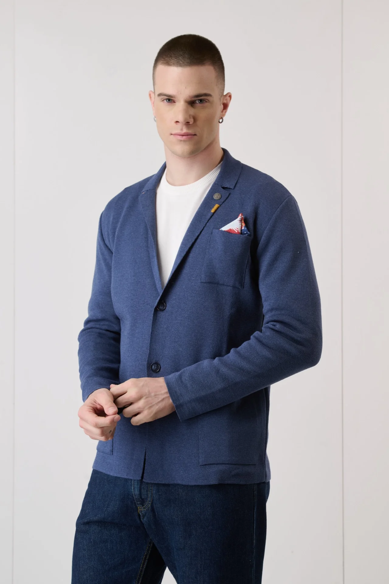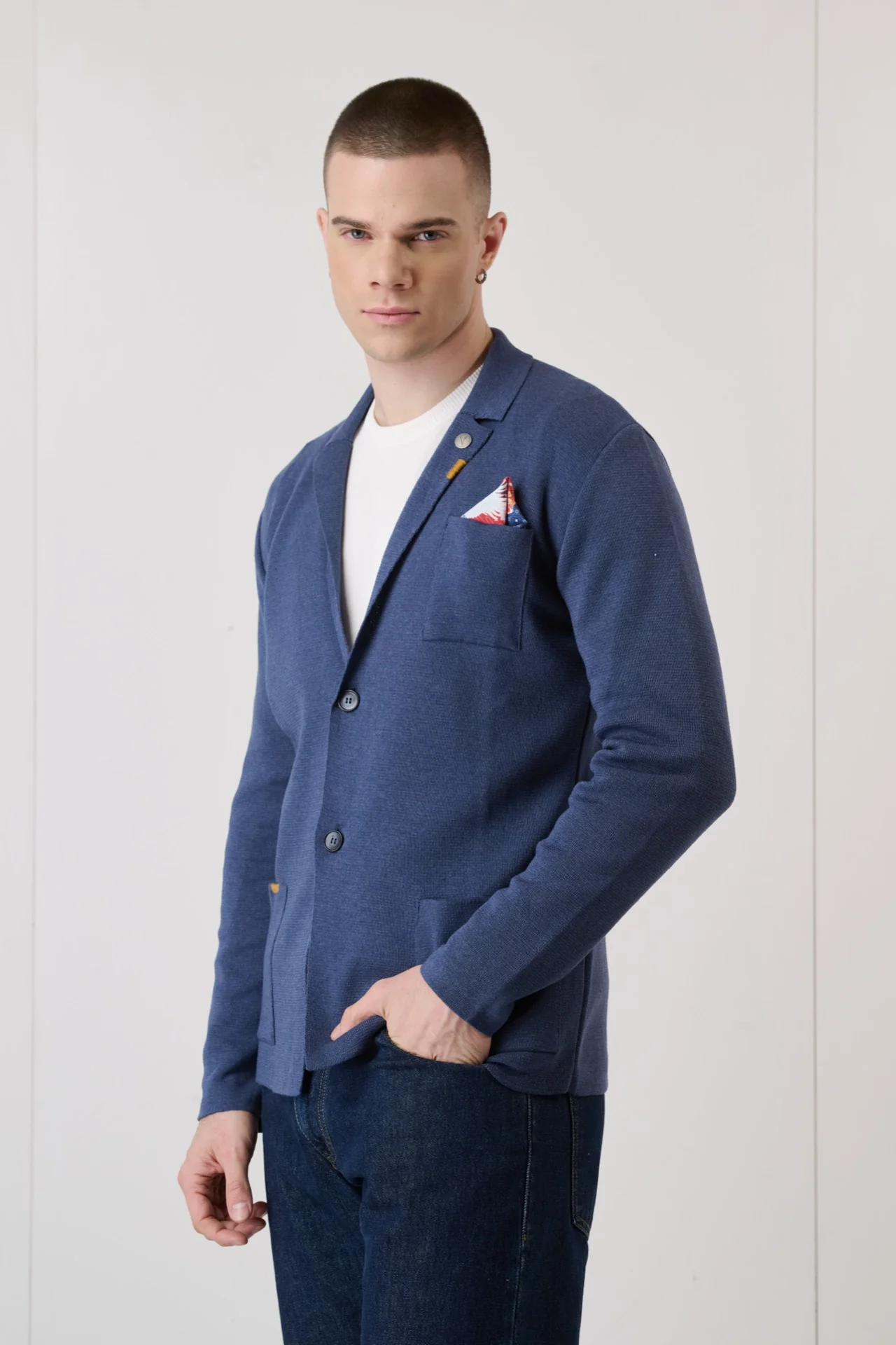 Giacca Monopetto Punto Stoffa Jeans con Ricami e pochette in tessuto V2