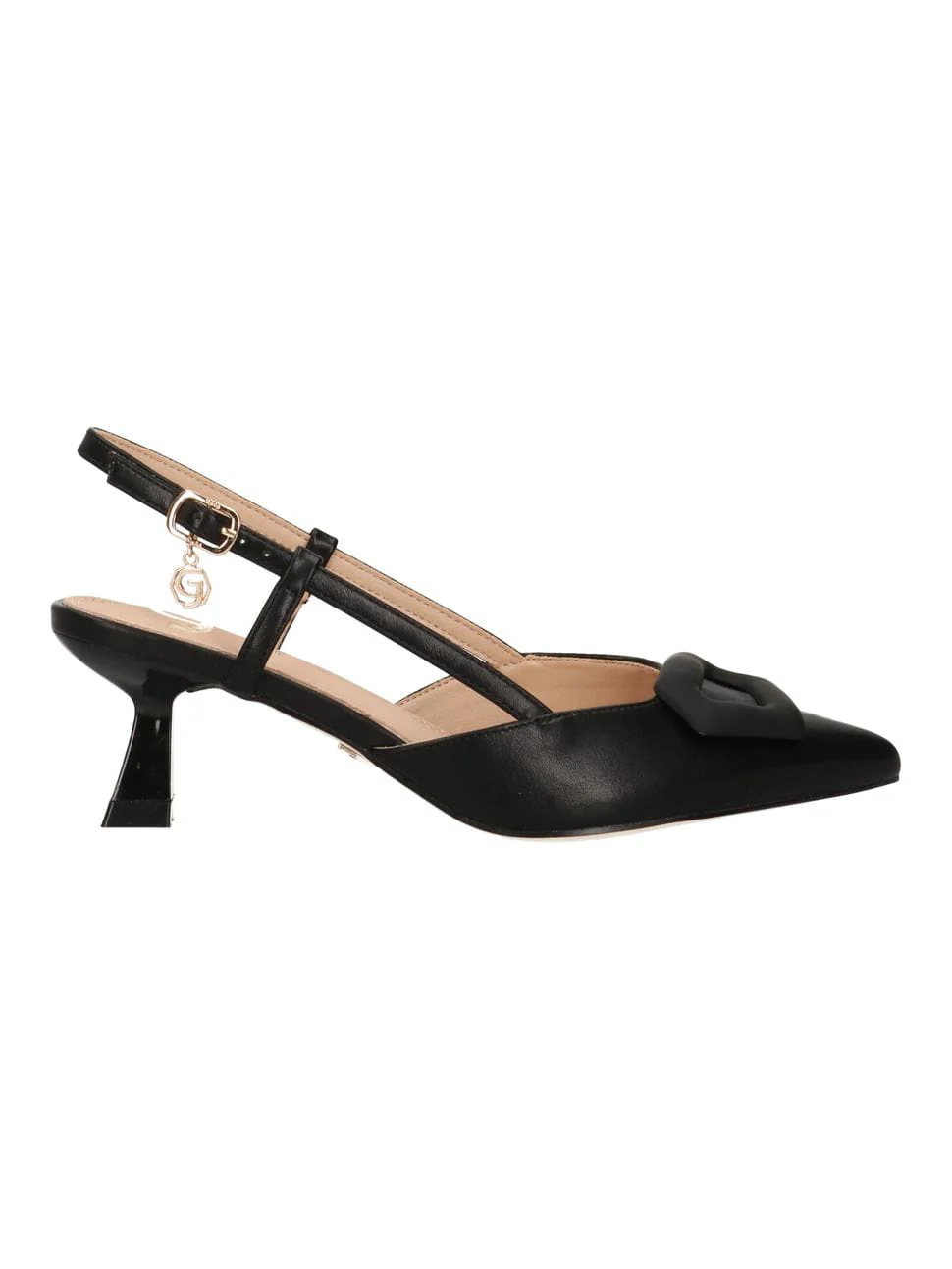 FERRE DECOLLETTE CON LOGO IN ECOPELLE NERA