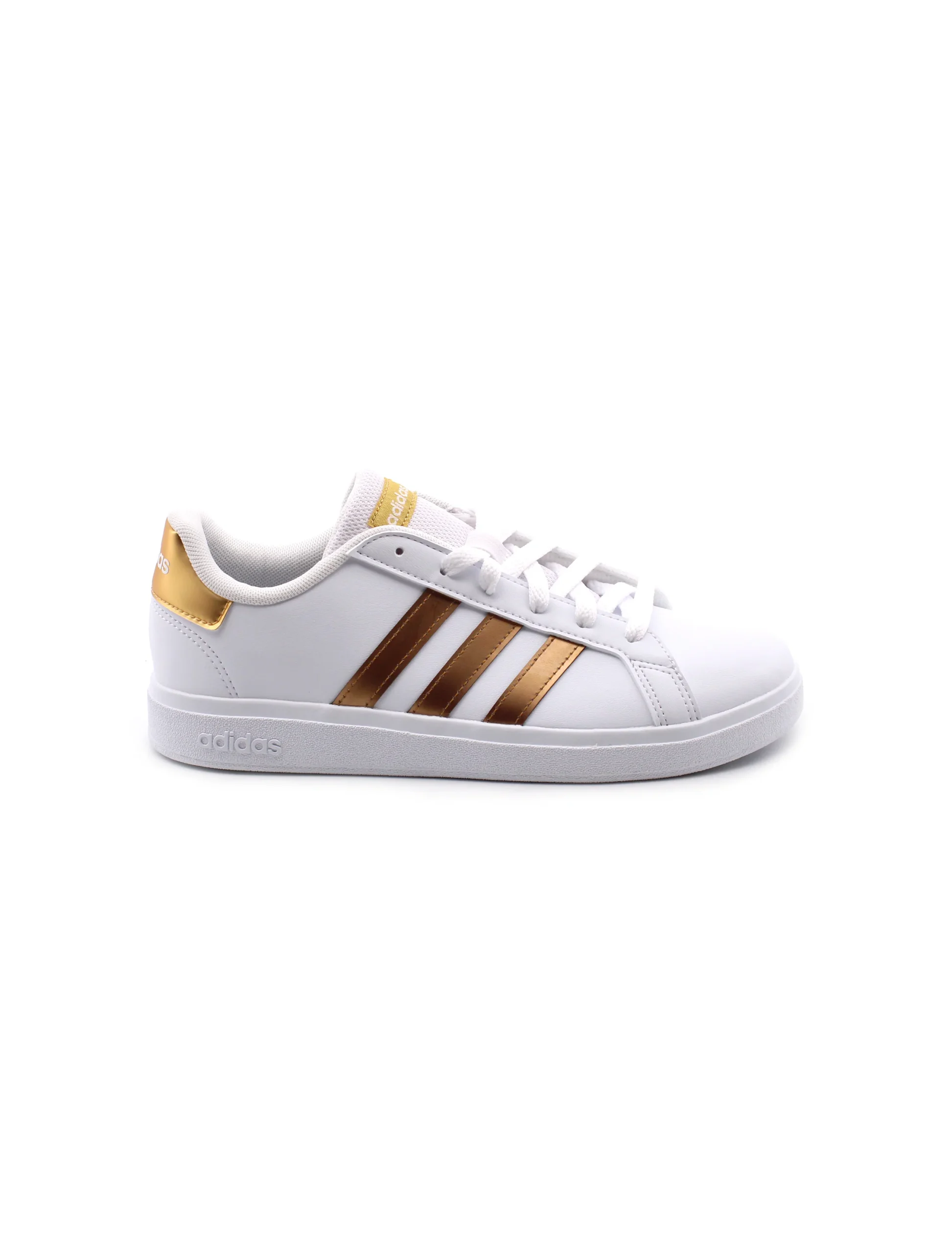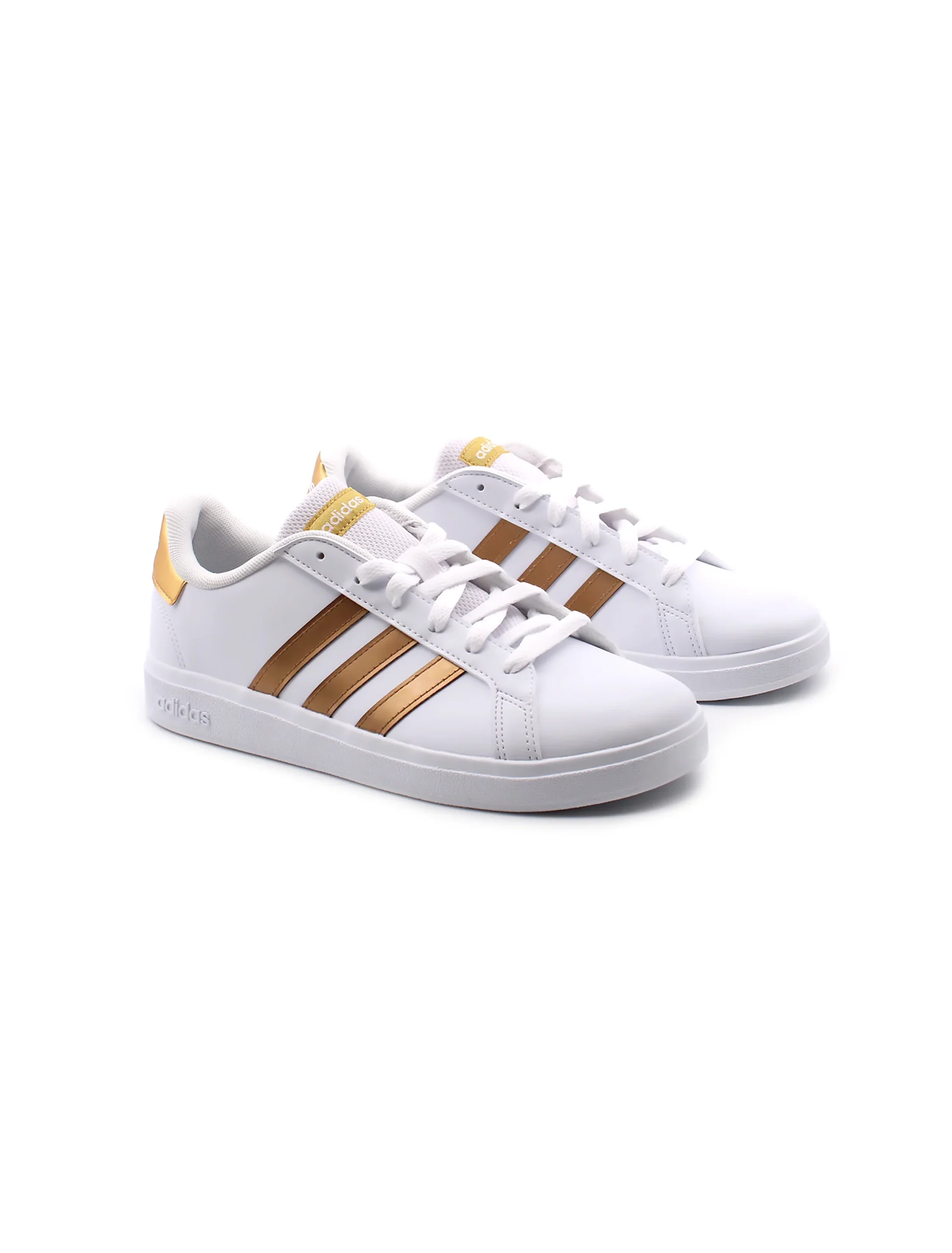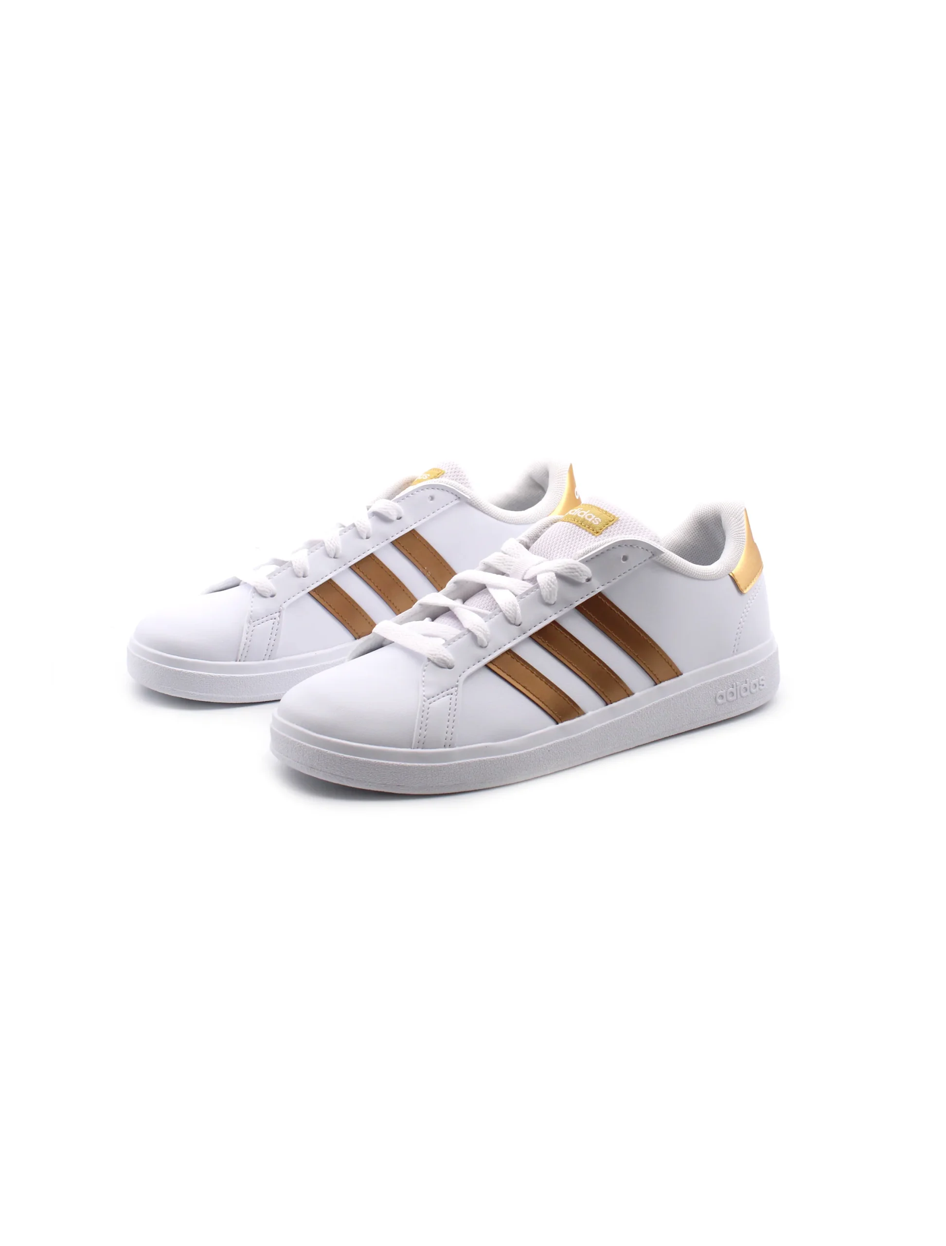 Adidas Grand Court 2.0 K sneaker da ragazza in pelle sintetica con sottopiede in tessuto e suola in gomma. Questo prodotto รจ realizzato con materiali riciclati. Codice Modello: GY2578