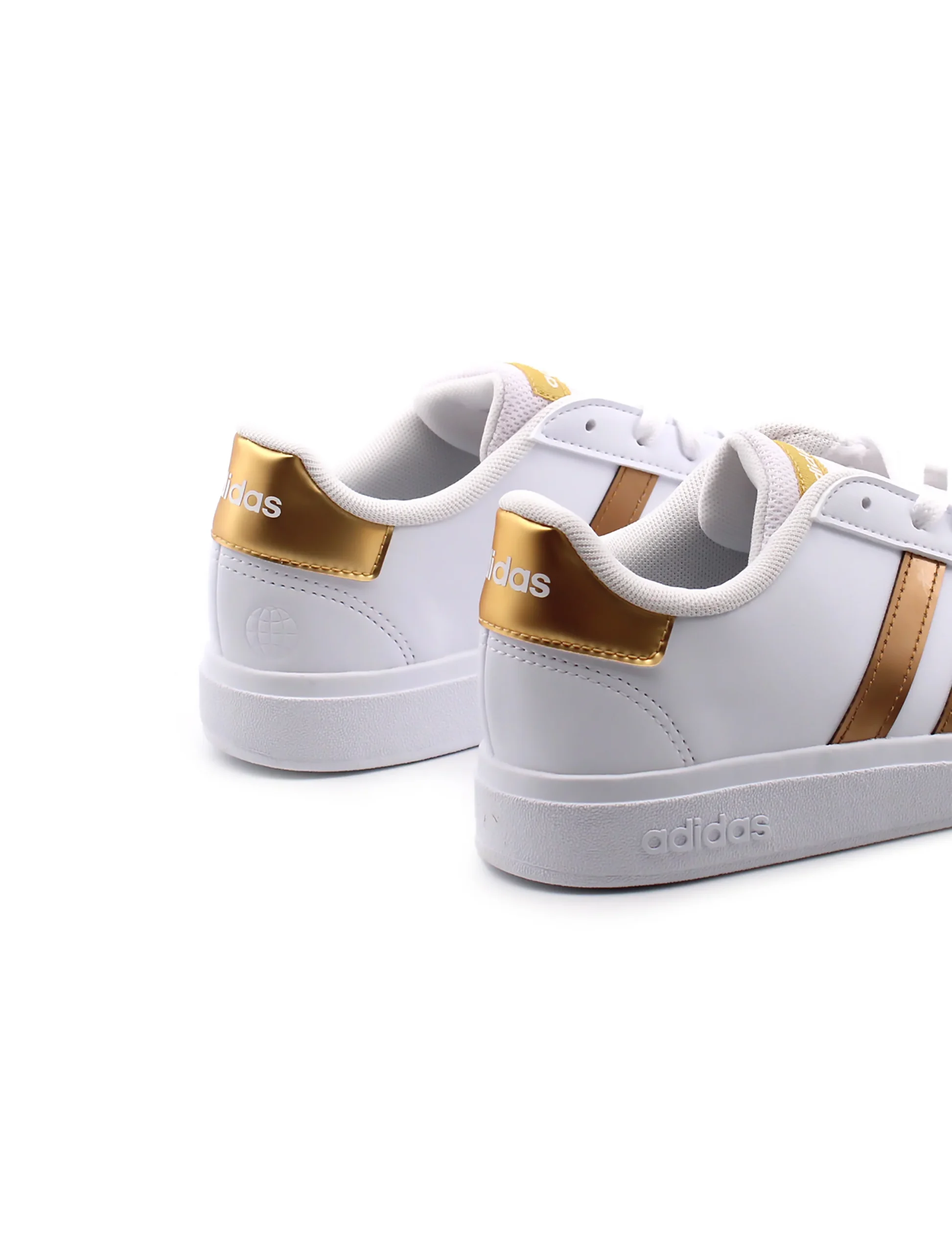 Adidas Grand Court 2.0 K sneaker da ragazza in pelle sintetica con sottopiede in tessuto e suola in gomma. Questo prodotto รจ realizzato con materiali riciclati.