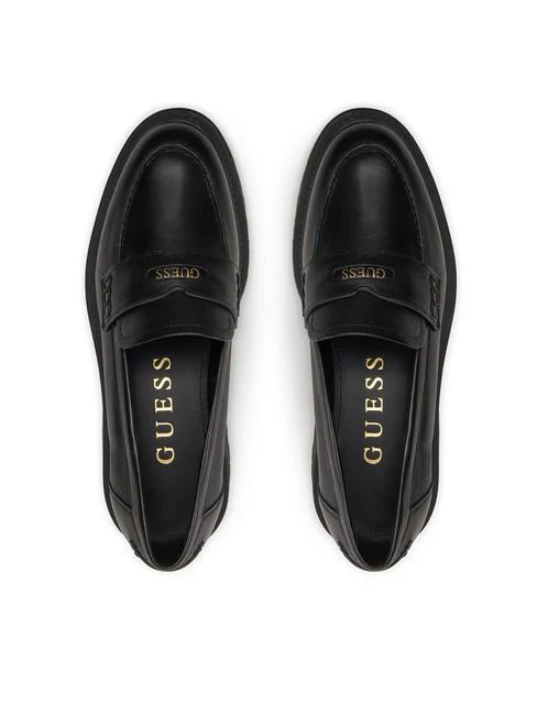 GUESS MOCASSINO DONNA FLTFIN LEA 4 BLACK Mocassino con punta tonda, scritta logo sulla suola, altezza tacco 4,5 cm