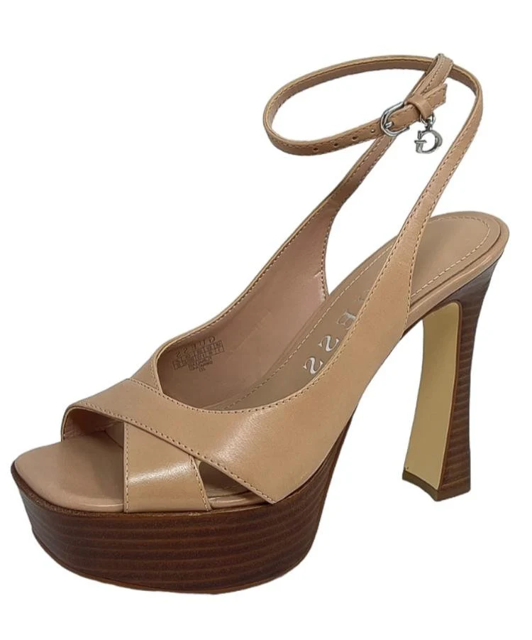 GUESS SANDALI PLATEAUX FLJINA NATURAL Sandalo in pelle con cinturino alla caviglia regolabile, tacco grosso di 12 cm