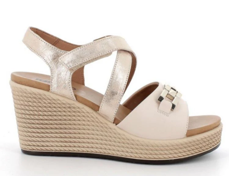 IGI&CO ZEPPA INCROCIO 5673822 SABBIA Zeppa a incrocio con chiusura a strappo, accessorio sul davanti color oro, altezza zeppa 8 cm