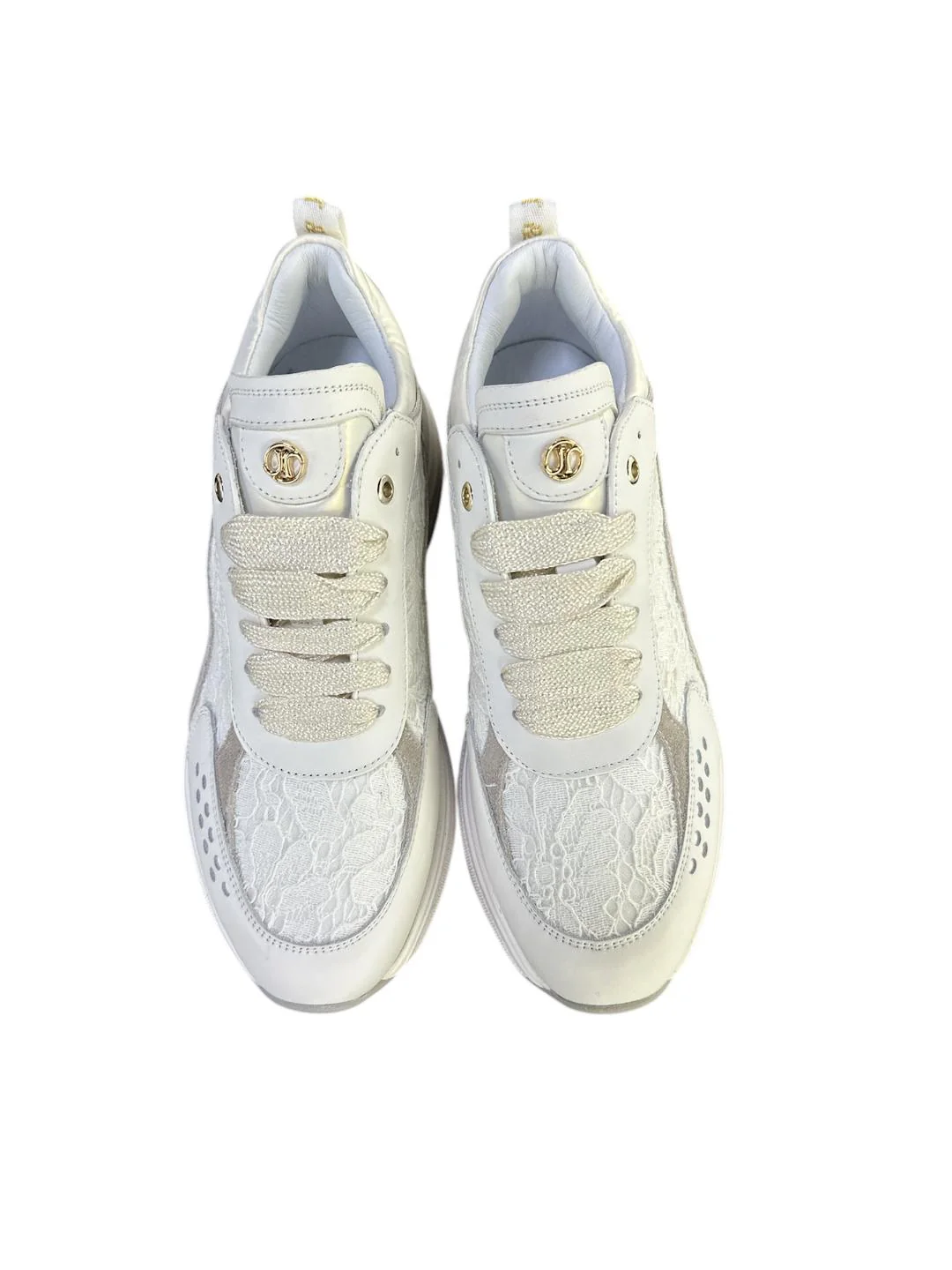 Janet&Janet Sneakers bianche in pelle con pizzo