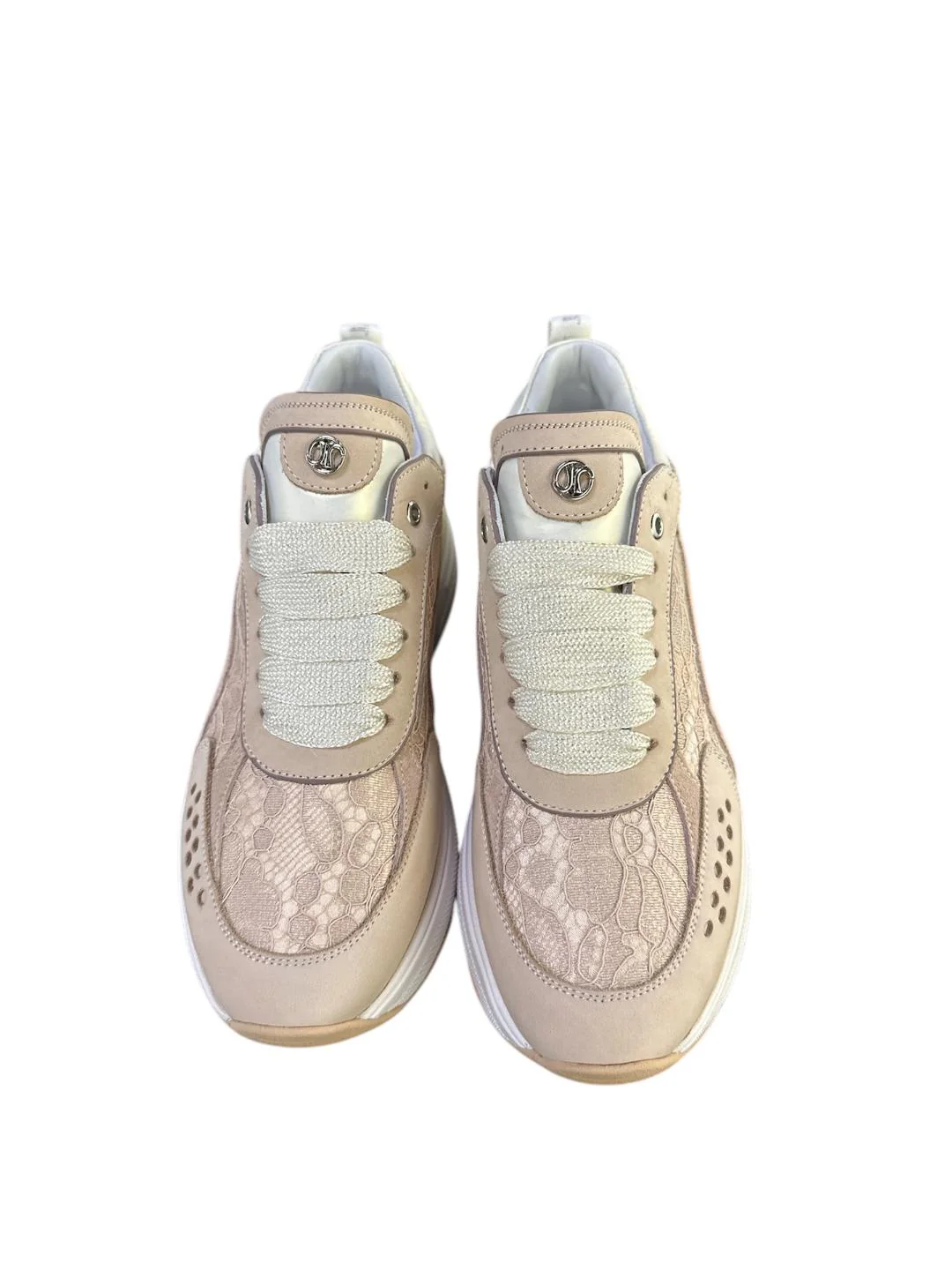 Janet&Janet Sneakers rosa in pelle con pizzo