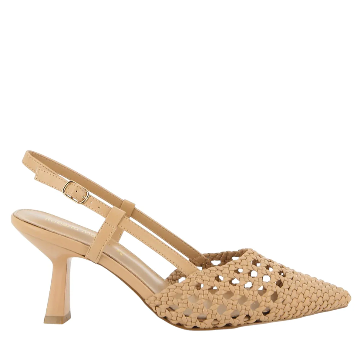 LAURA BIAGIOTTI CHANEL INTRECCIO DONNA 8973 TAN Chanel intrecciata “effetto vimini”, sottopiede in morbida pelle, cinturino alla caviglia regolabile, tacco alto 7 cm
