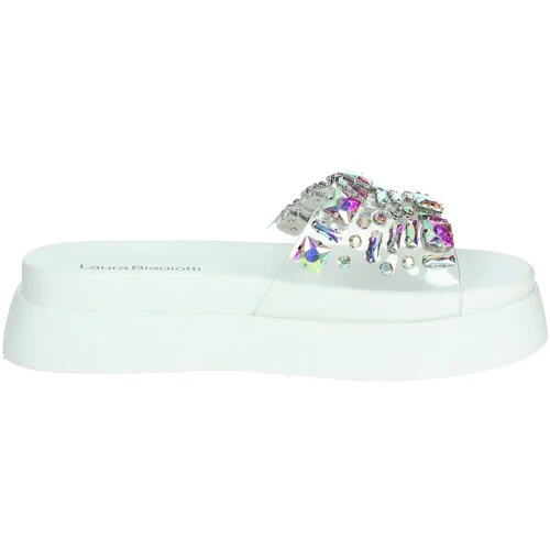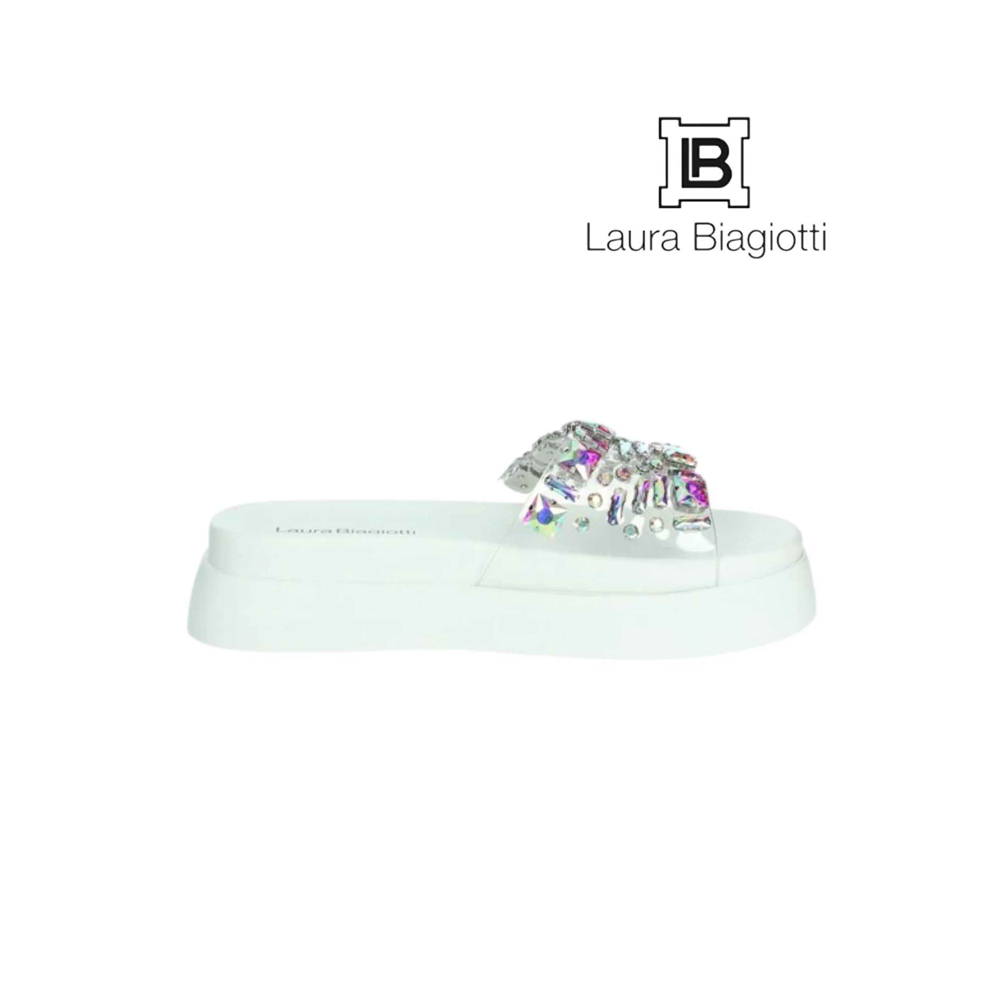 LAURA BIAGIOTTI CIABATTE PIETRE DONNA LB9108 BIANCO Ciabatta gioiello con platform 4,5 cm che slancia la figura offrendo una camminata stabile e confortevole