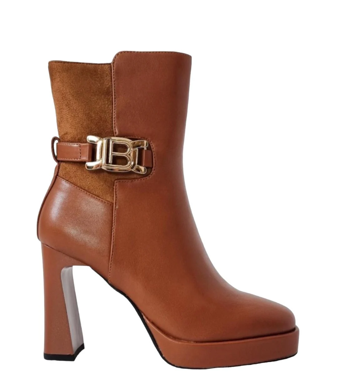 TRONCHETTO CON PUNTA SQUADRATA E DETTAGLI IN ORO LAURA BIAGIOTTI DONNA-LB8343 Tronchetto con tacco e plateaux, modello al polpaccio, chiusura con cerniera laterale, tomaia in similpelle, soletta in tessuto, marchio LAURA BIAGIOTTI laterale in metallo, suola in gomma antiscivolo, altezza tacco 10 cm e plateau 2 cm, inserto posteriore in similcamoscio