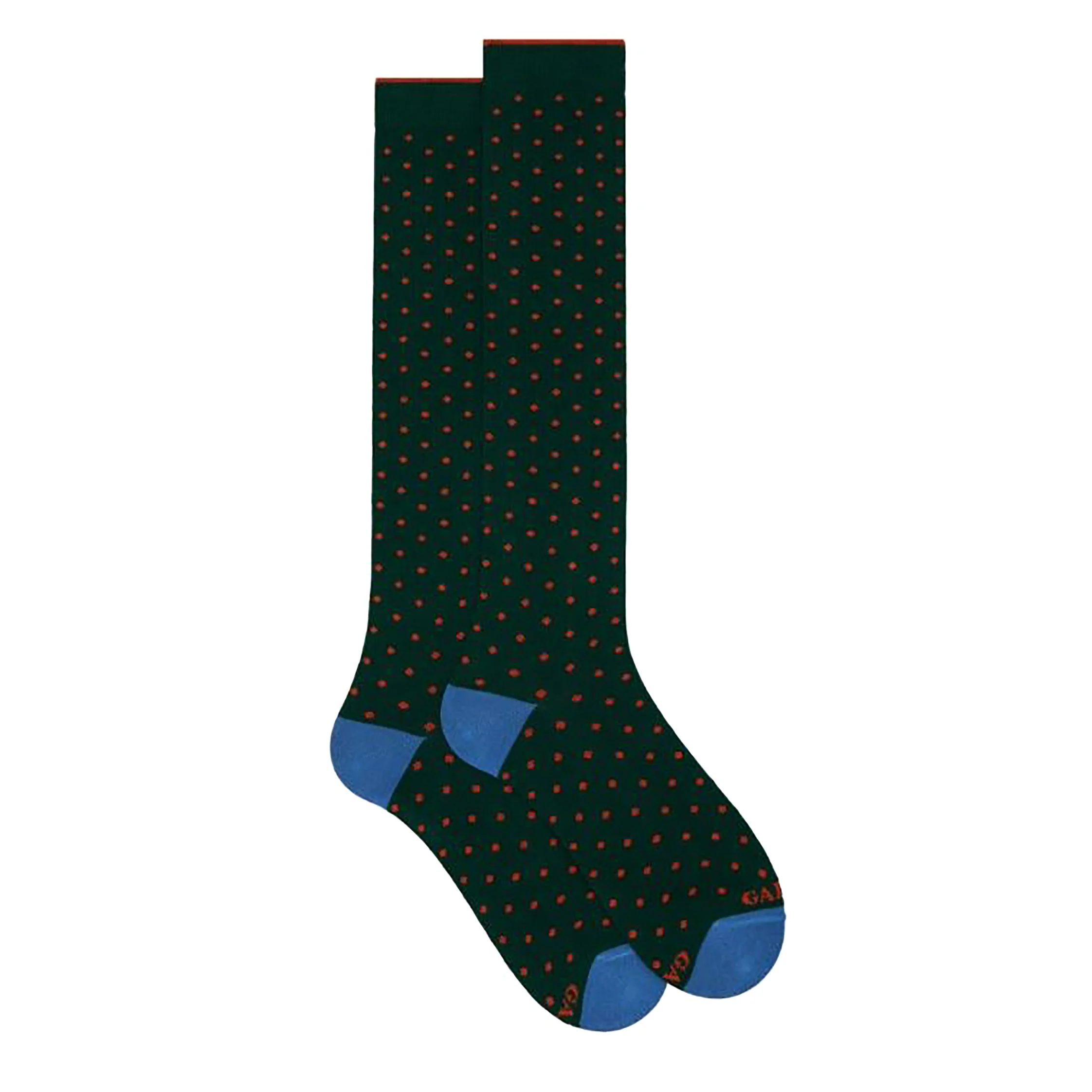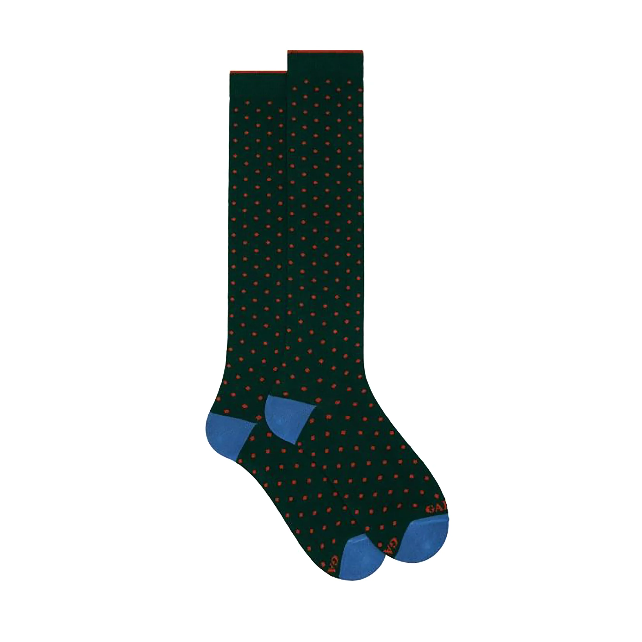 Calza lunga a pois da donna in cotone del marchio Gallo. Made in Italy. Taglia unica 36/40.