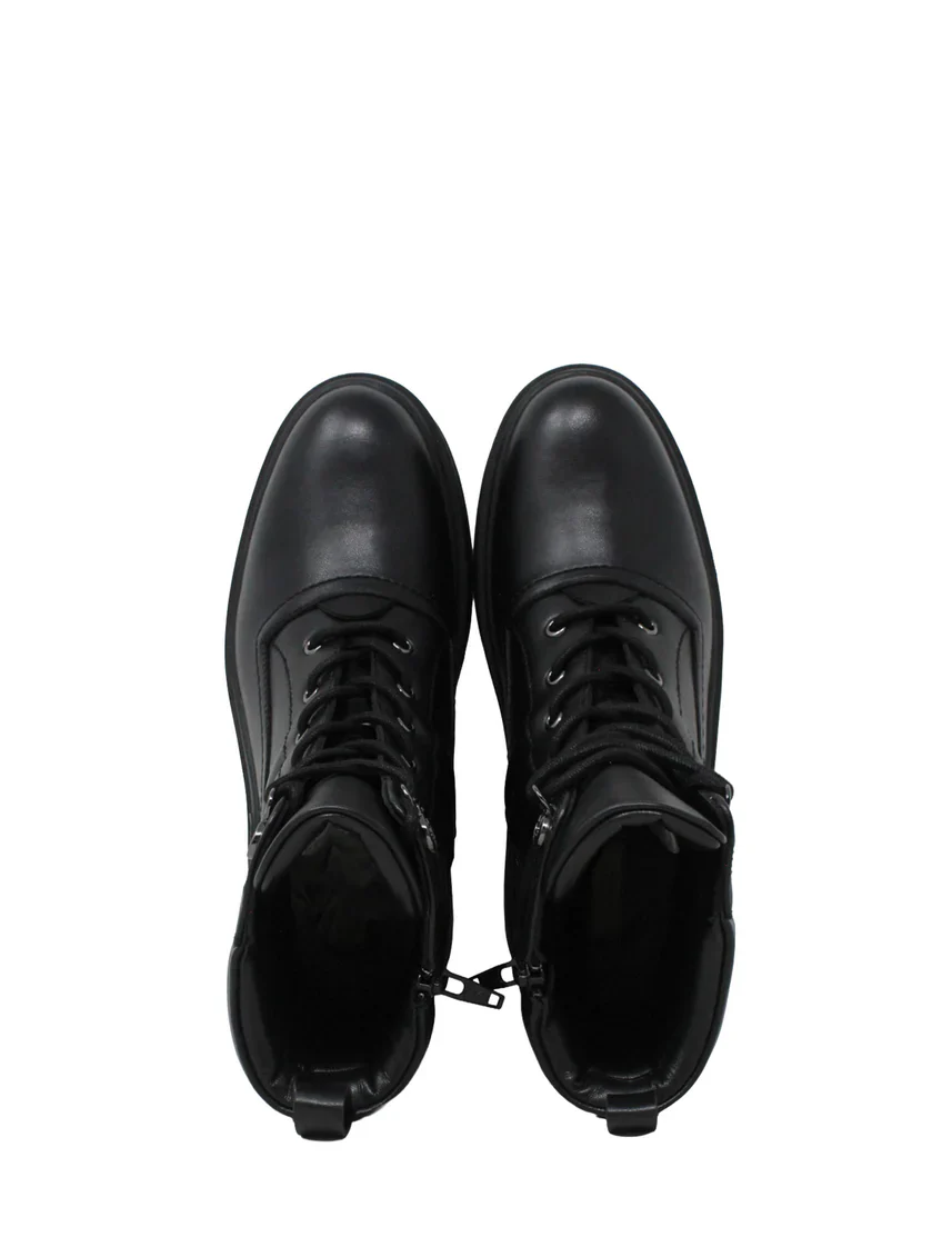 La silhouette alta alla caviglia e l’allacciatura con occhielli metallici conferiscono un look deciso e versatile, ideale per outfit casual o per dare un contrasto audace ai look piรน eleganti.