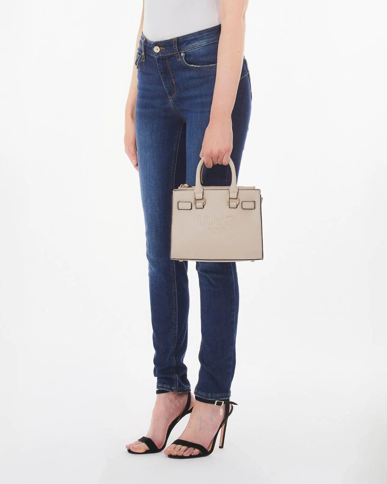 LIU JO BORSA/TRACOLLA DONNA CON LOGO S SATCHEL AA5150E0087 NEUTRO NERO OFF WHITE Borsa a mano in similpelle effetto saffiano, maxi logo frontale a rilievo tono su tono, base rigida con piedini di protezione in metallo, doppia tasca a parete, chiusura con bottone a pressione DIMENSIONE:23x11x18 cm