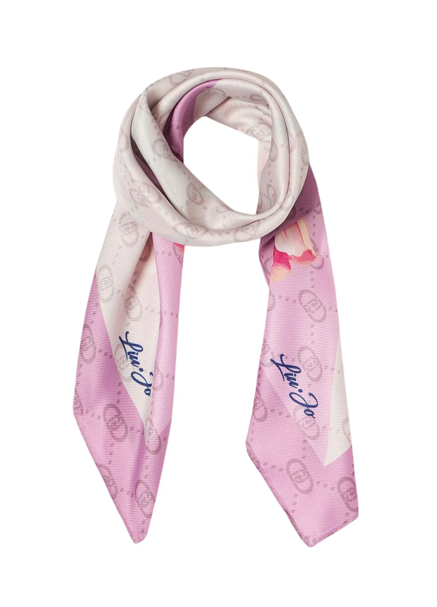 LIU JO FOULARD FLOWER DONNA 2A5023T0300 ROSE Foulard in raso elegante e super glam, motivo floreale con logo DIMENSIONE:50×50 cm