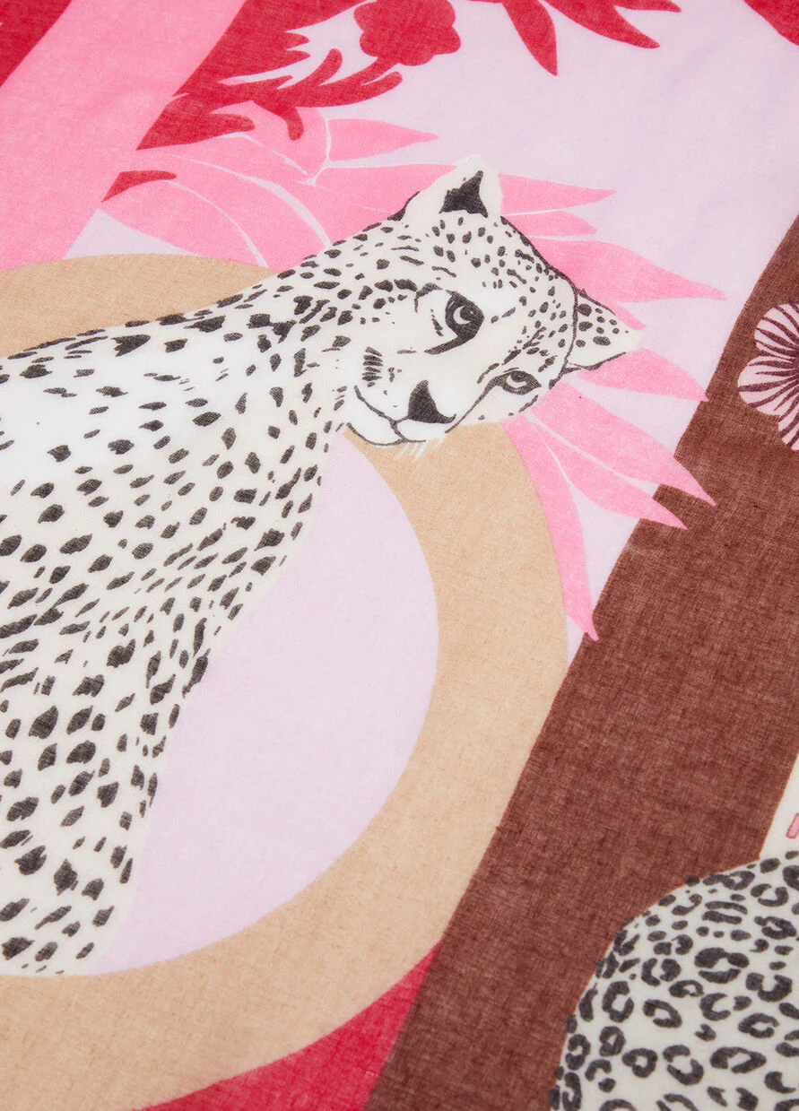 Stola in tessuto garzato, stampa grafica con logo, orli sfrangiati
