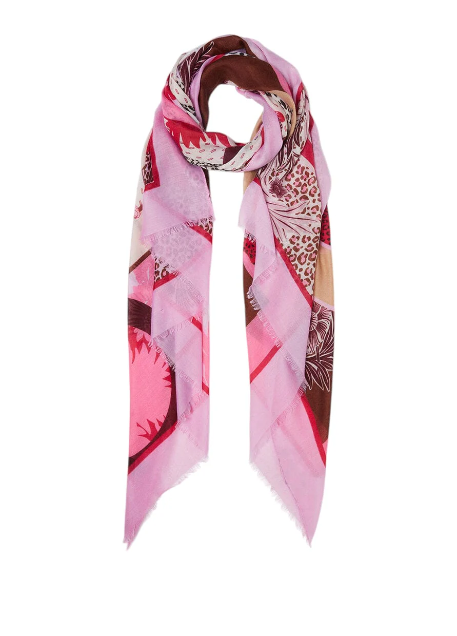 LIU JO STOLA DONNA 2A4045T0300 LAVANDER Stola in tessuto garzato, stampa grafica con logo, orli sfrangiati DIMENSIONE:90×180 cm