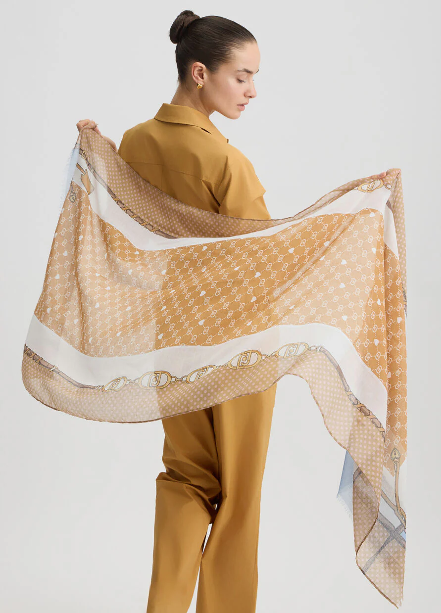 LIU JO STOLA S. VALENTINO DONNA 2A5025T0300 CAMMELLO Stola stampata, motivo a pois e grafico con logo, bordi sfrangiati, combina colori e motivi grafici per trasformare ogni look in una dichiarazione di stile DIMENSIONE:70×180 cm